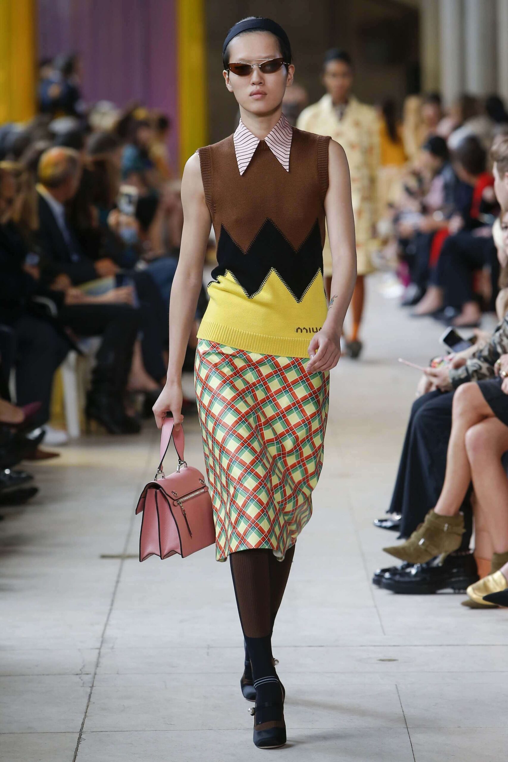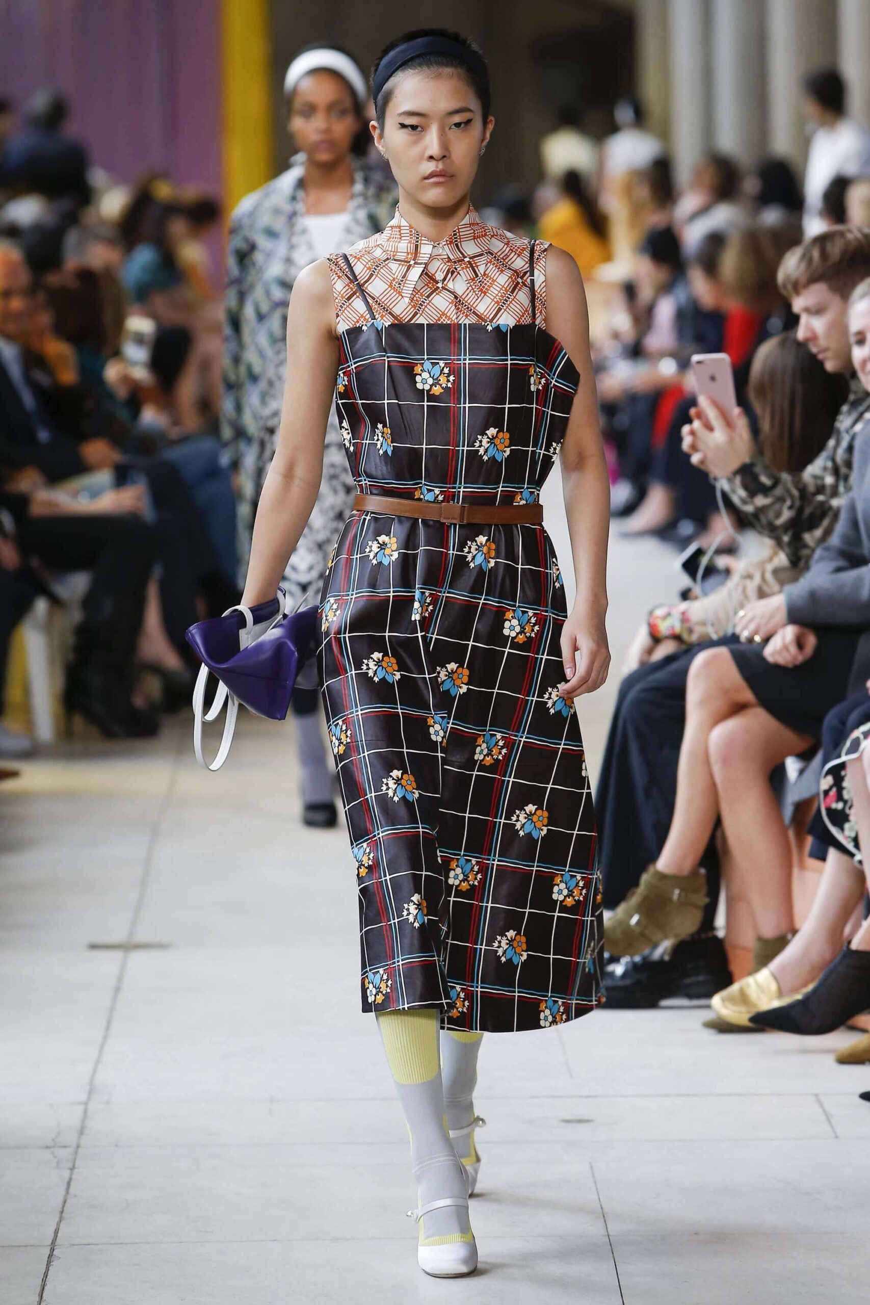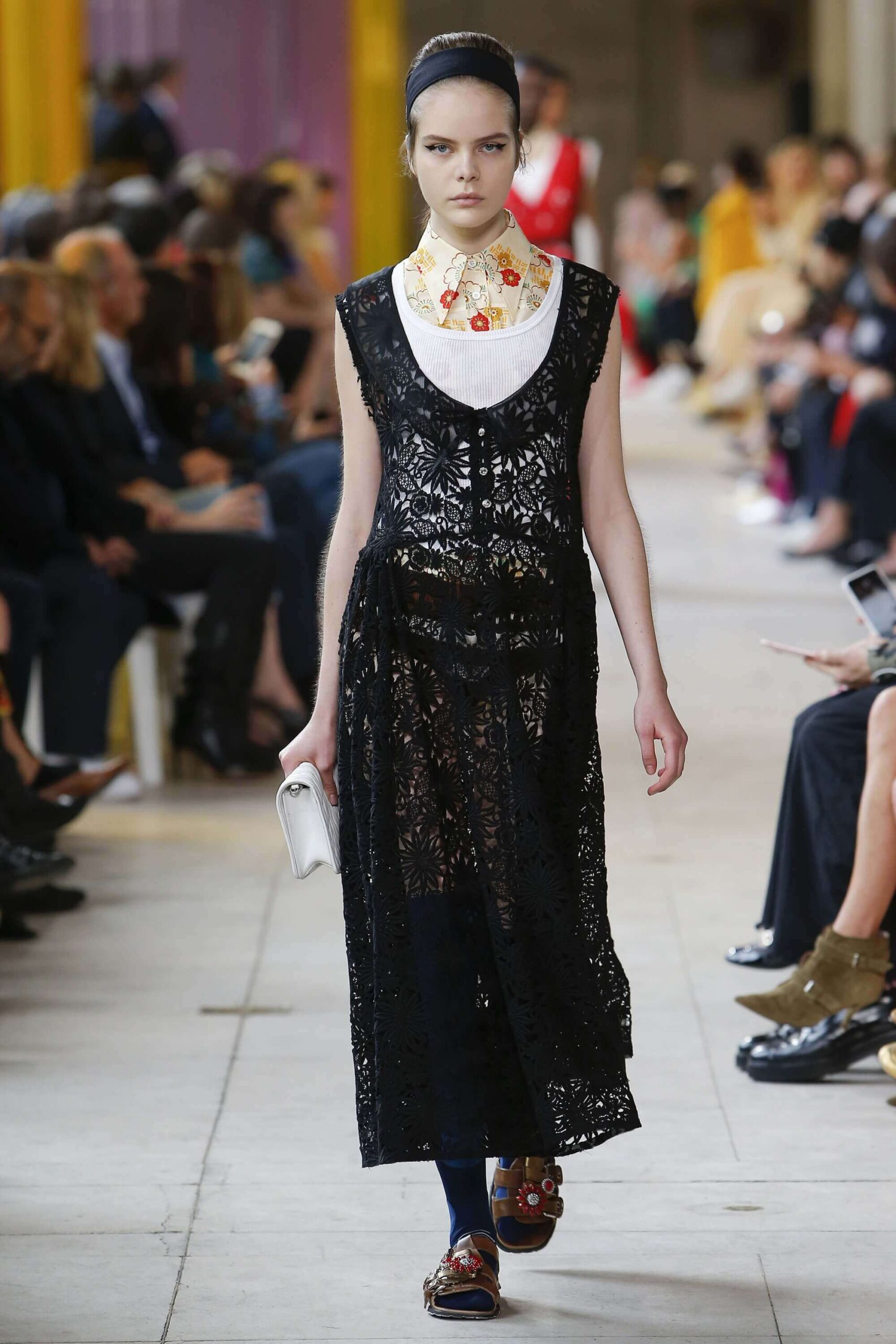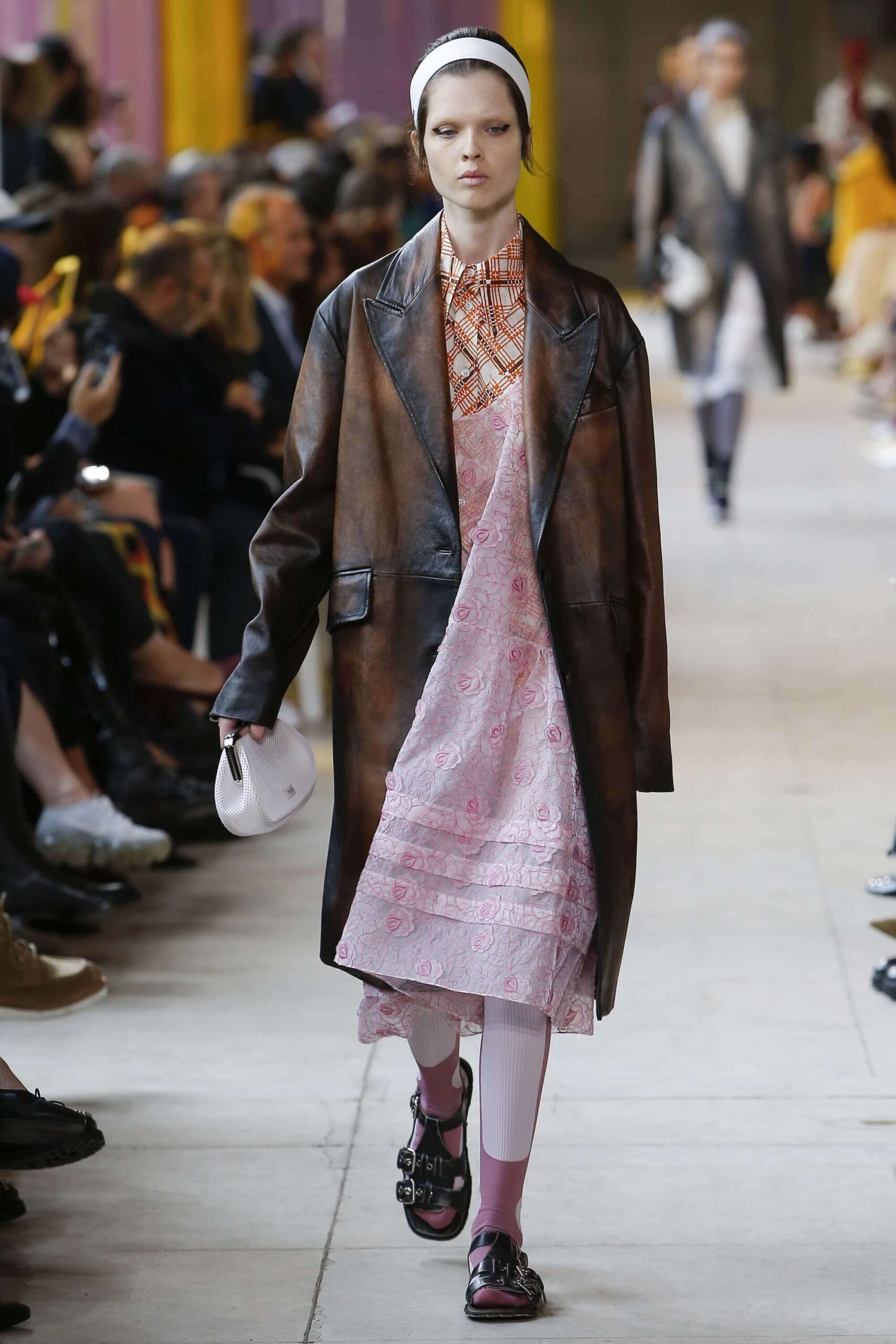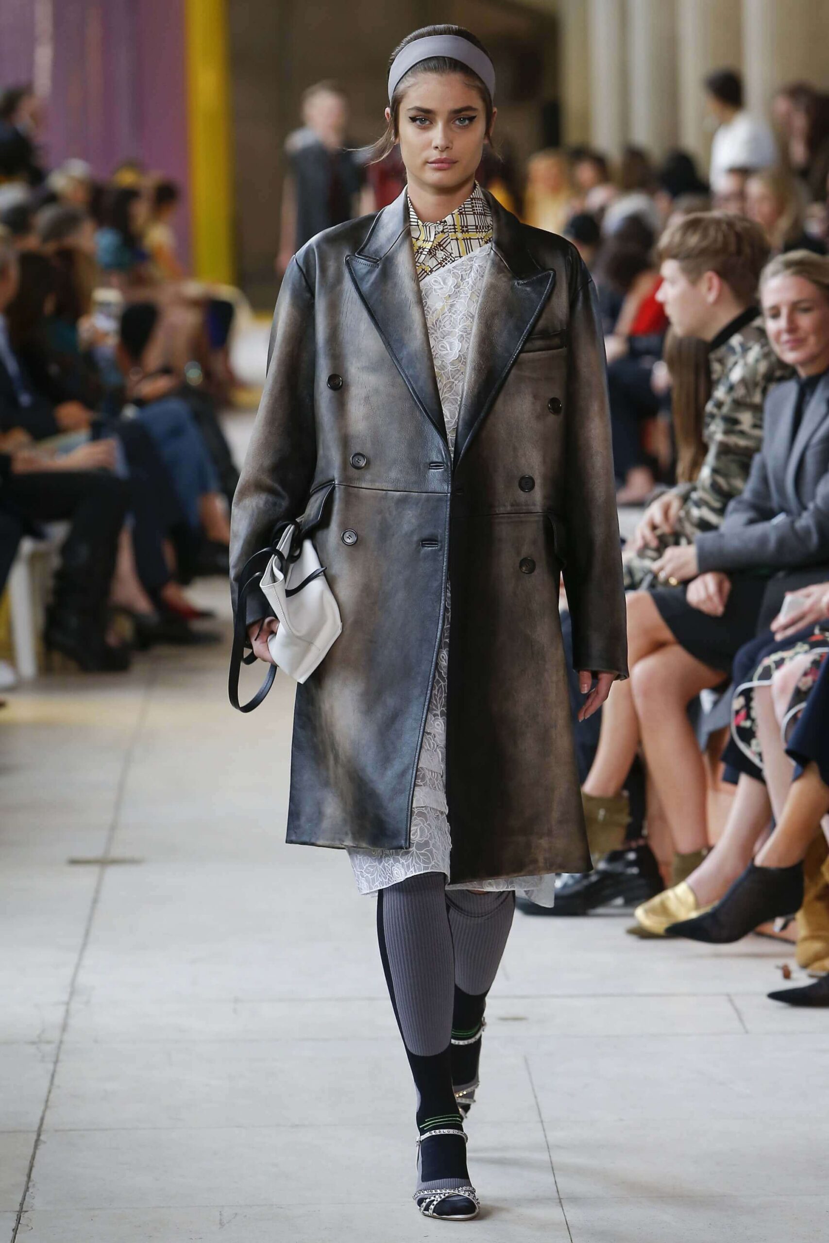 Her best friend was waiting for her in her brother’s grey trousers and school blazer – she was the coolest girl in Miu Miu’s gang. And then that girl they didn’t really like but she passed for 21 and could buy them beers came bearing Buds in a granny’s sofa print house coat, brown tights, three-strap buckle open toe flats sandals and an Alice band hair do number. All smart, all savvy, all dressed to the nines. If things got cold Miu Miu would pull on her boyfriend the biker’s sleeveless leather gilet. He’s sooooo hot! Now where’s that bottle of Bud?