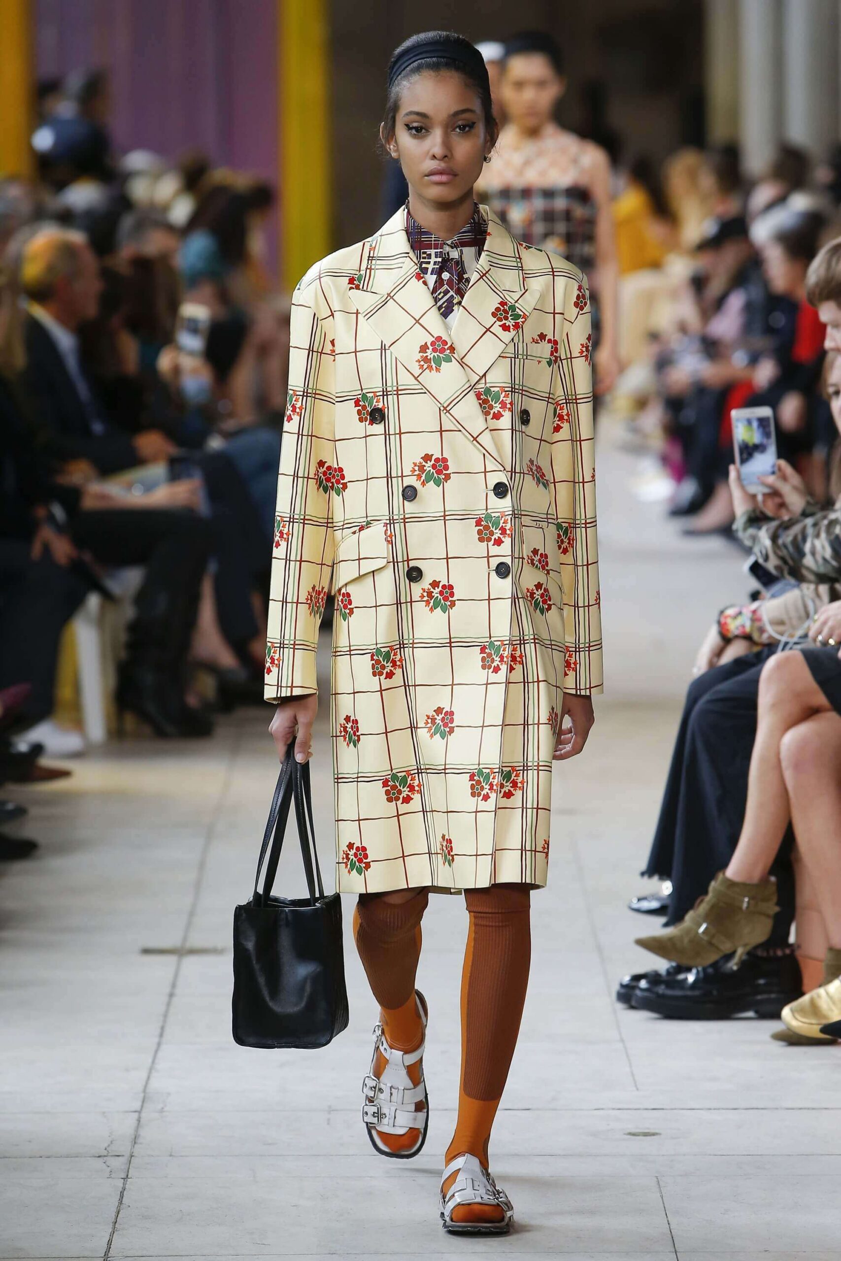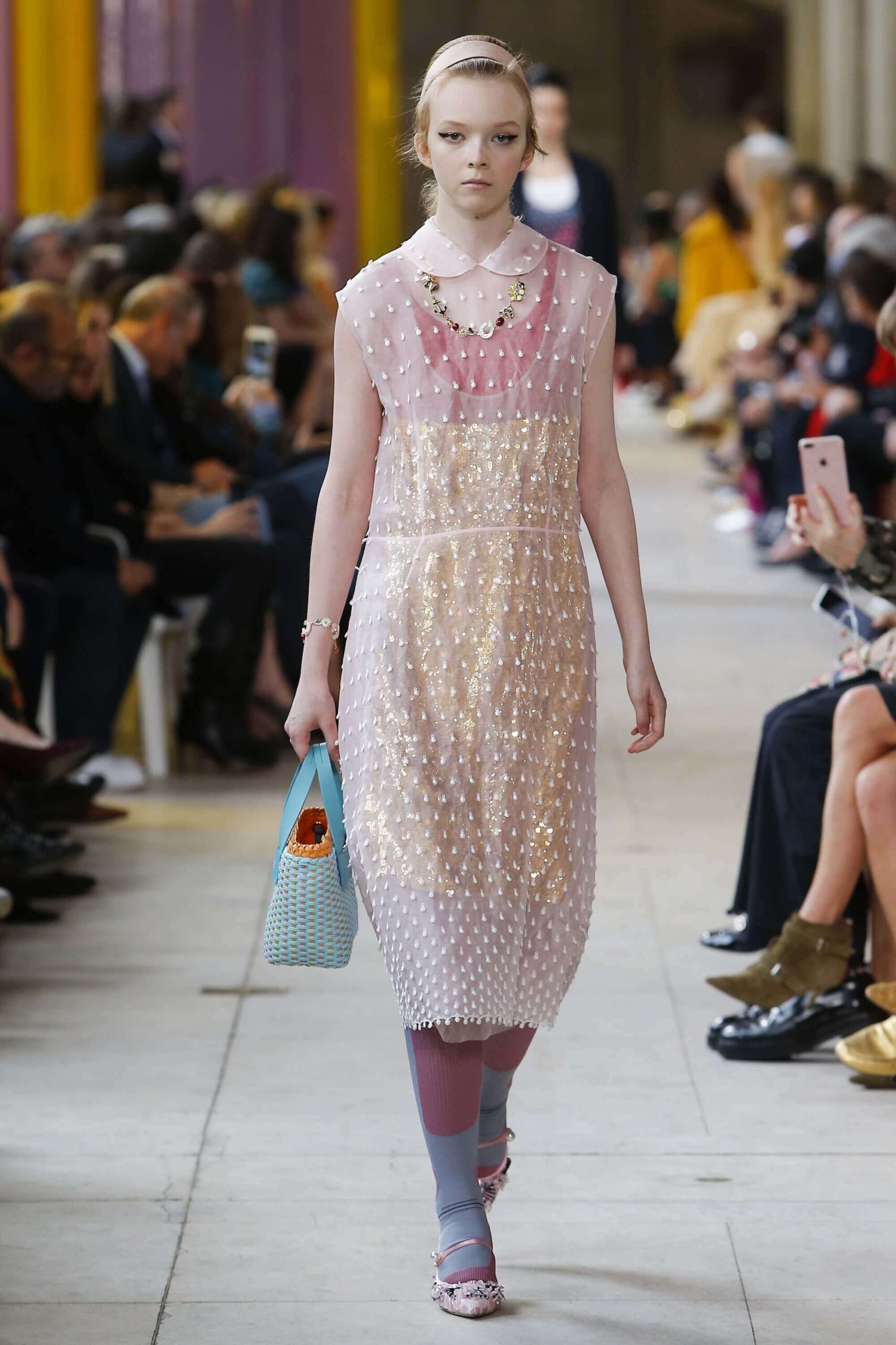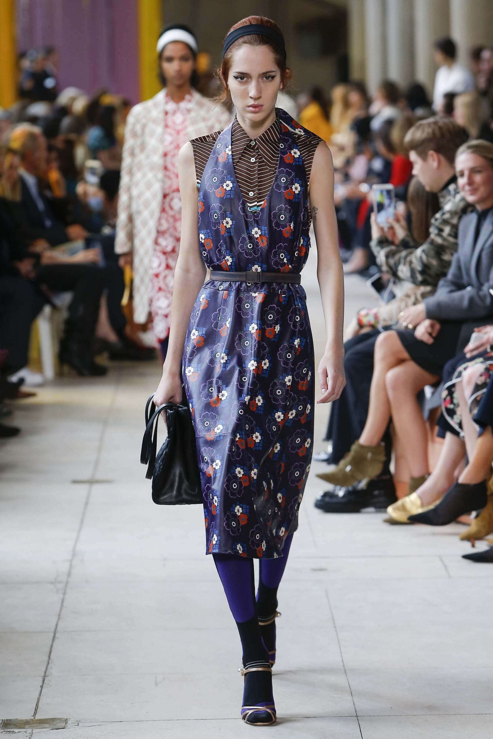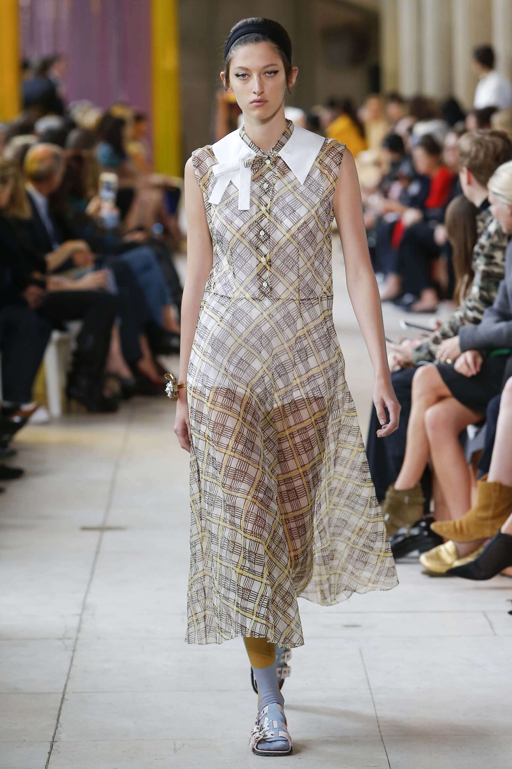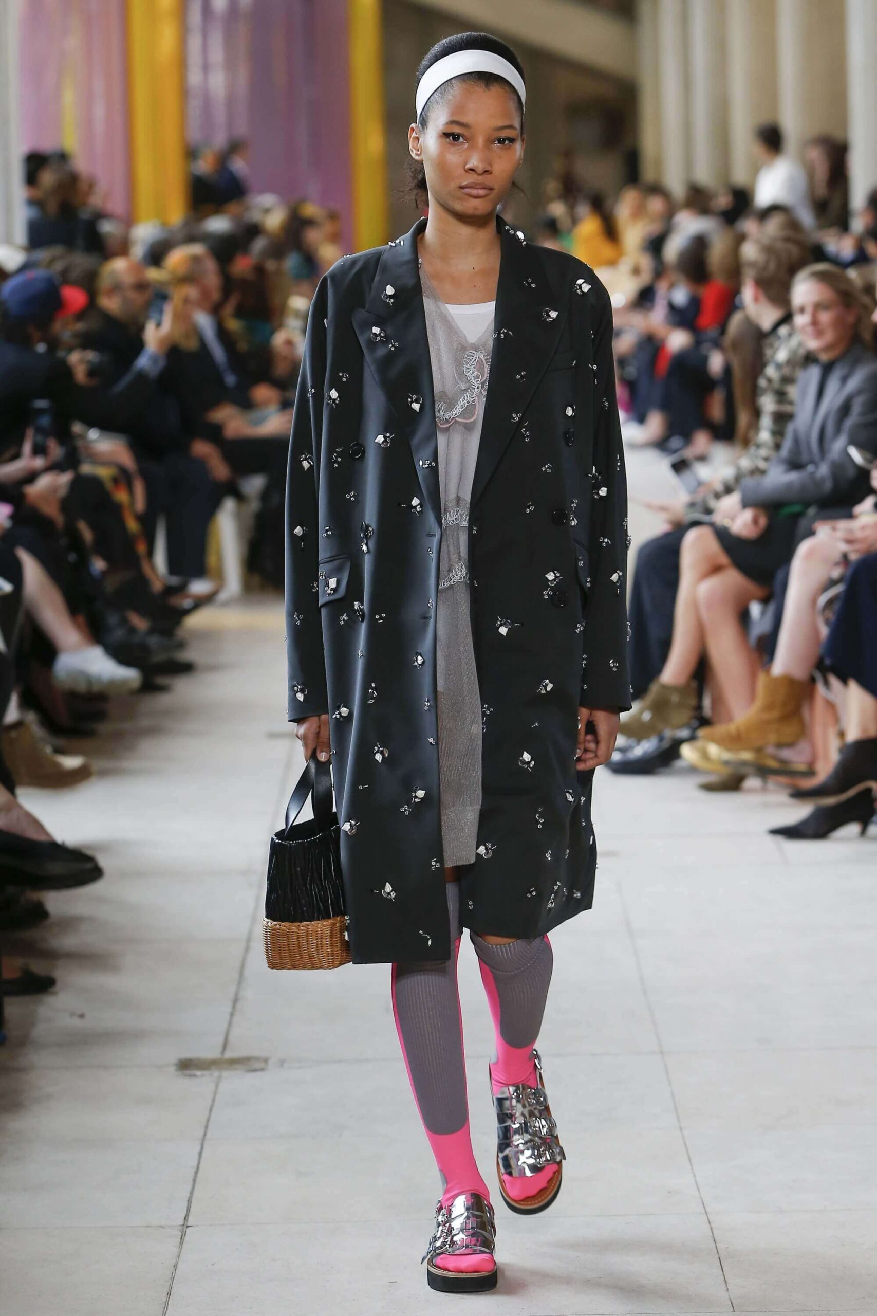 Her best friend was waiting for her in her brother’s grey trousers and school blazer – she was the coolest girl in Miu Miu’s gang. And then that girl they didn’t really like but she passed for 21 and could buy them beers came bearing Buds in a granny’s sofa print house coat, brown tights, three-strap buckle open toe flats sandals and an Alice band hair do number. All smart, all savvy, all dressed to the nines. If things got cold Miu Miu would pull on her boyfriend the biker’s sleeveless leather gilet. He’s sooooo hot! Now where’s that bottle of Bud?