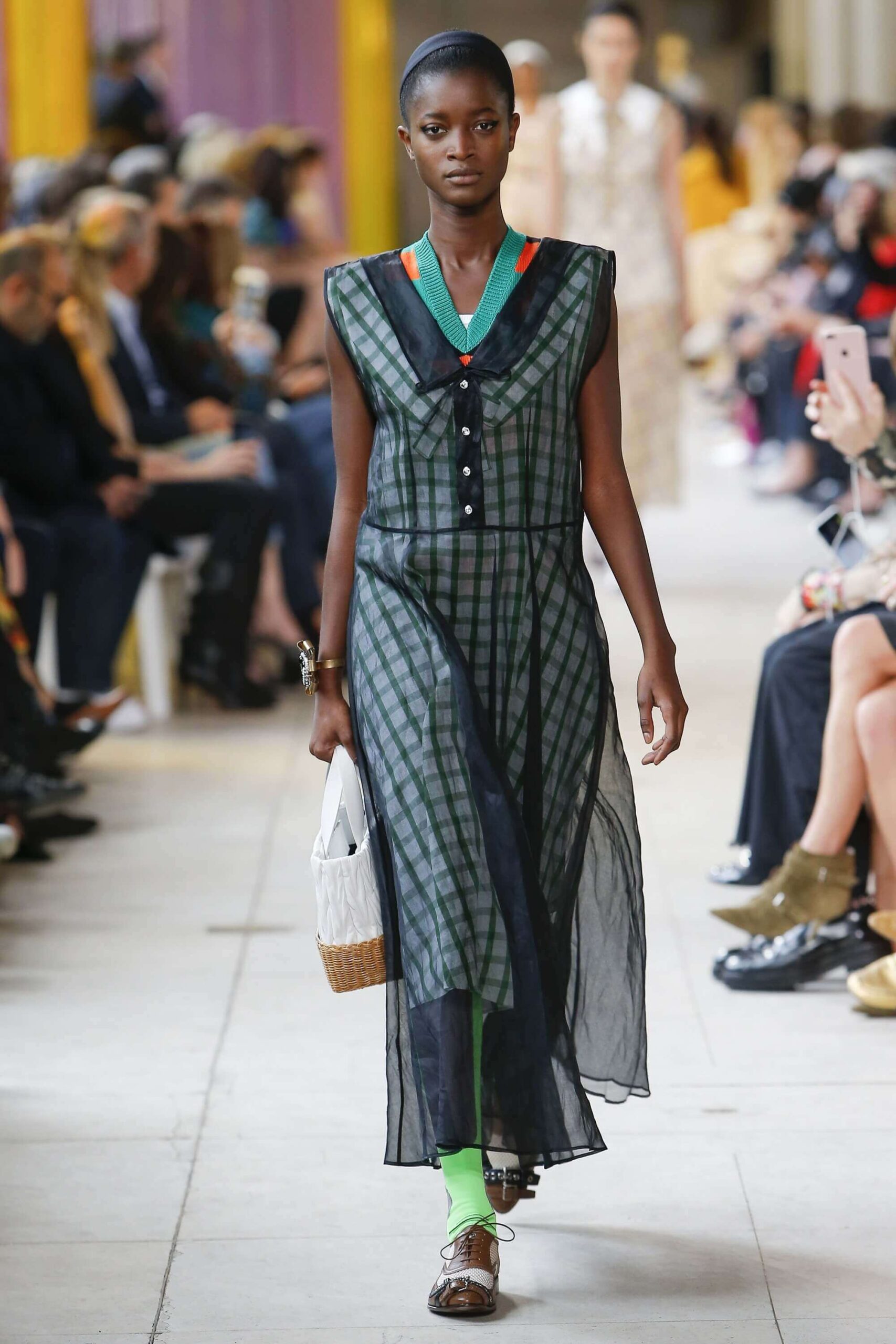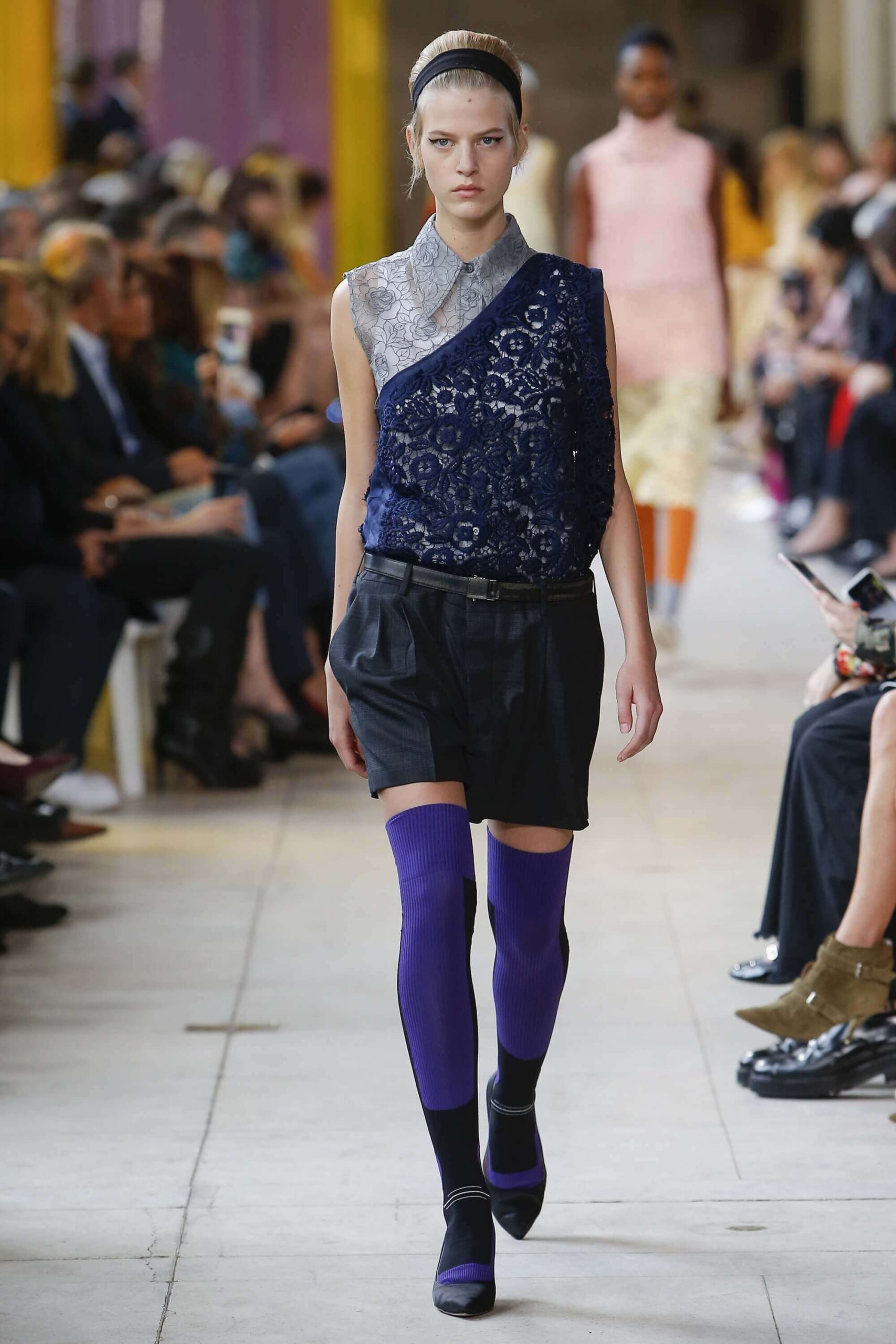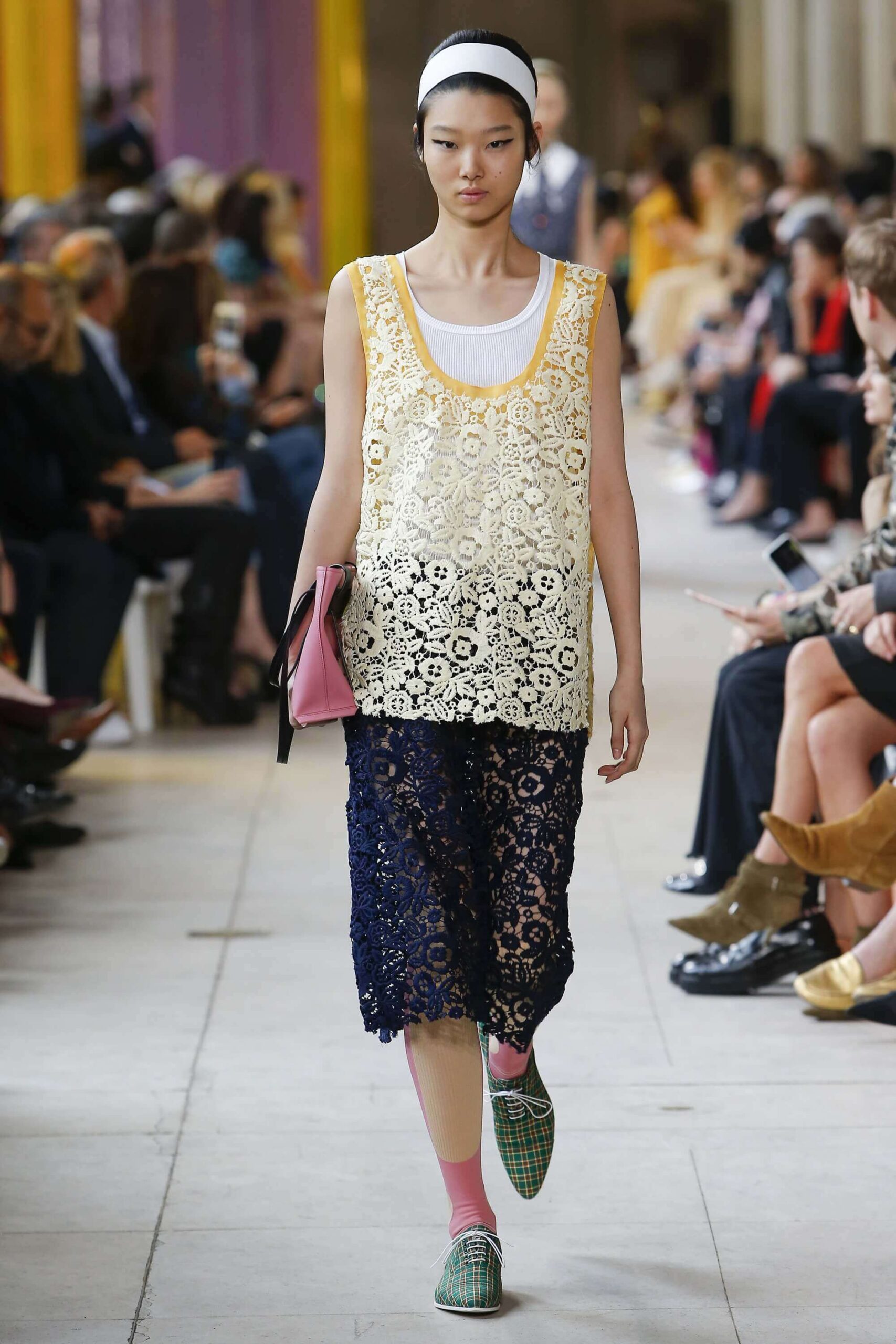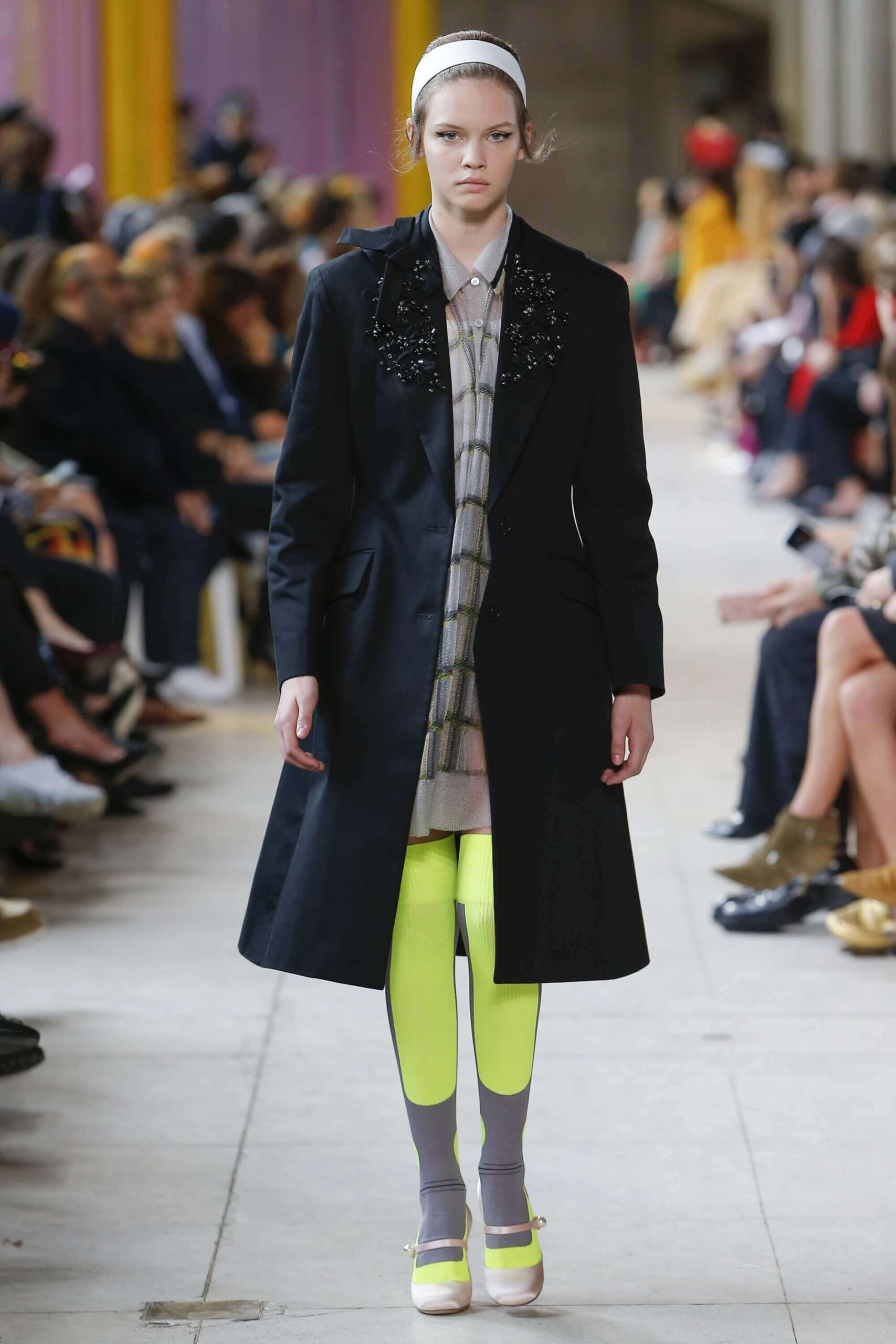 Her best friend was waiting for her in her brother’s grey trousers and school blazer – she was the coolest girl in Miu Miu’s gang. And then that girl they didn’t really like but she passed for 21 and could buy them beers came bearing Buds in a granny’s sofa print house coat, brown tights, three-strap buckle open toe flats sandals and an Alice band hair do number. All smart, all savvy, all dressed to the nines. If things got cold Miu Miu would pull on her boyfriend the biker’s sleeveless leather gilet. He’s sooooo hot! Now where’s that bottle of Bud?