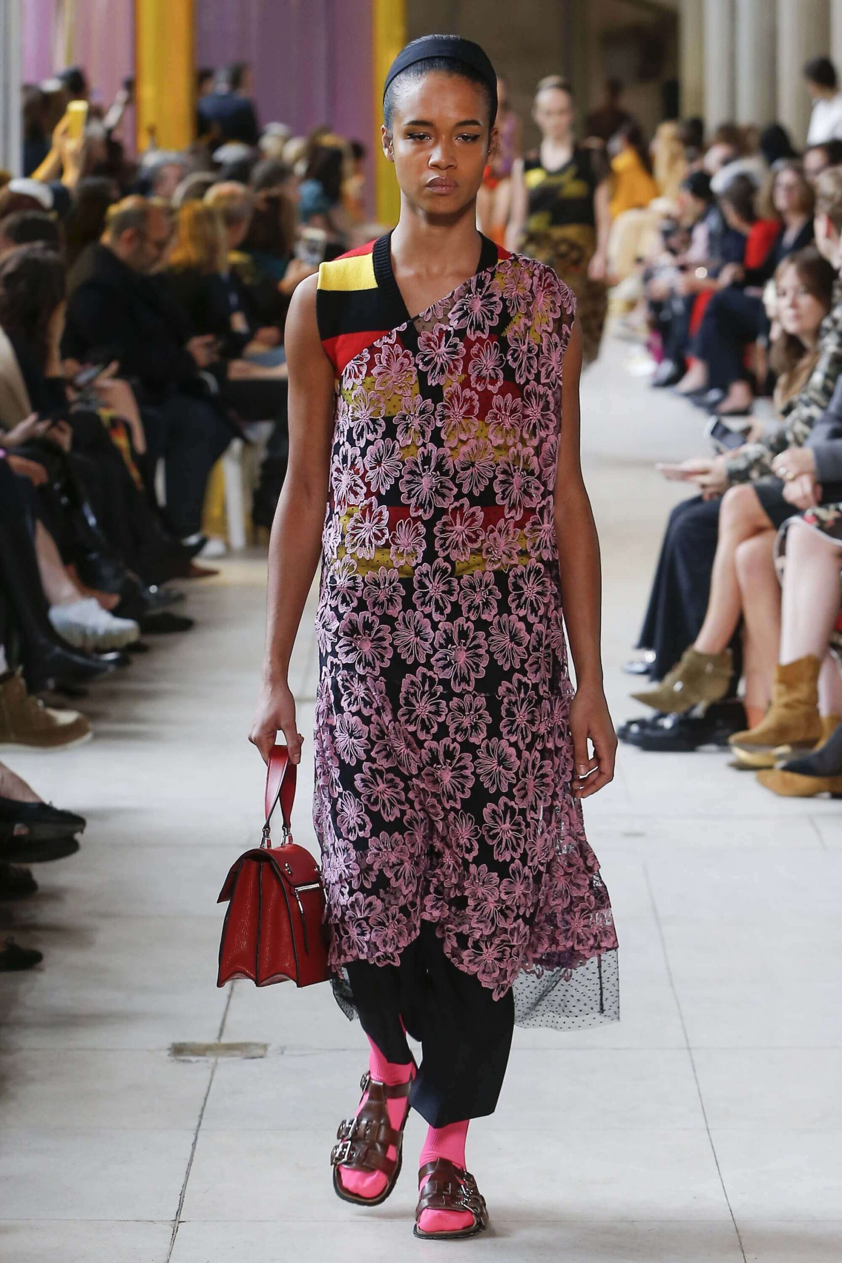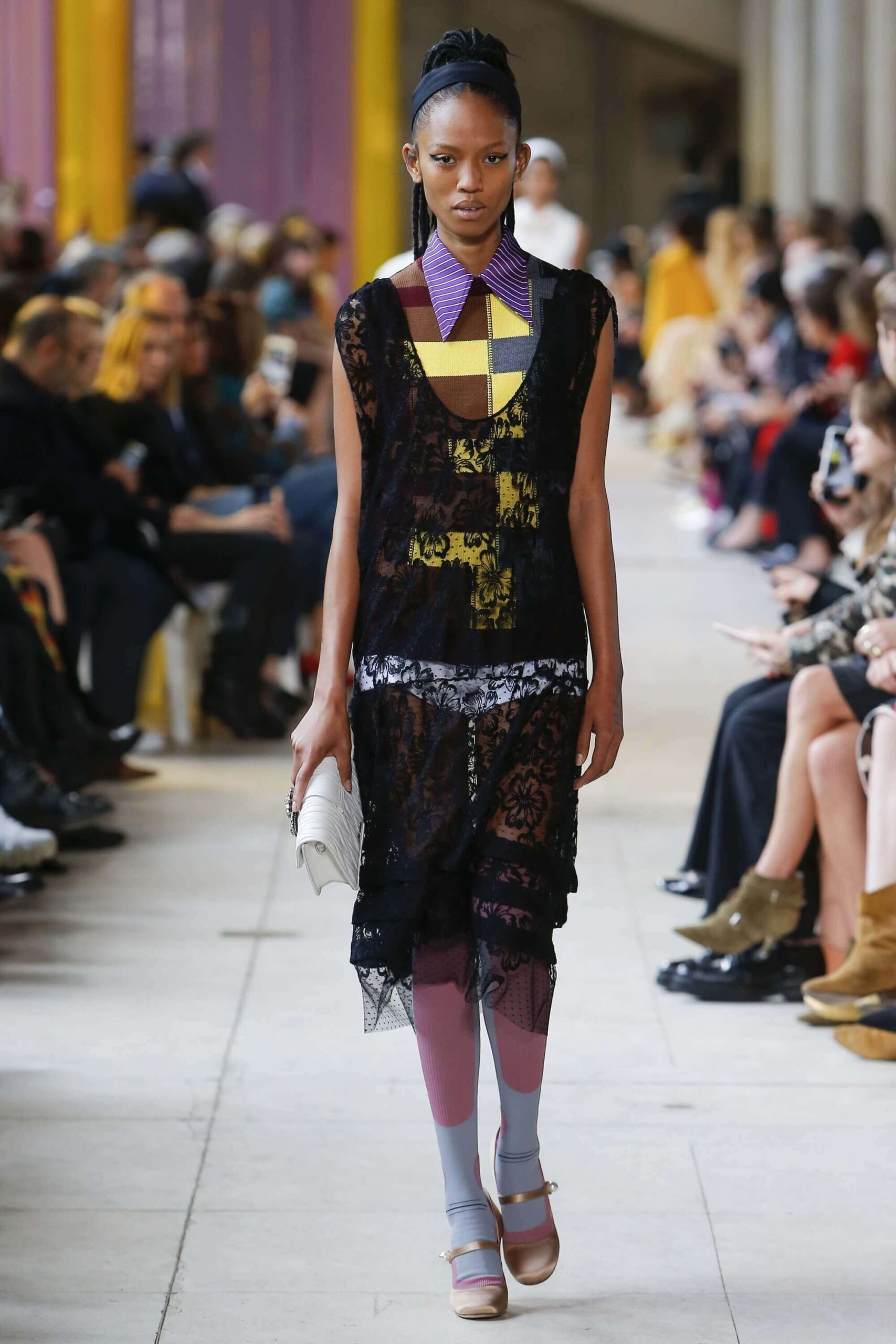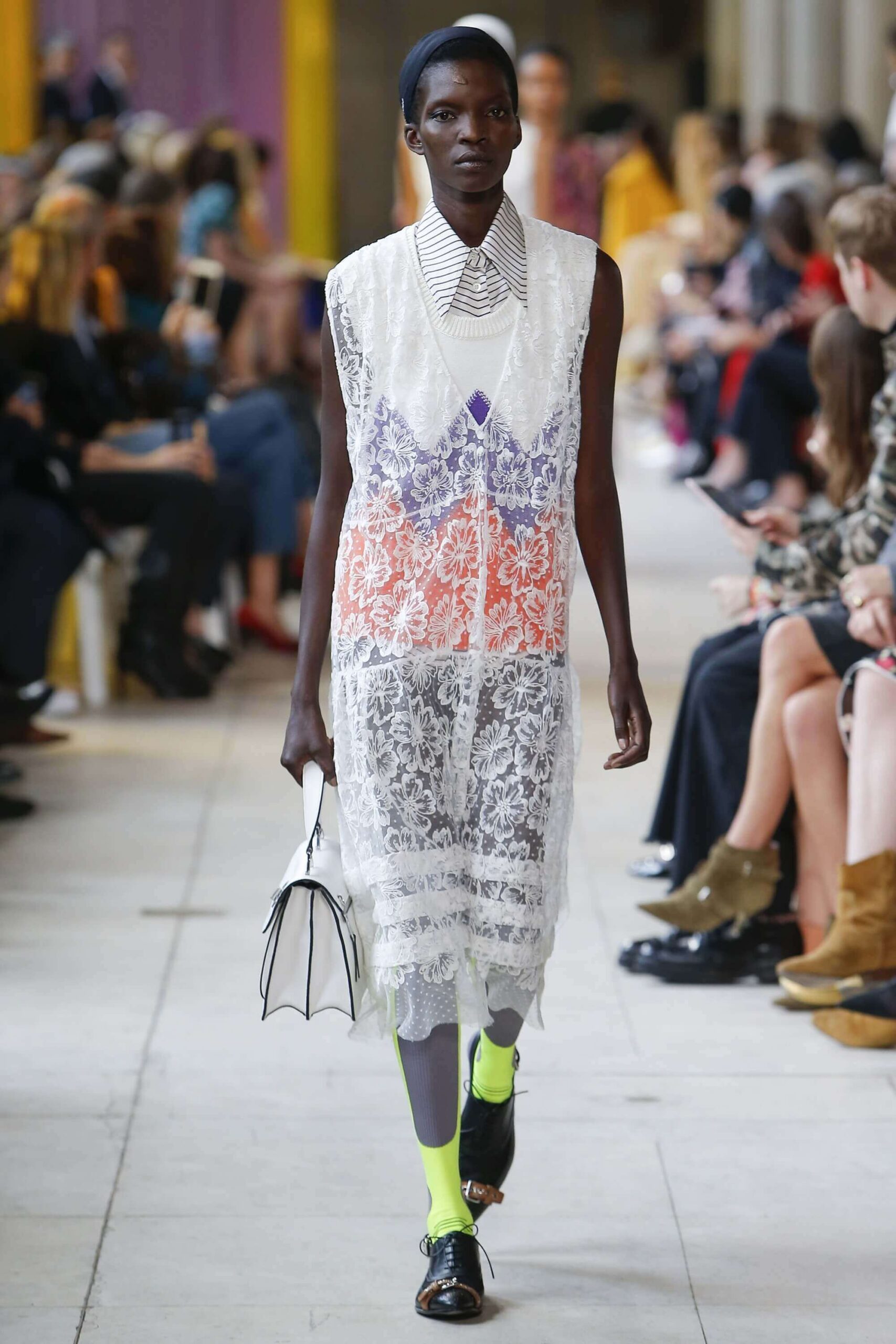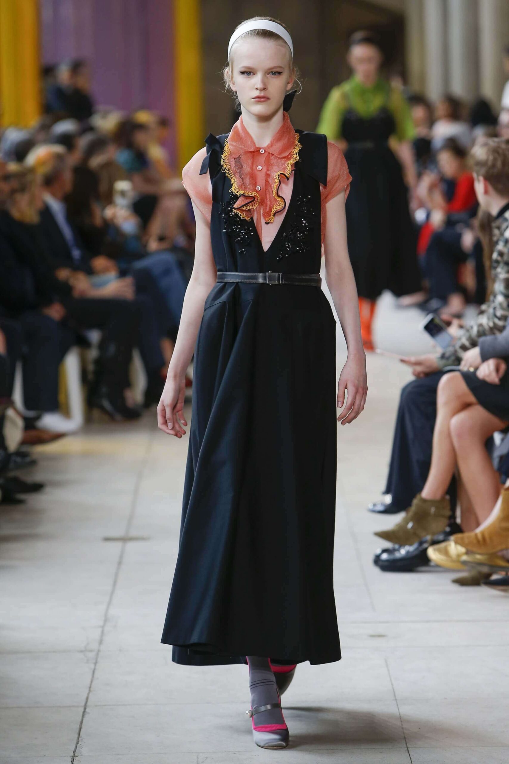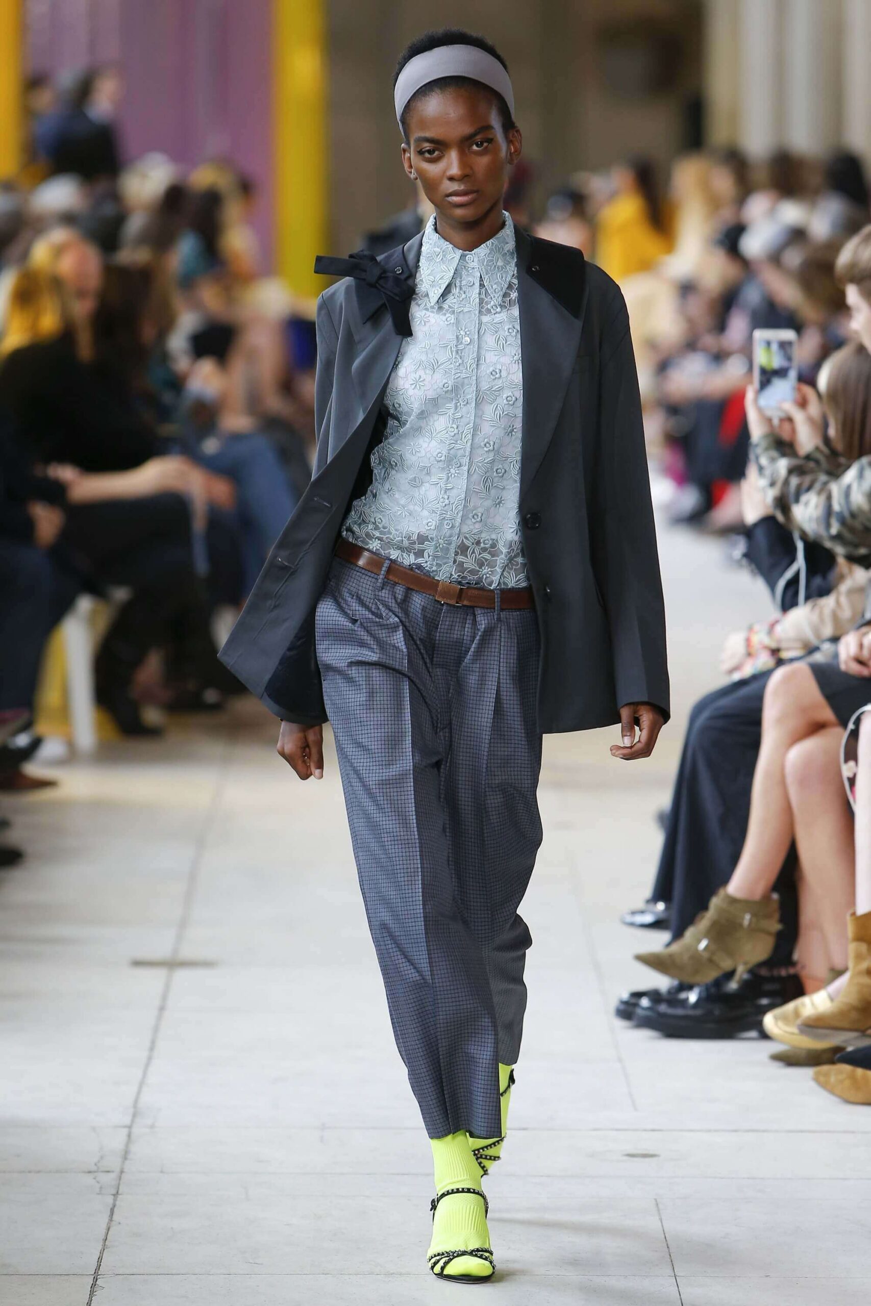 Her best friend was waiting for her in her brother’s grey trousers and school blazer – she was the coolest girl in Miu Miu’s gang. And then that girl they didn’t really like but she passed for 21 and could buy them beers came bearing Buds in a granny’s sofa print house coat, brown tights, three-strap buckle open toe flats sandals and an Alice band hair do number. All smart, all savvy, all dressed to the nines. If things got cold Miu Miu would pull on her boyfriend the biker’s sleeveless leather gilet. He’s sooooo hot! Now where’s that bottle of Bud?