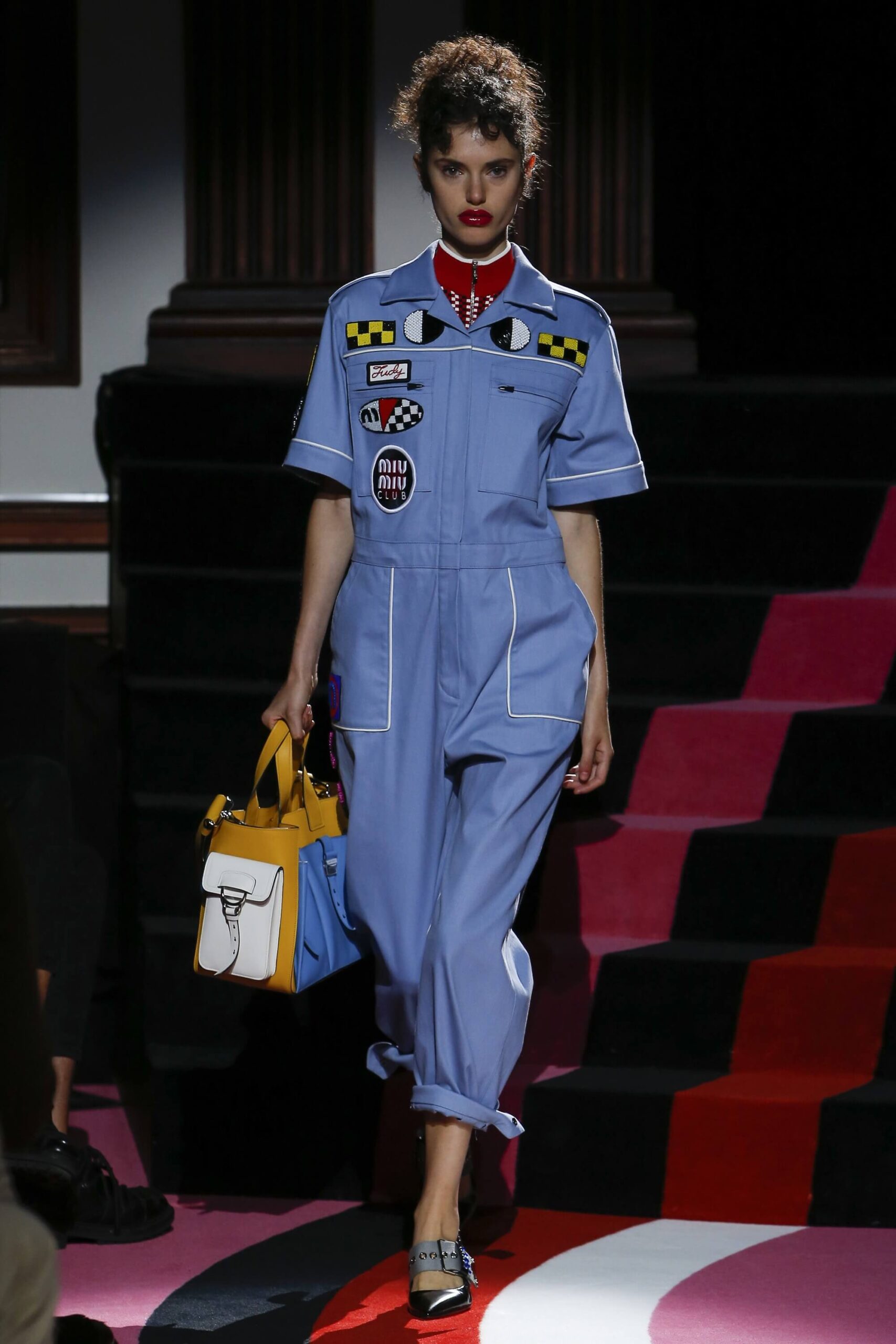 Welcome to the Miu Miu club, where the drinks are, quite literally, free. We’re still drinking them. Har har. This evening Miuccia showed her Miu Miu Cruise collection in Paris, which was glamorous lady car mechanic. Which meant Miu Miu-branded boiler suits, some short, some full length, some tied around the waist, demonstrated on lady supermodels Adwoa Aboah, Bella Hadid, Kendall Jenner et al. Sexy and practical. Very into it. As Garth said; “saves deciding what you’re going to wear in the morning, non?”