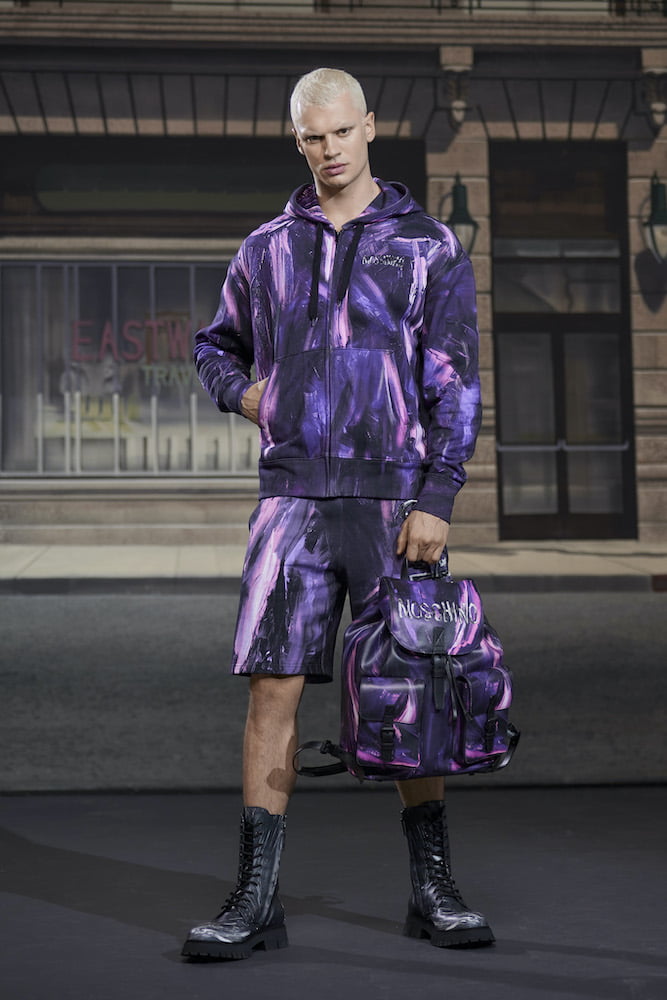 These classic masculine pieces, rendered as paintings, and worn by chiselled, male models, lent the collection a 3D cinematic look. It was as if Scott’s strong-jawed Moschino men were heroes in a graphic noir novel come to life. It was quite the page-turner.