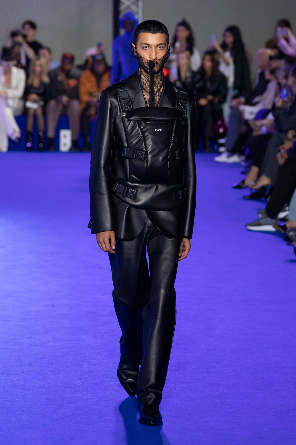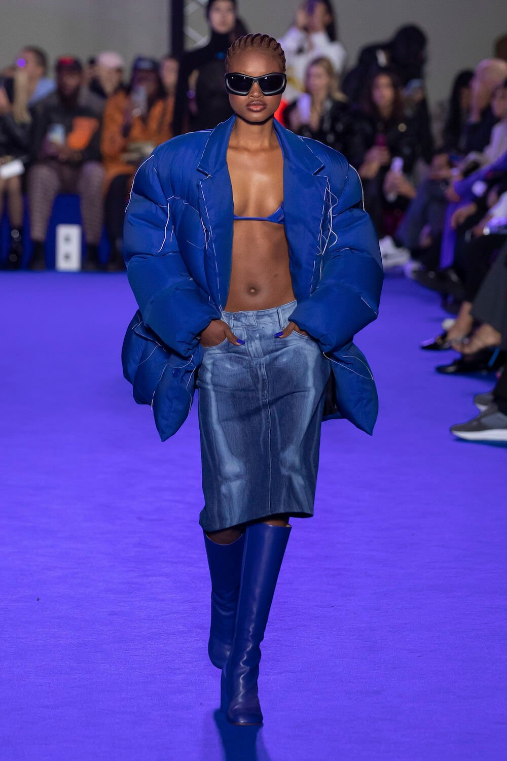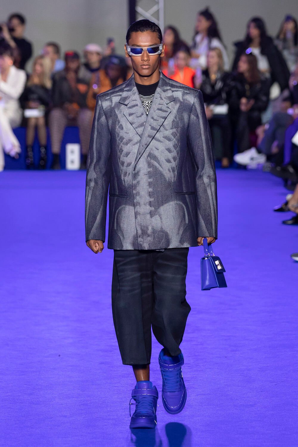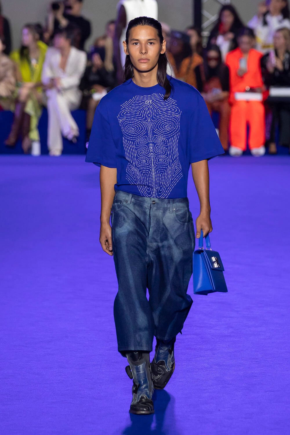 After Virgil Abloh’s untimely death the creative reigns of Off-White have passed to his long time collaborator Ib Kamara. This was his first show as art and image director and he chose to honour Virgil’s blue sky thinking with a show dedicated to the colour which he intends to make a signature of the brand.