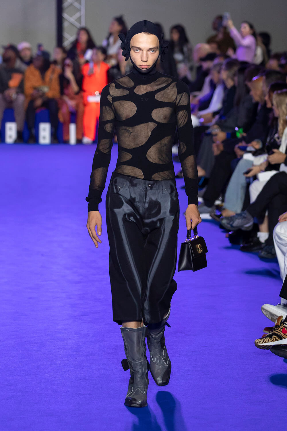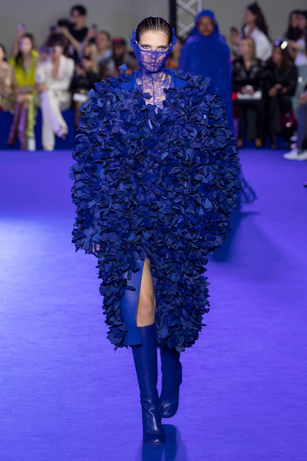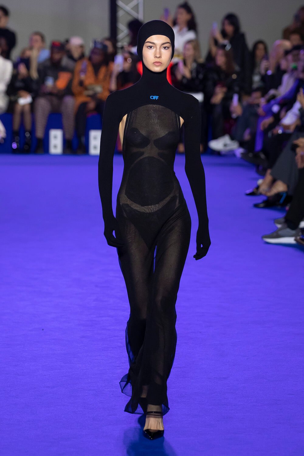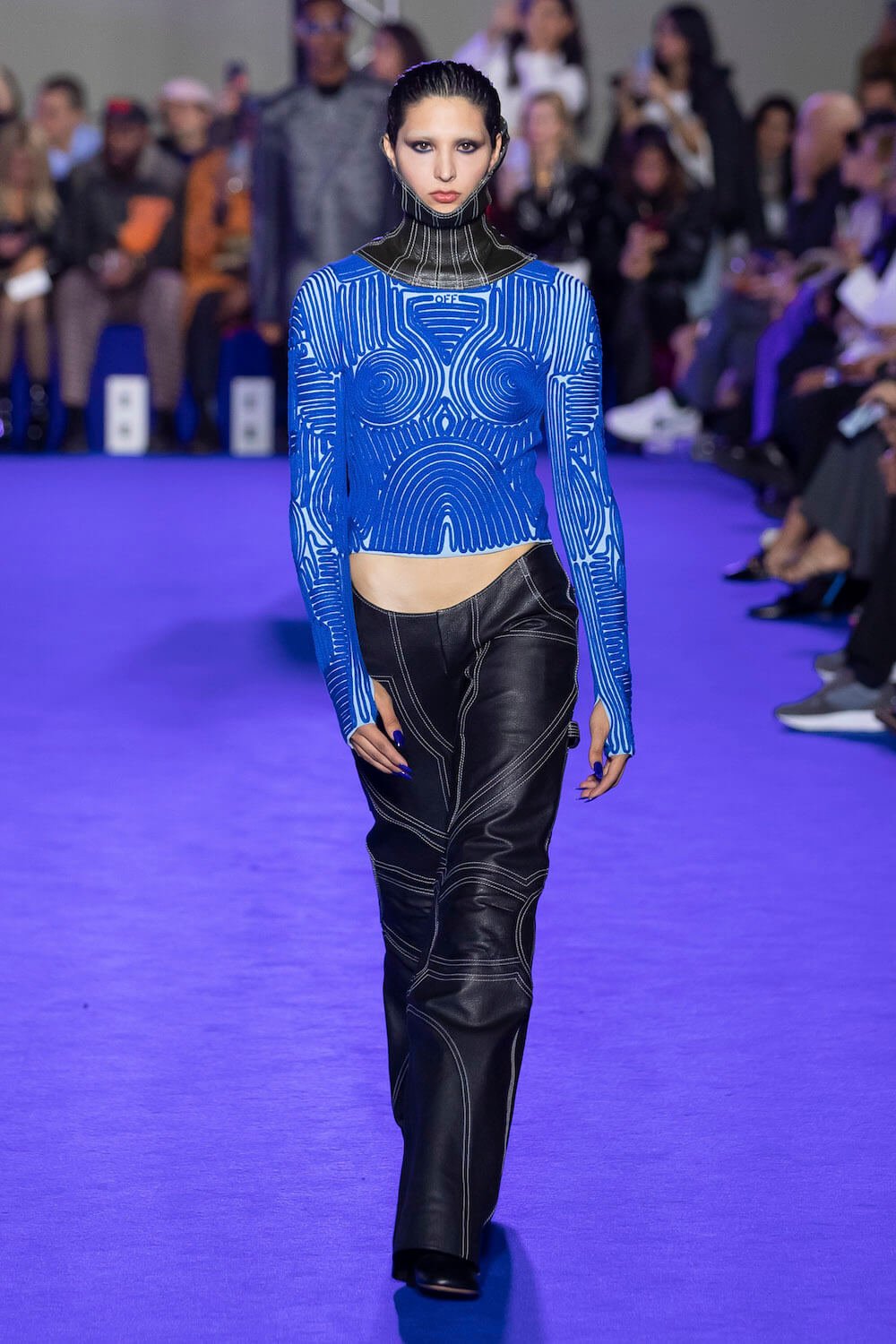 After Virgil Abloh’s untimely death the creative reigns of Off-White have passed to his long time collaborator Ib Kamara. This was his first show as art and image director and he chose to honour Virgil’s blue sky thinking with a show dedicated to the colour which he intends to make a signature of the brand.
