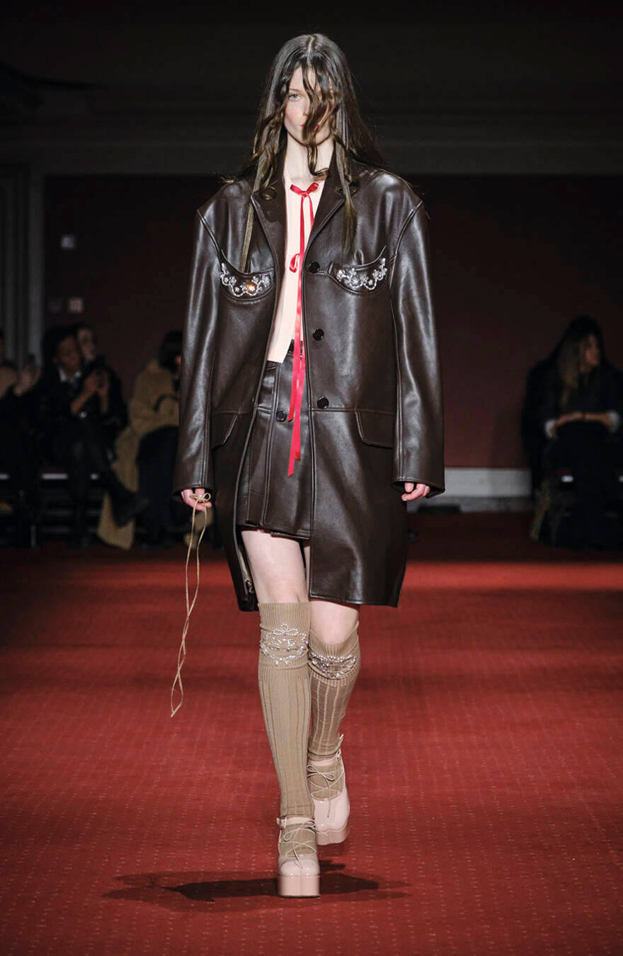 Olivia’s top four items from the FW23 collections, clockwise from top left (and overleaf): jacket by Bode, skirt by Prada, coat by Simone Rocha, sneakers by Cecilie Bahnsen x Asics