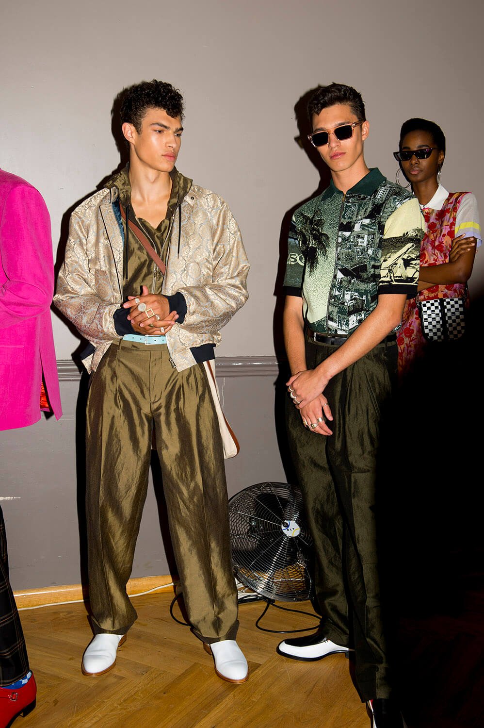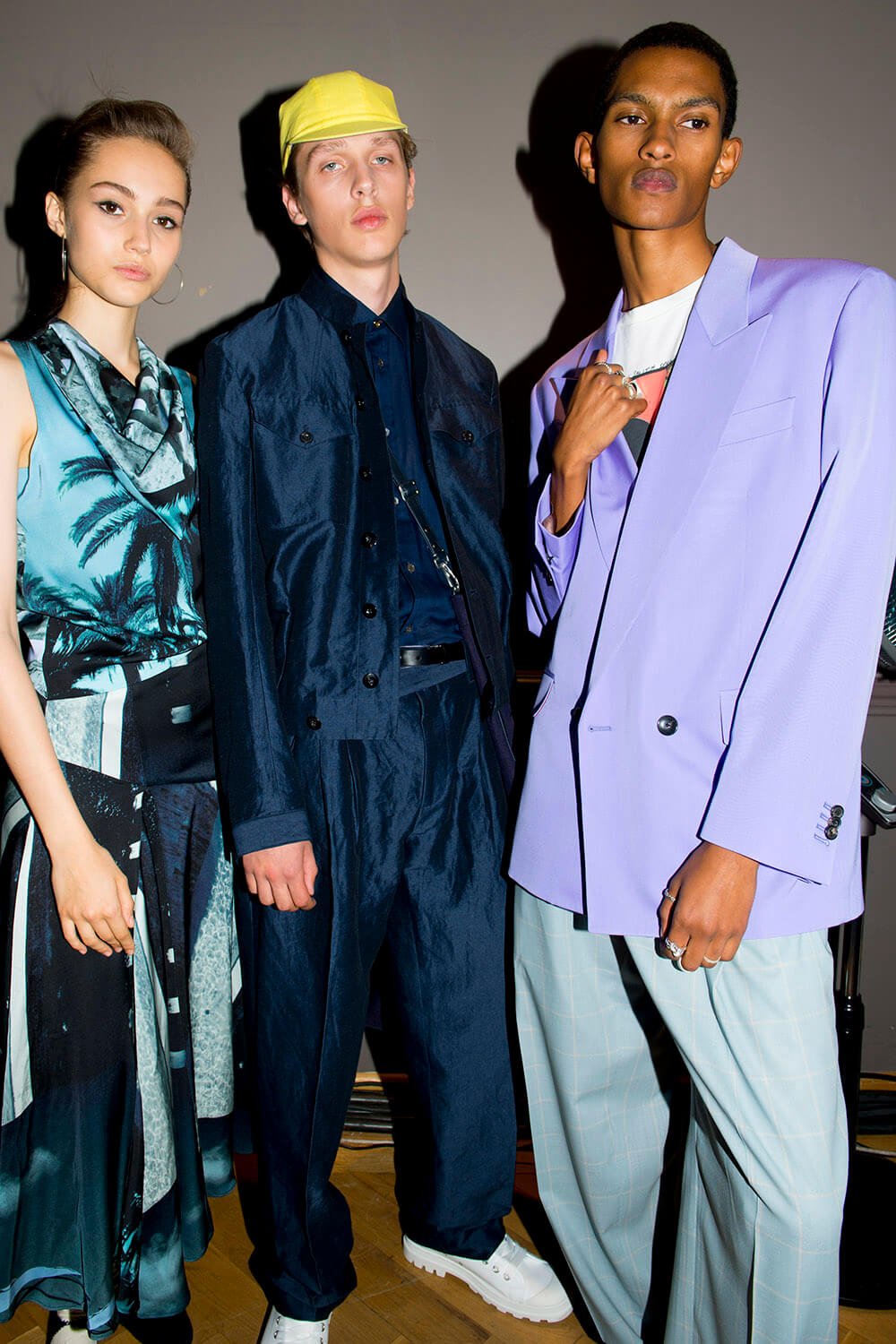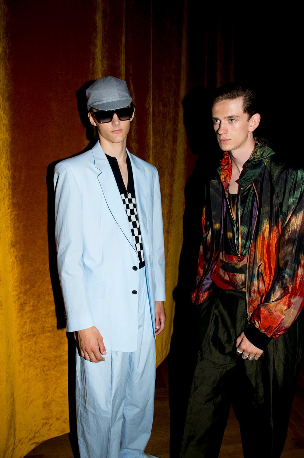 This Beeston lad has expanded his Paul Smith empire into 70 countries. It’s a magic mix of tailoring skills that boils up a special brew of world-beating menswear, and has sold a brand to the world that says “Come on England!”. Potent then that he shows on the day the England team thrashed Panama 6-1 in the World Cup. So for spring, Captain Smith sent a line out of super-skilled looks rooted in Savile Row tailoring. Drop double-breasted jackets and check fabrics were best. Then new wave details like red shoes and a double button jacket in yellow. And a smashing pink jacket the British press were slavering over. Then we went all new wave again with a red leather coat and some superb window pane checks. Mash that up with a polka dot and kerching! Paul Smith magic.