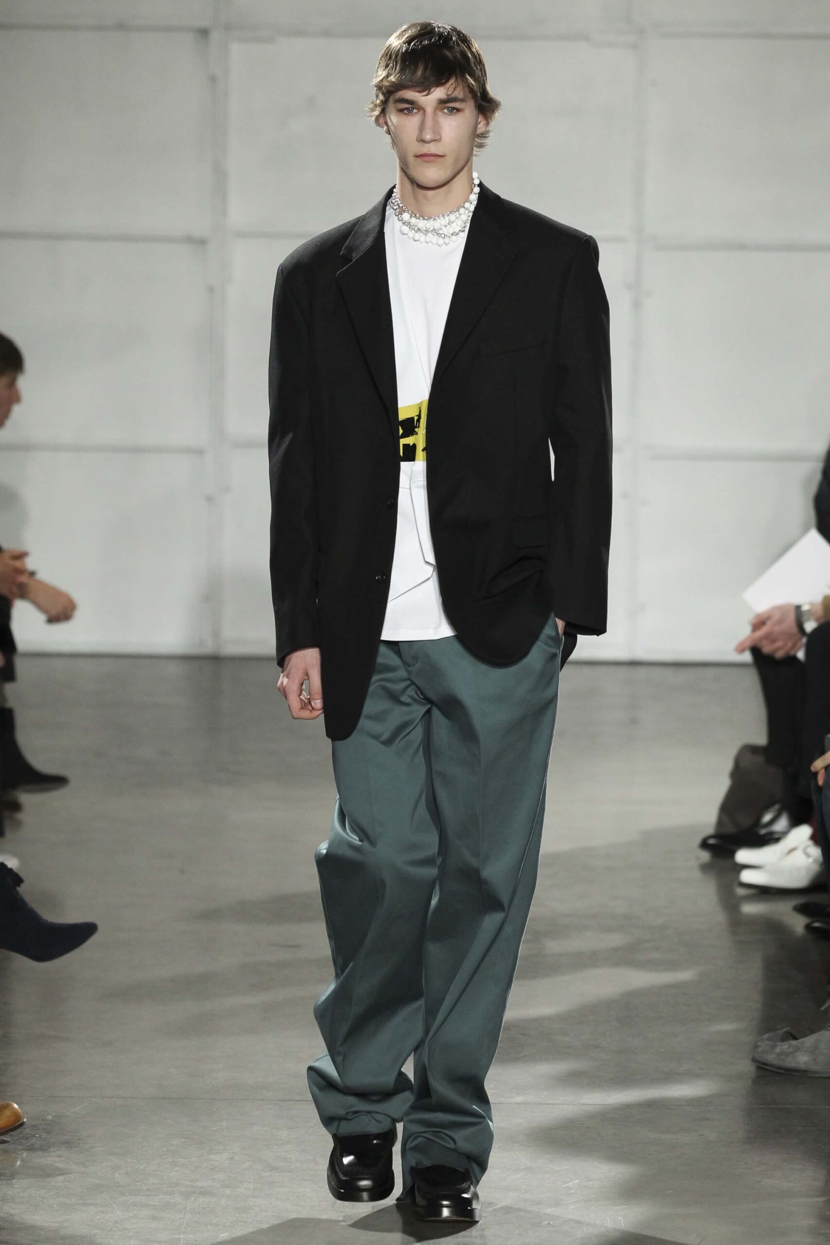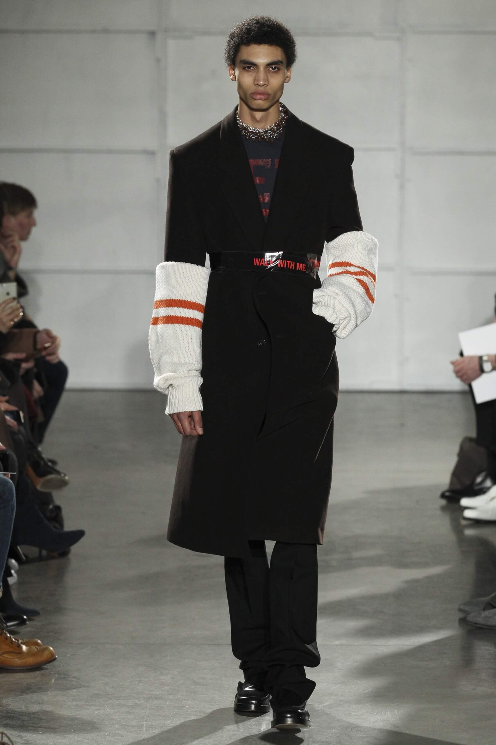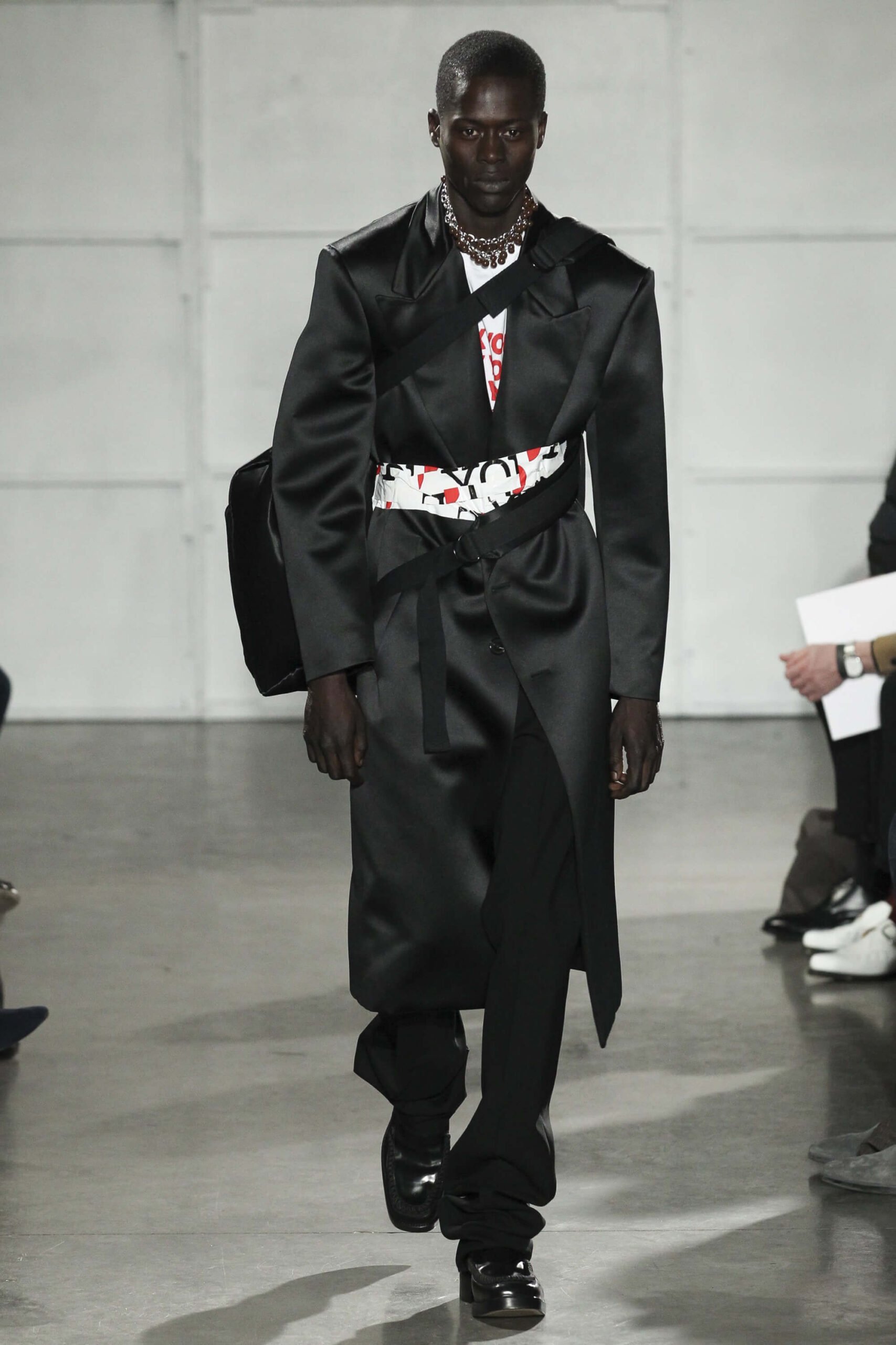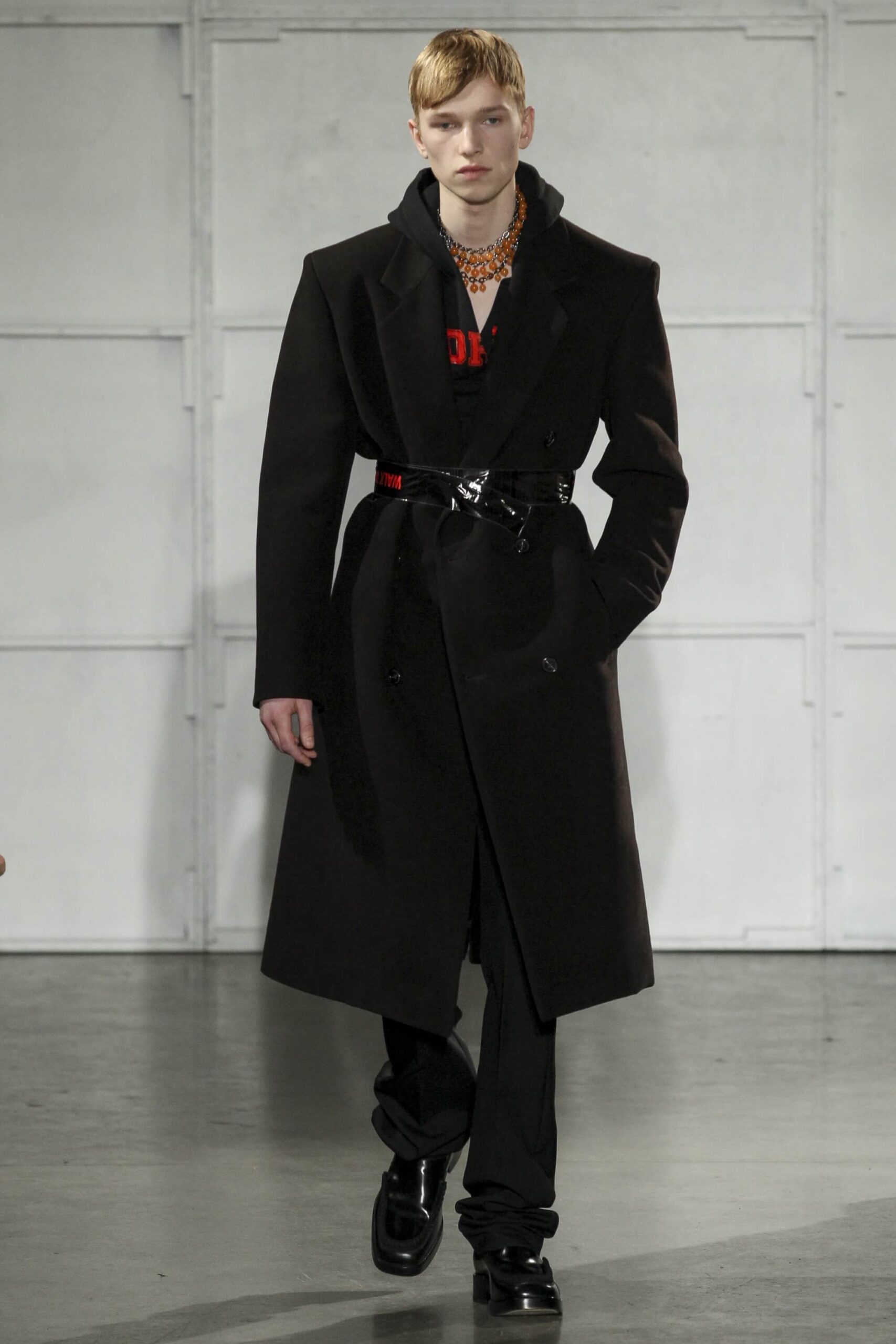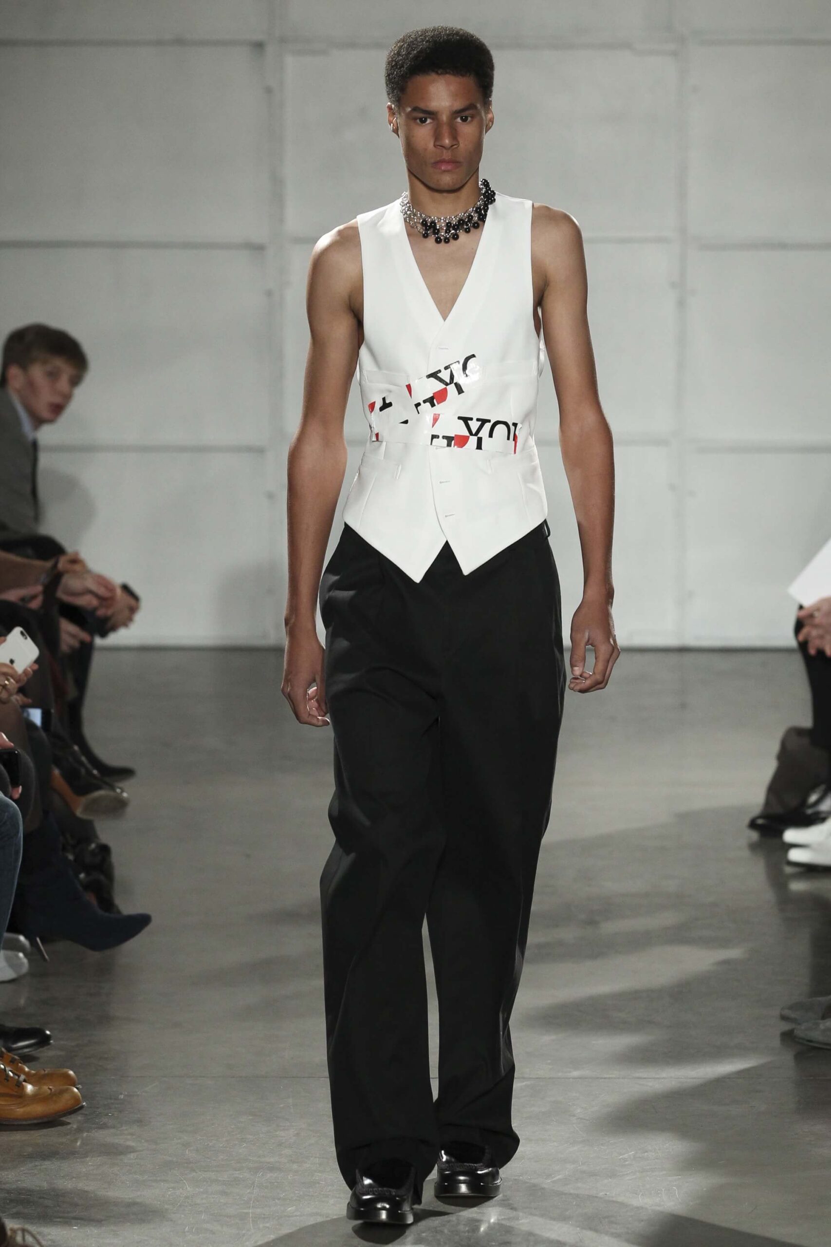 As you probably know, Mr Simons has taken over the Calvin Klein, showing next week. How appropriate, then, that last night he showed his men’s collection in the city of New York. Exploring his new life and new world. The masculine collection was grown up yet not mature. Cropped stretched knits with I HEART NY seemed worn in, adored by its former owners. Maybe from a different time or with a former president. Utilitarian military shirts were oversized, creating a kind of naive army of boys. Mr Simons is never shy to create an architectural silhouette but in New York this college boy of a former season had come of age. He had taken his dads crombie coat and moms Dior beaded necklace and left Paris for good. Coming to America to be a man. And got through that US border before the laws of old ideas changed the world again.