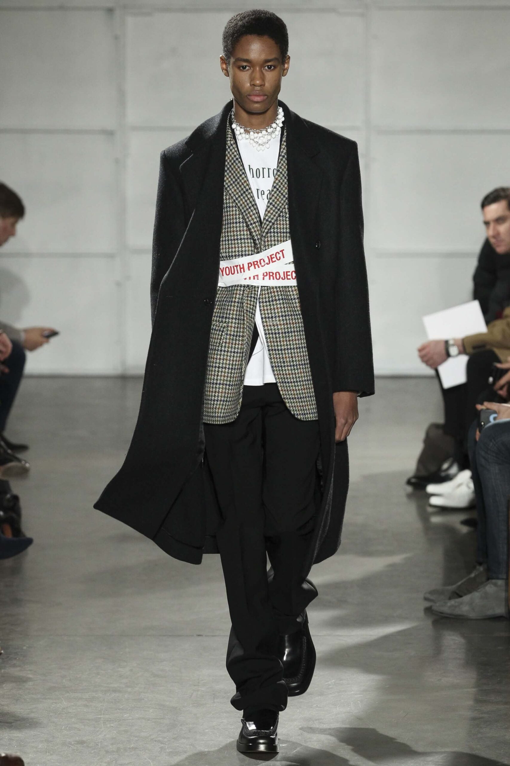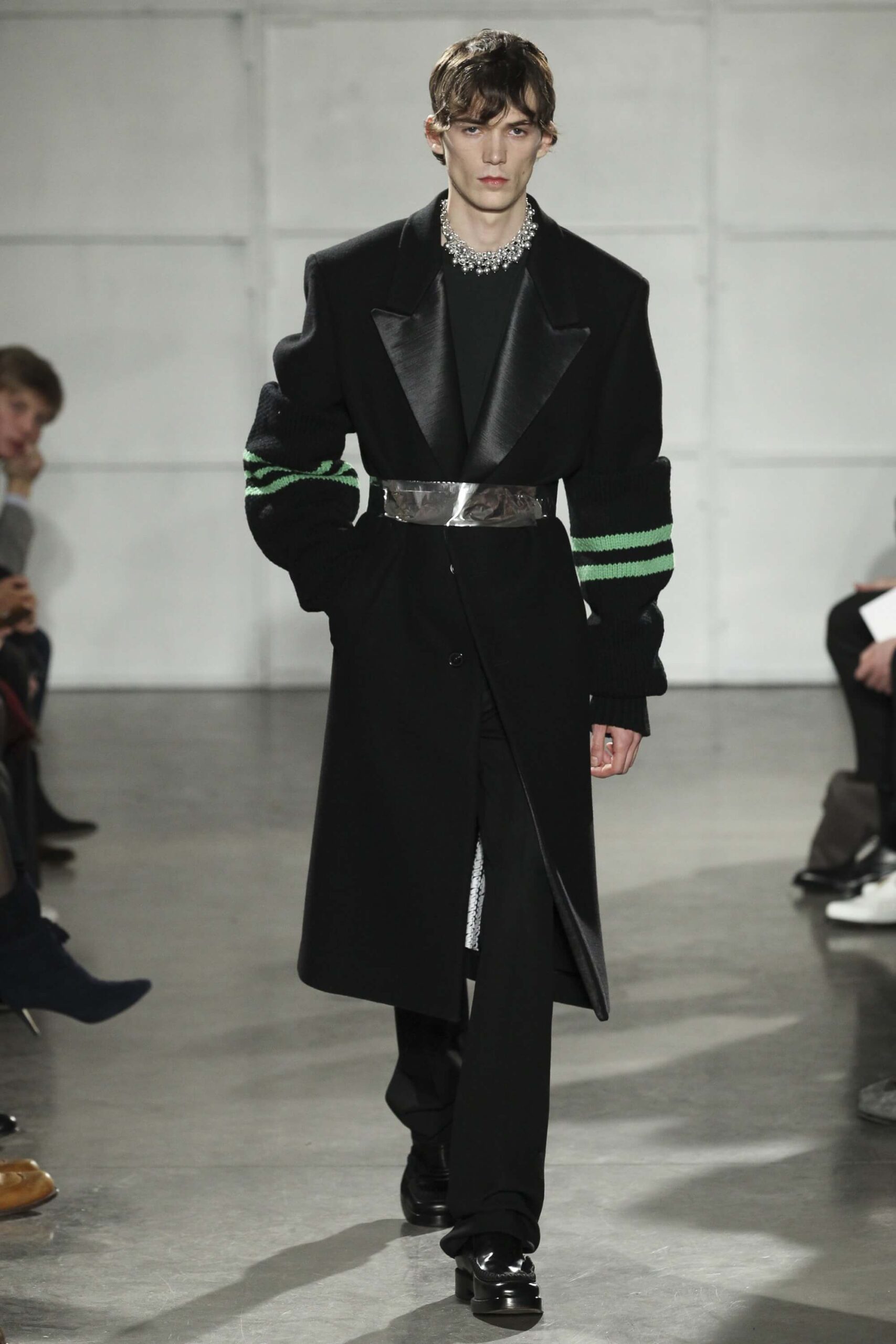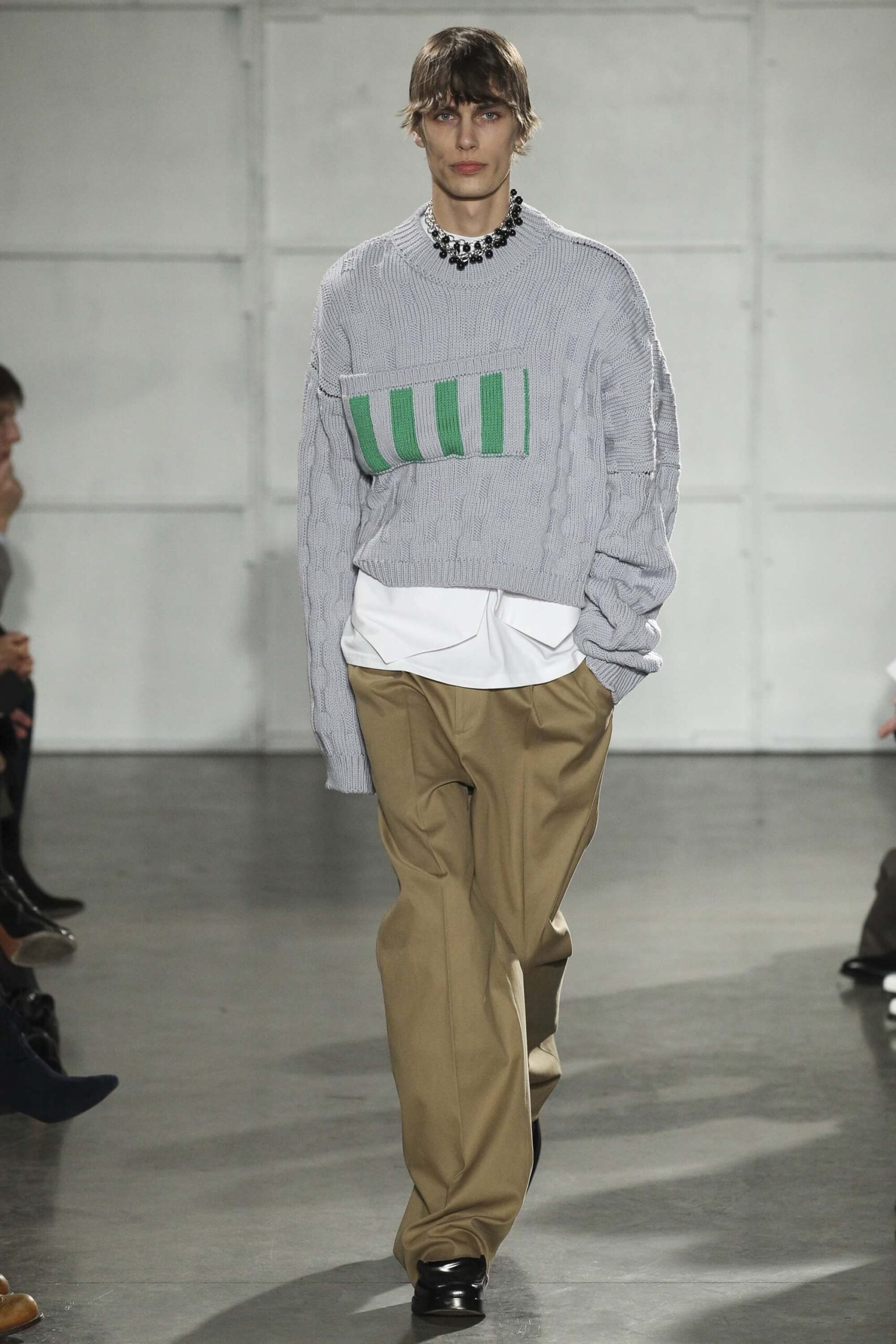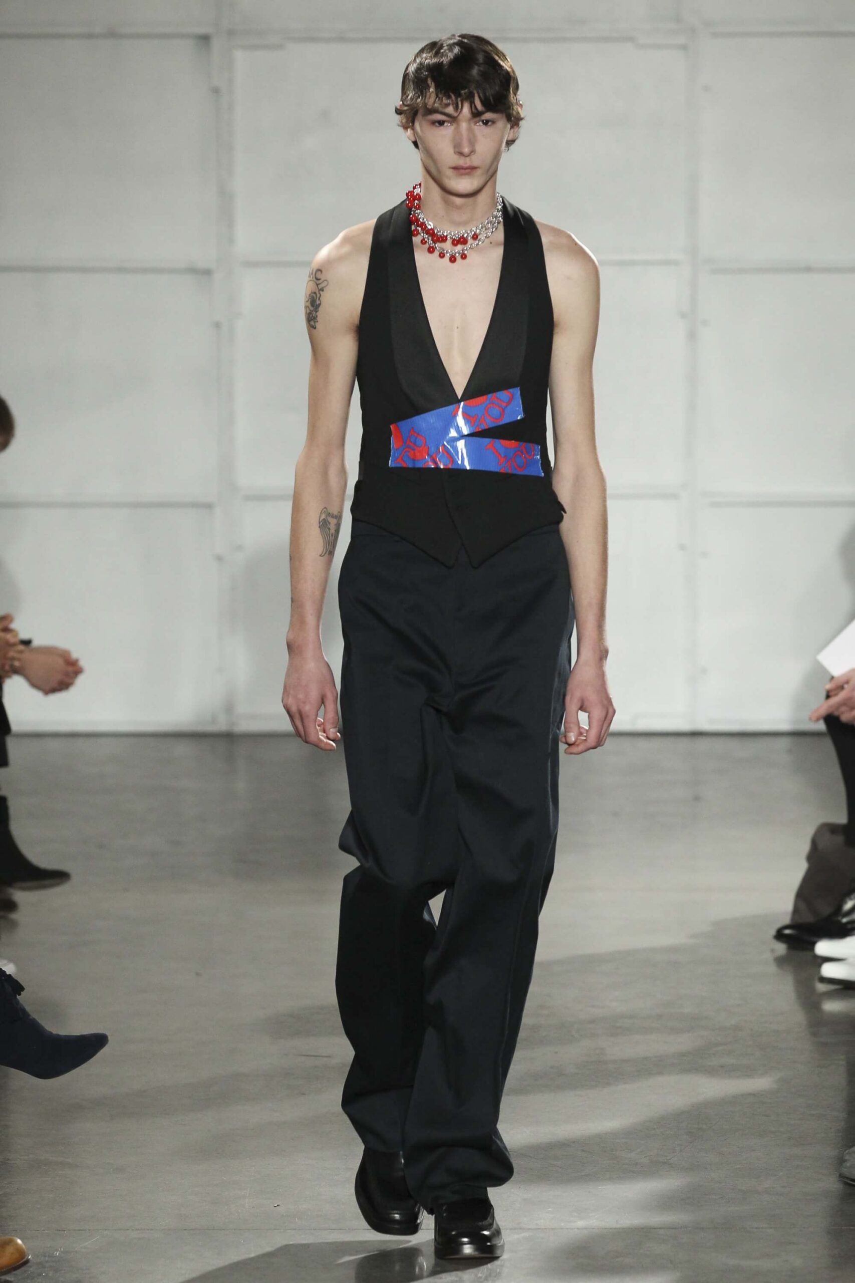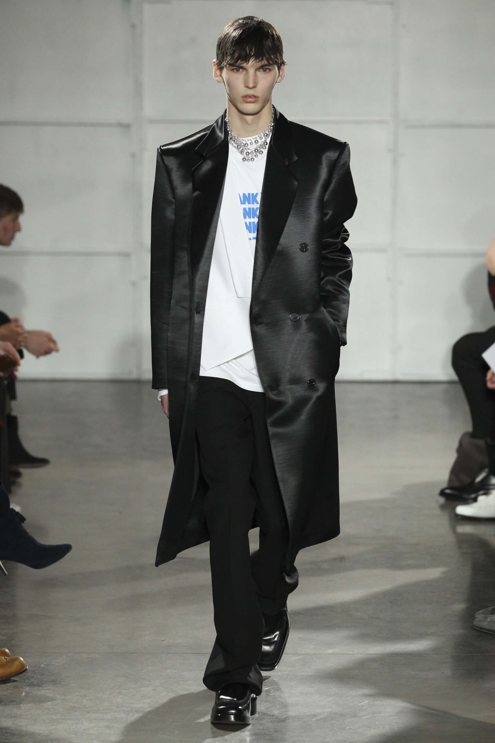 As you probably know, Mr Simons has taken over the Calvin Klein, showing next week. How appropriate, then, that last night he showed his men’s collection in the city of New York. Exploring his new life and new world. The masculine collection was grown up yet not mature. Cropped stretched knits with I HEART NY seemed worn in, adored by its former owners. Maybe from a different time or with a former president. Utilitarian military shirts were oversized, creating a kind of naive army of boys. Mr Simons is never shy to create an architectural silhouette but in New York this college boy of a former season had come of age. He had taken his dads crombie coat and moms Dior beaded necklace and left Paris for good. Coming to America to be a man. And got through that US border before the laws of old ideas changed the world again.