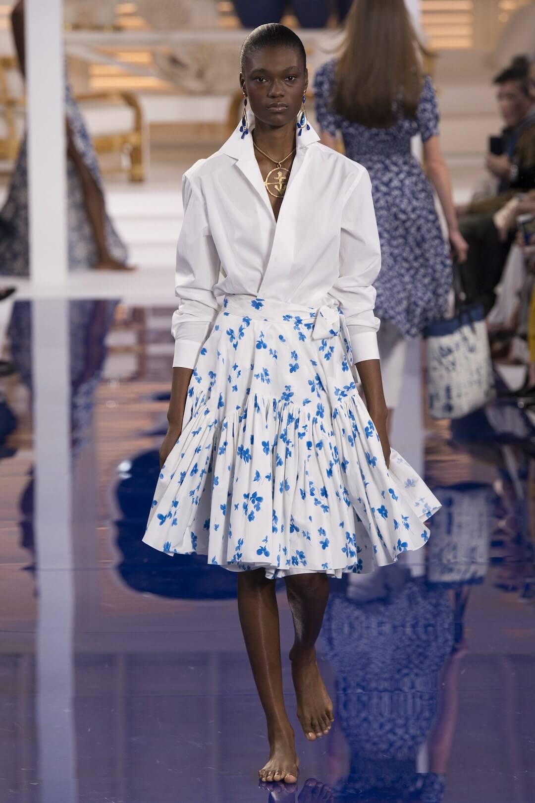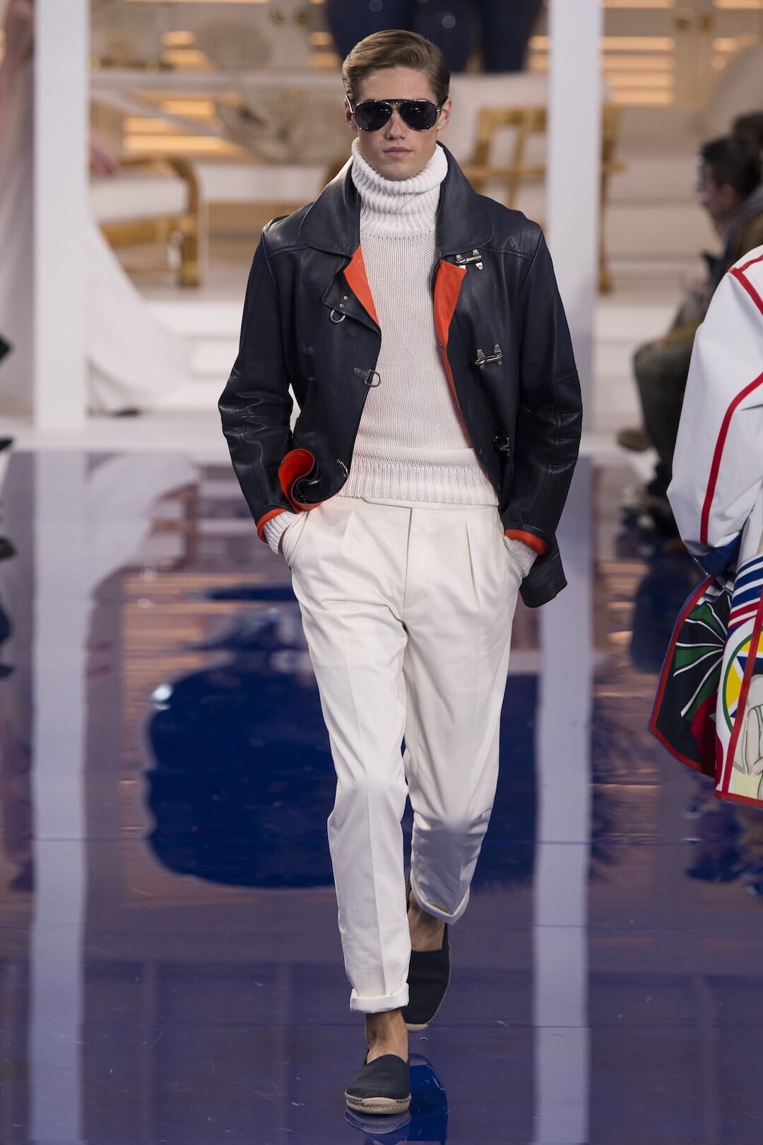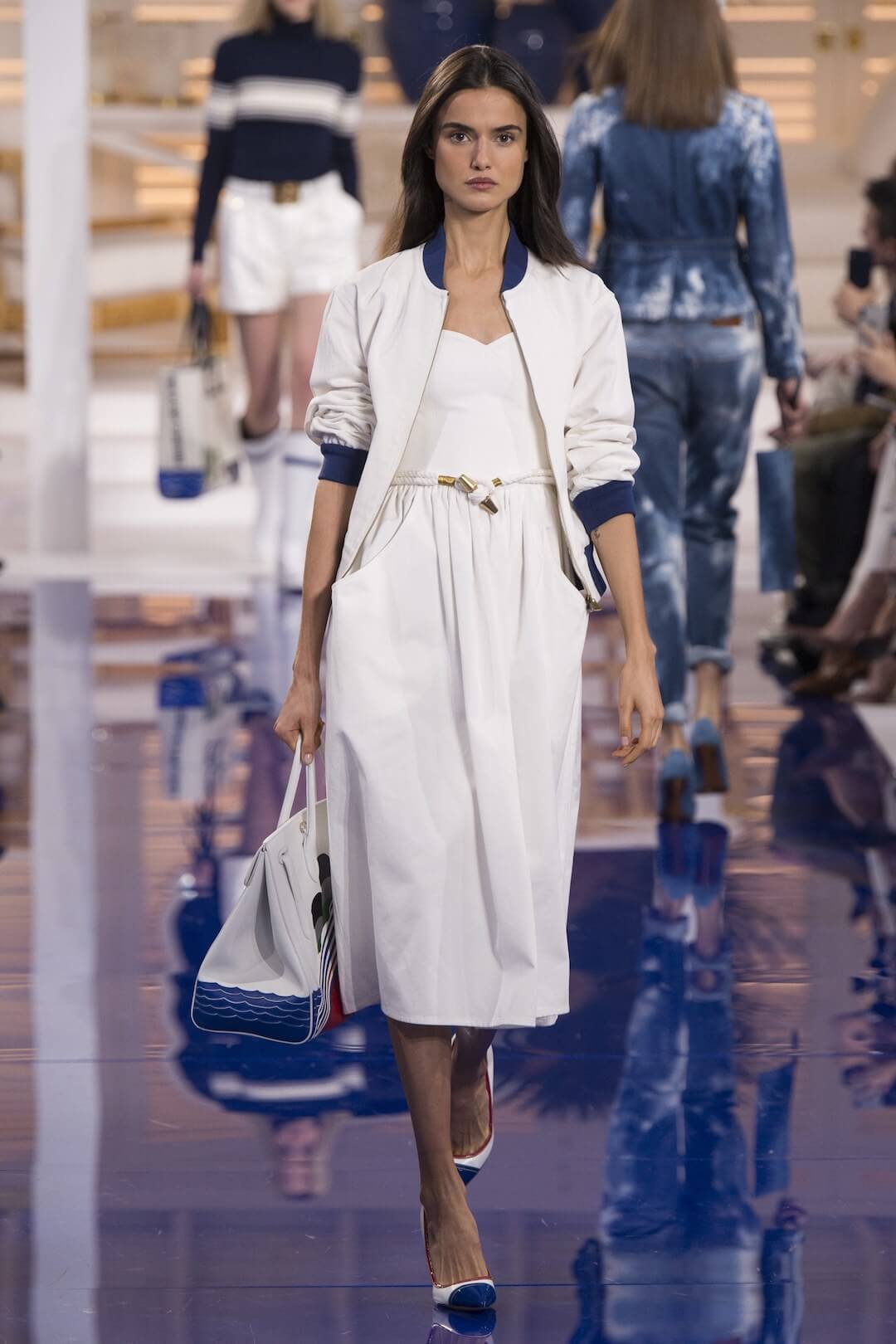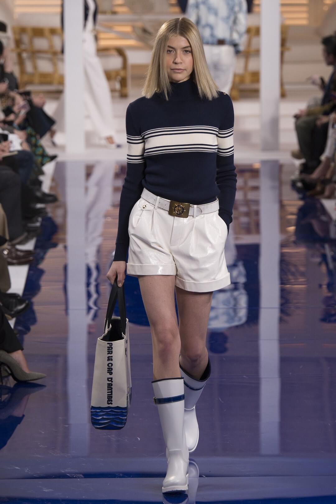 This was the next chapter in what we are calling his “Live Like Ralph” series. Last season we were hot-wiring with Ralph Lauren, this season we are holidaying with Ralph. And so we were gently lulled whilst waiting for the show to begin, with the promise of Mr Lauren’s home away from home, Montego Bay, that white washed setting in Jamaica, and the true blue of the Caribbean lapping away. “We came there on holiday as a young family almost three decades ago, and it wasn’t long before we moved into a romantic old villa overlooking the Caribbean. It had an English colonial spirit and a glamour that harkened back to the days when Grace Kelly, Noel Coward, the Astaires, Errol Flynn, and Ian Fleming wintered there… It was our own Garden of Eden,” he explains in 50 Years of Ralph Lauren.
