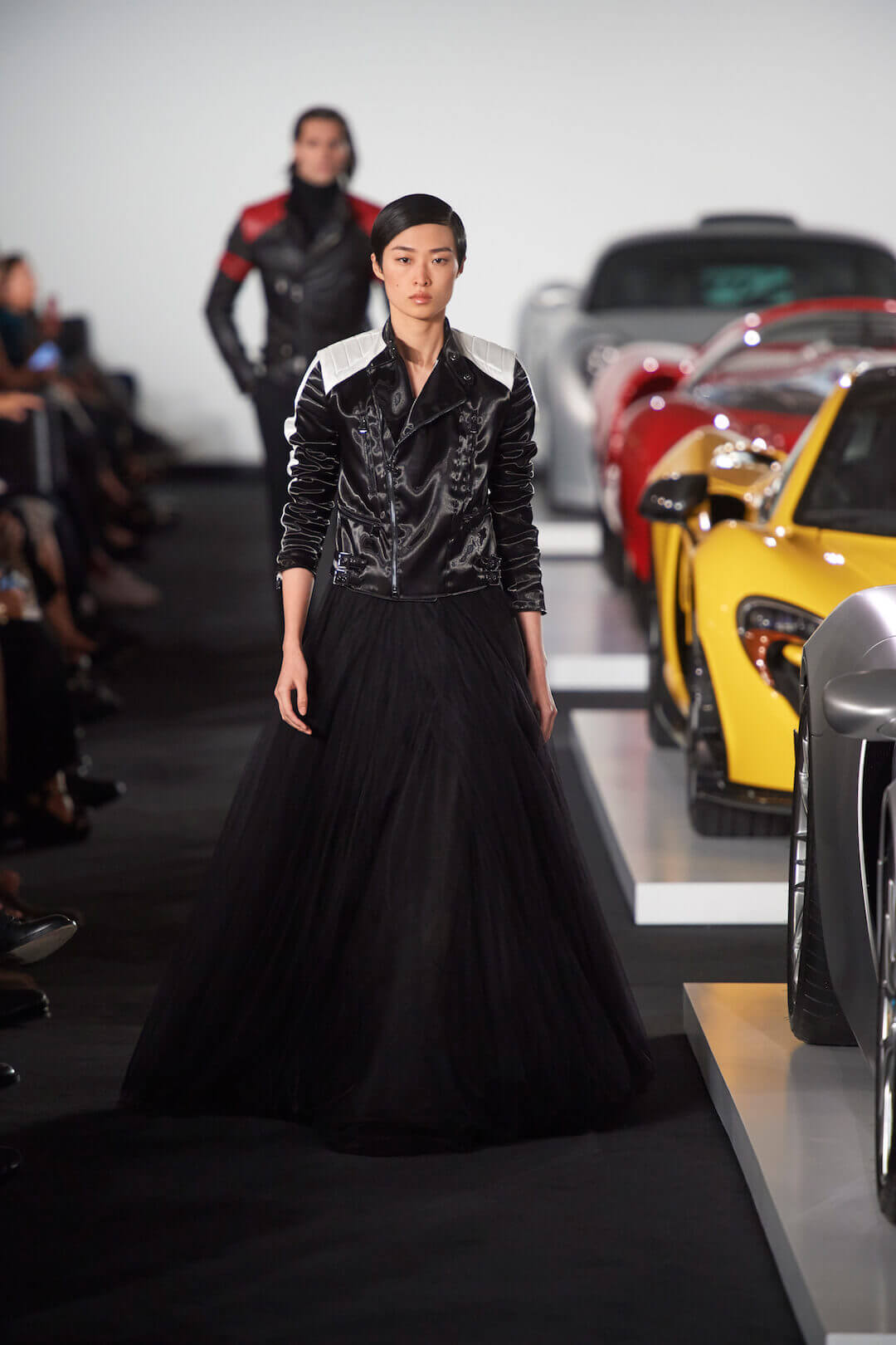 But the best thing here was the gowns, shiny, fluid organza, strapless, falling away into wide A-line skirts. They were shot through with colour – go-faster yellow, electric blue, Ferrari-red. Some were the shape of a trench coat, panelled with layers of sheer. It was a sleeker, sharper offering than Ralph of late, and all the better for it. Those Hollywood starlets front row will be scratching the eyes out of each other to get their hands on one of those gowns.