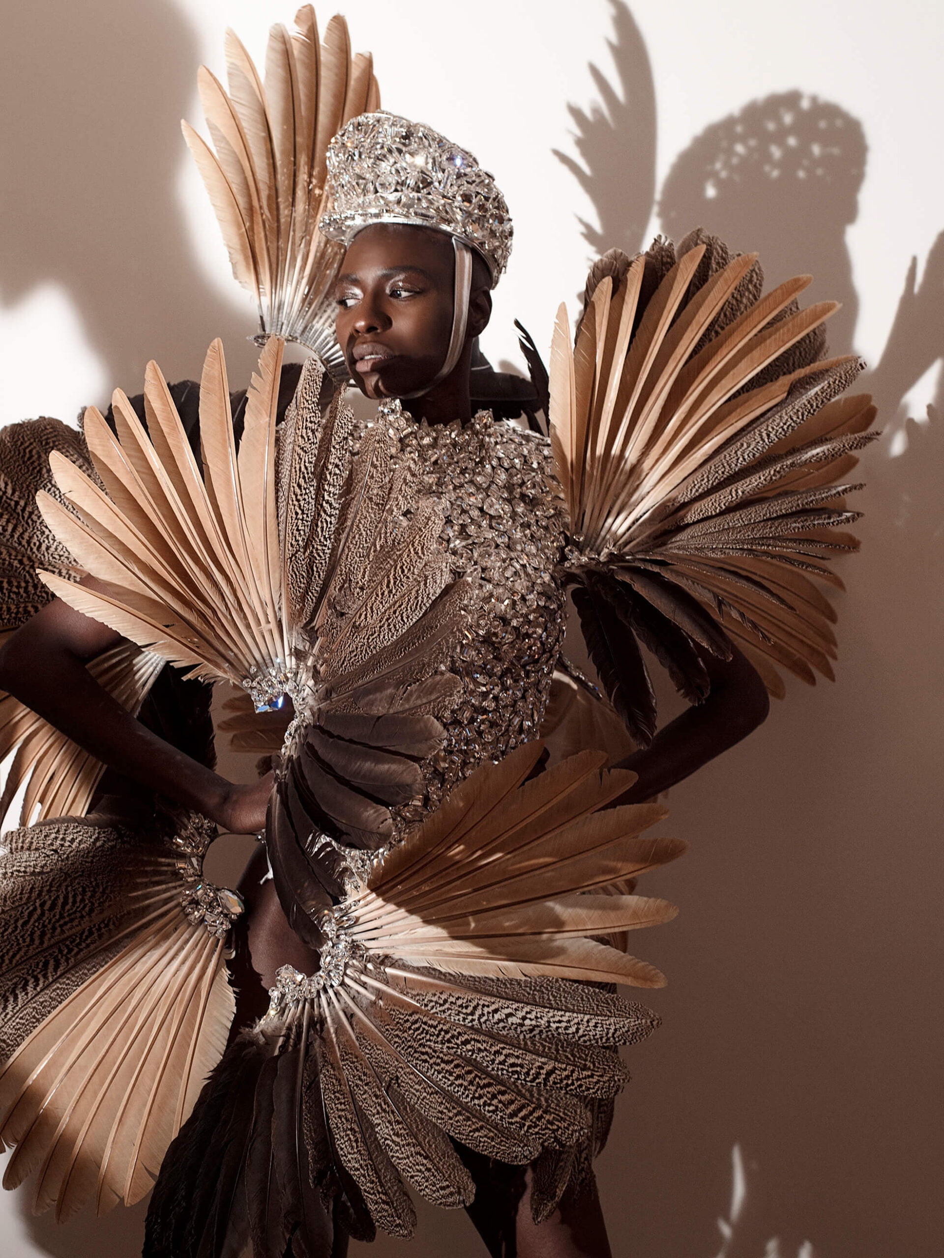 It was very ‘Birds of a Feather’ at Serkan Couture. Not the British sitcom featuring Pauline Quirke and Linda Robson, but rather, beautiful birds of all different varieties coming together in a beautiful collection. Was it ornithology on his mind this season? Who knows. And what kind of birds were there? Well there was were glamorous birds in plumes of feathers of peach or black and white. There were also scary ‘do not fuck with me’ birds covered in hundreds of white thorns. If I was any one of the birds I would be the proud leader. Covered head to toe in dazzling crystals with handfuls of large feathers exploding in every direction. You know, something subtle to run to the grocery store in. No matter what kind of bird you want to be, we know for certain this is a flock we want to join.