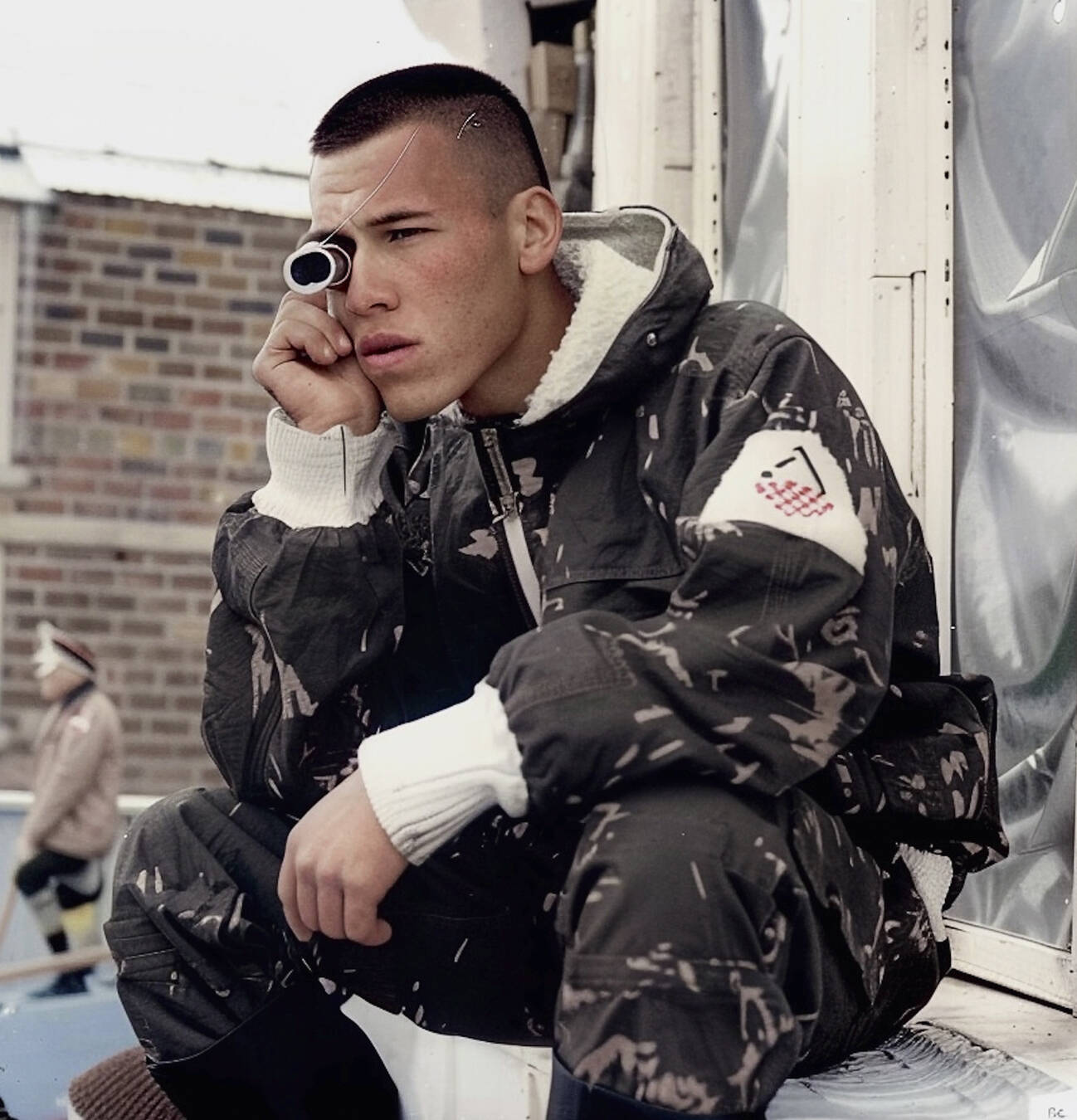 With that track record, it’s small wonder he’s embraced the bleeding edge of tech. But there’s more. Foxton is also, in his own characteristically modest words, a bit “workshy”. While the sheer glut of imagery he’s created suggests otherwise, there’s something to be said about his efficiency as an artist. For context, he graduated from the Saint Martins Fashion BA in 1983 before moving on to co-run the clubwear brand Bazooka – a sporty, zesty label stocked in Joseph, as well as Kensington Market, where he shared a stall next to Leigh Bowery. Soon tired of the laborious process of designing, ordering fabrics, producing and showing clothes, Foxton discovered that styling offered a quicker means of sharing his ideas. “Now, AI is quicker than styling,” he says.
