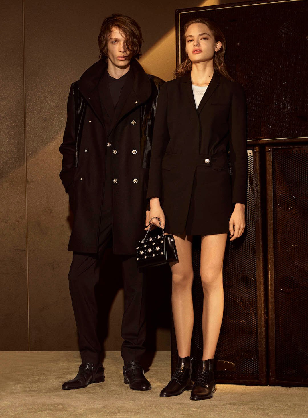 My mind wandering as it tends to on a Tuesday afternoon, I decide to Google my daily horoscope. I’ve been reading a lot about moon cycles of late, you see. Today, I am told, is the perfect chance to use my naturally fertile imagination. I should turn to painting, drawing or other such artistic endeavours. And, I must “be sure to grab any opportunity to weave a fascinating tale for a child.” Now, there are no children in the vicinity (as I like it) so instead, lucky readers, I will weave a tale for you. This story is about a lady and her male friend. They are tough. They cruise the streets of New York, or Berlin, or another such vibracious (vibrant + vivacious) cities with what can only be described as a “no prisoners” attitude to life. Upon their bodies are trench coats, bombers, cargo pants. She wears an occasional mini skirt, he wears a blouson with a fur collar. He can pull off a large leather bumbag. But now – an admission. This is not from my imagination at all. Because what I describe are actually just Anthony Vaccarello’s Versus Versace girls and boys, as evidenced in this sneak peek at his AW16 collection for the Italian house’s naughty little sister. Tough cookies – the “rebellious attitude of Versus Versace: a utilitarian mood for the city streets”, apparently. And, if you needed reassurance, just ask Donatella – “I love people with a strong sense of mind. It’s this toughness that we capture in the new Versus Versace collection – the individual attitude of the new generation,” she says.
