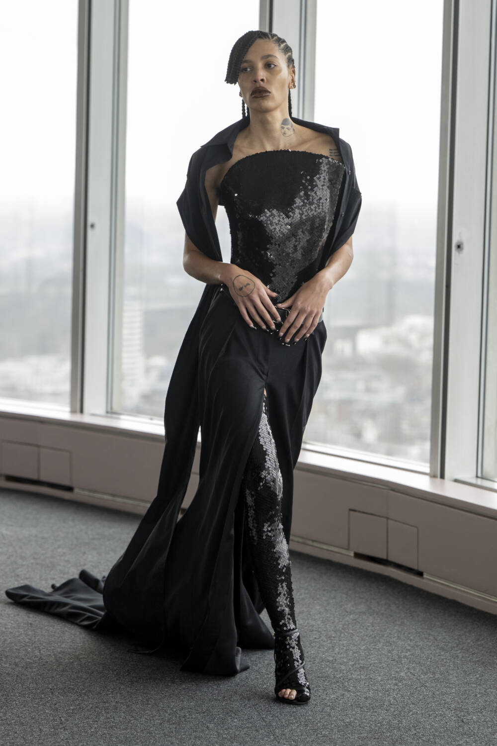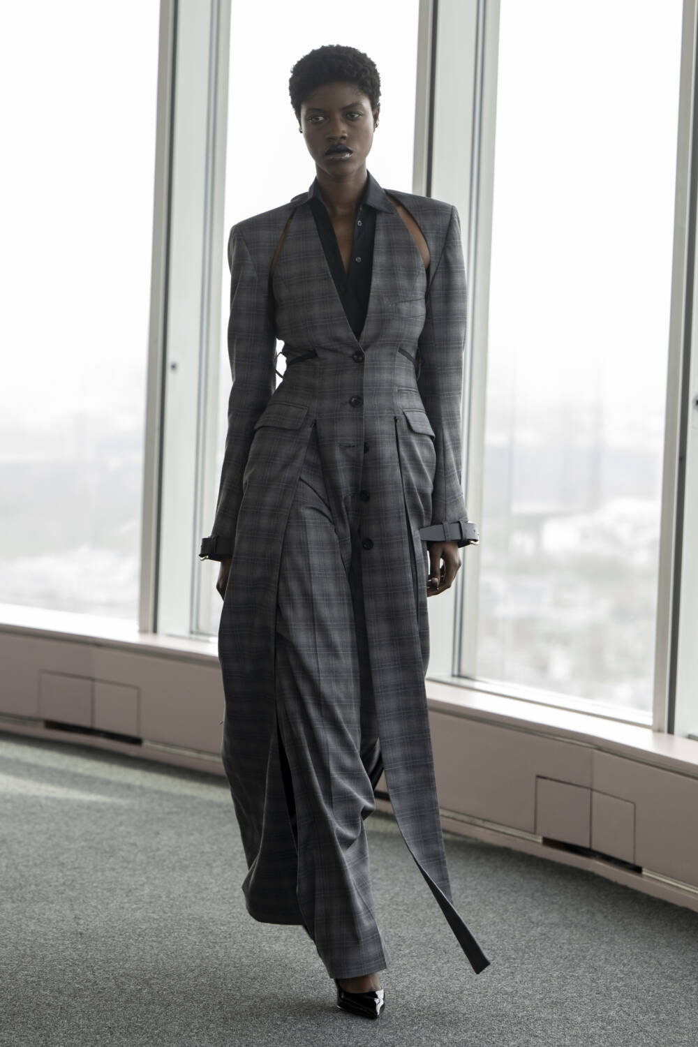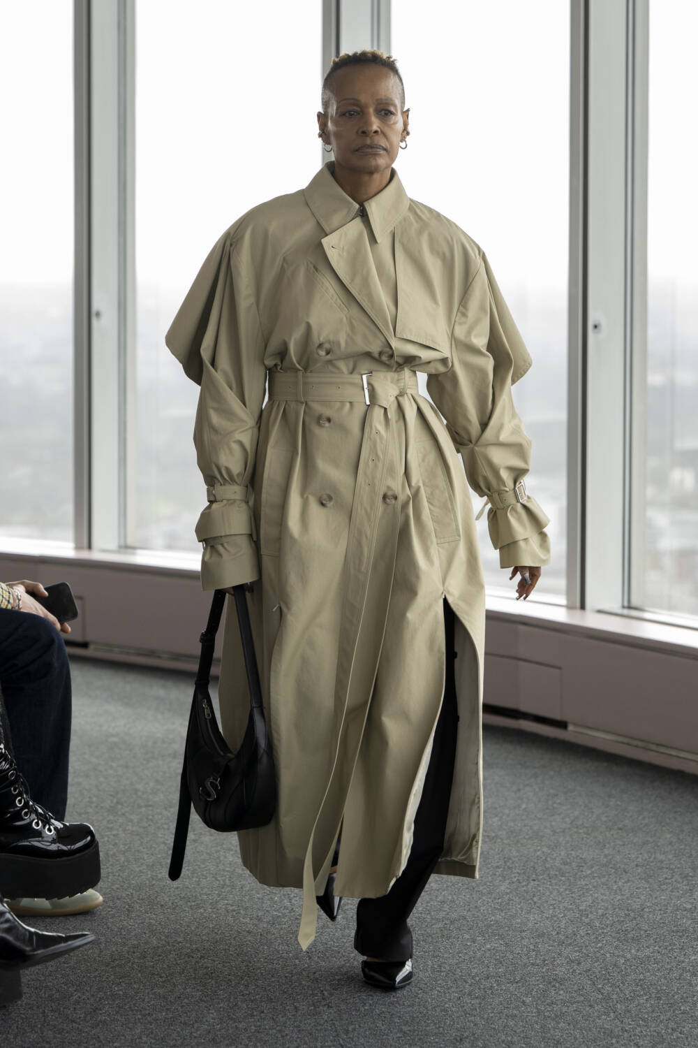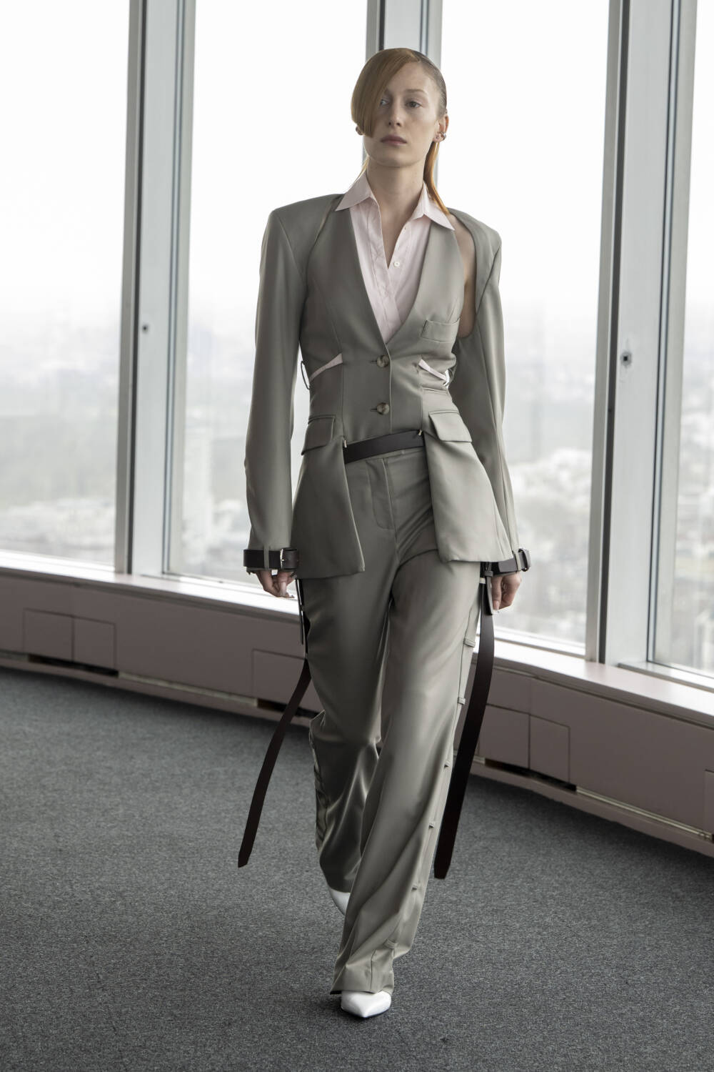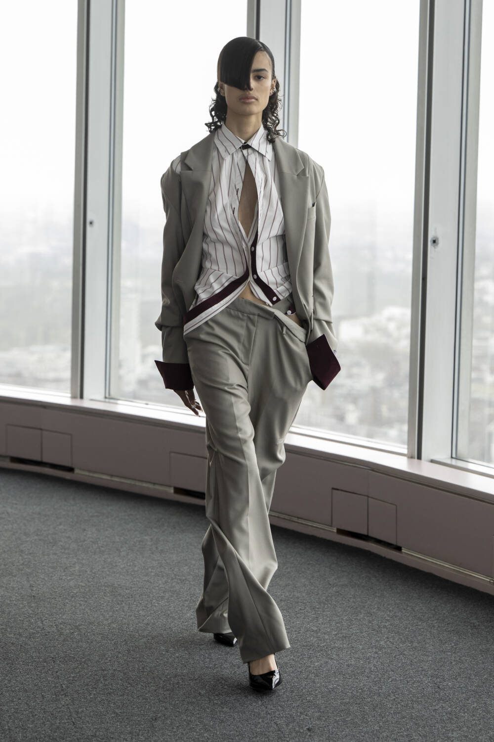 Themed on the idea of clothes as armour, pieces were functional but subversive, encouraging challenge rather than blind acceptance. The cuts felt defiant, with the term “power suit” feeling very apt for the sharply sculpted blazers and trousers that peppered the womenswear. Shirts were constructed from upcycled boxers giving it a masculine edge too. Military knits were cut up and restructured, nodding to adaptability, whilst unexpected graphics like a reimagined Tottenham Hotspur insignia, which instead opted for the phrase “Tottenham Hotgirls”, embraced the idea of community and sisterhood. It was an expressive, powerful and a considered exploration of the power of clothes.