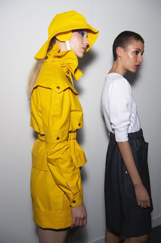 For SS20, the duo continued their collaboration with Matches Fashion, having already shown their past collection at the retailer’s Townhouse on Mount Street during London Fashion Week in February. The venue for this season was the perfect setting for what Symonds Pearmain stand for – reconsidering dress codes of the past with a sense of satire and intelligence. Was this a performance on the Frieze schedule? Or just your regular fashion show? Well, a little bit of both actually. The context of Symonds Pearmain clothes adds depth to the rehashing of the past. 1940s via 1980s in the shape of workwear and uniforms give new life to ideas we would previously dismiss as “girly” or “old fashioned”. Snap buttons created a customisable factor to the garments which came in a whole variety of textiles – wools, denims, canvas and leather were all in the mix. Regardless the artistic intention behind them, these clothes are made to be worn out, rough and ready for the neurotic reality.