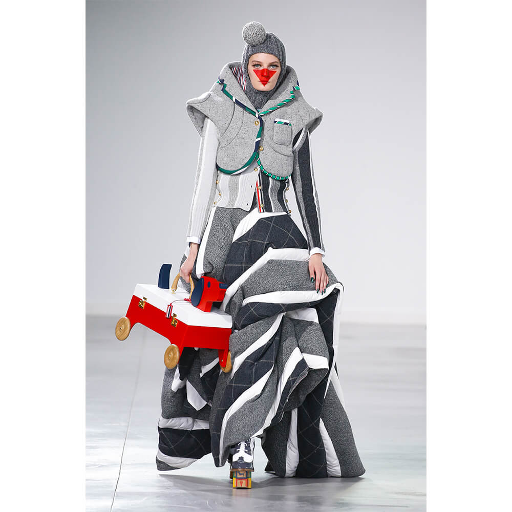 No doubt, Browne is a maven of the immensely conceptual. In fact, since 2001 he has been cementing himself as an expert craftsman adept at challenging and modernising uniforms of the zeitgeist with a deeply-rooted American identity. Choo-choo! It’s time to hop on the Thom Browne train to Toyland!
