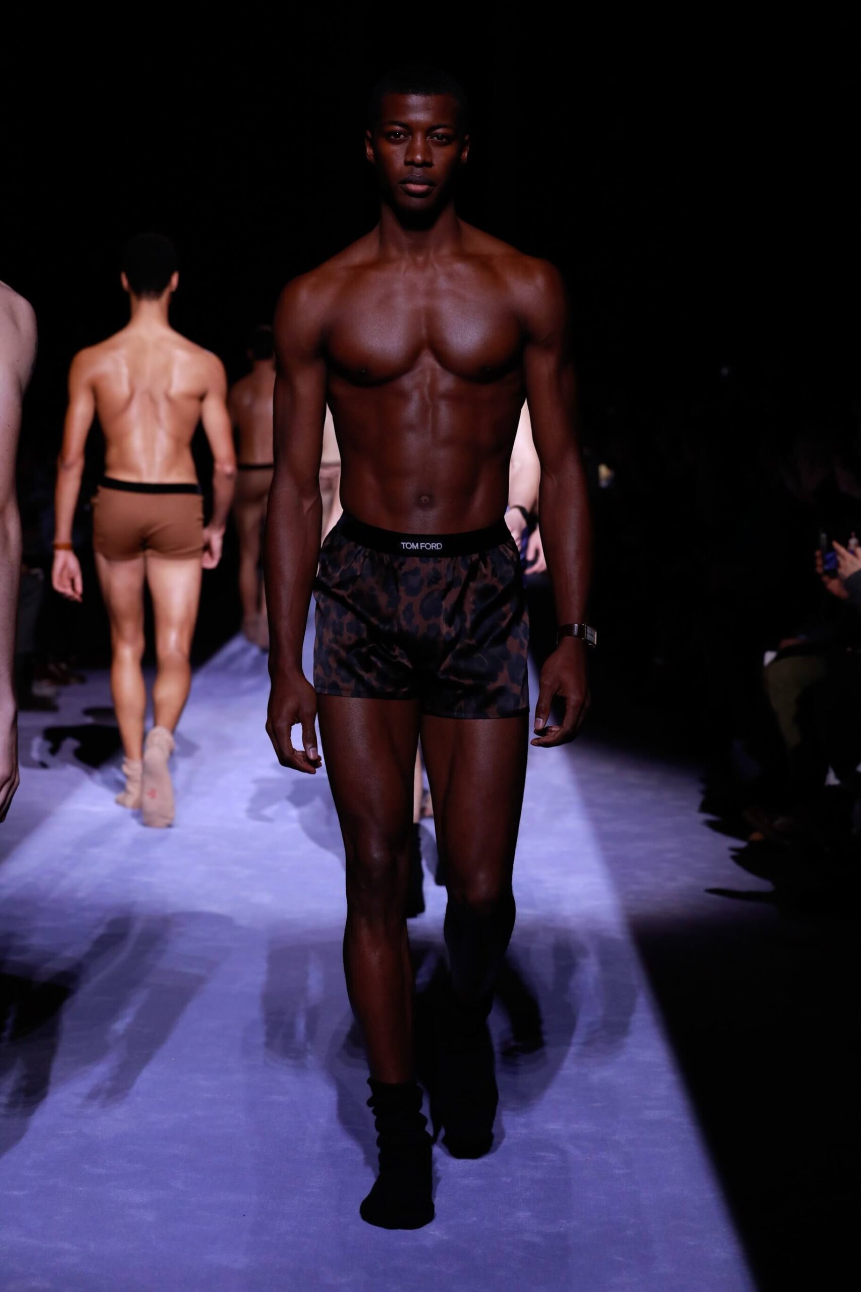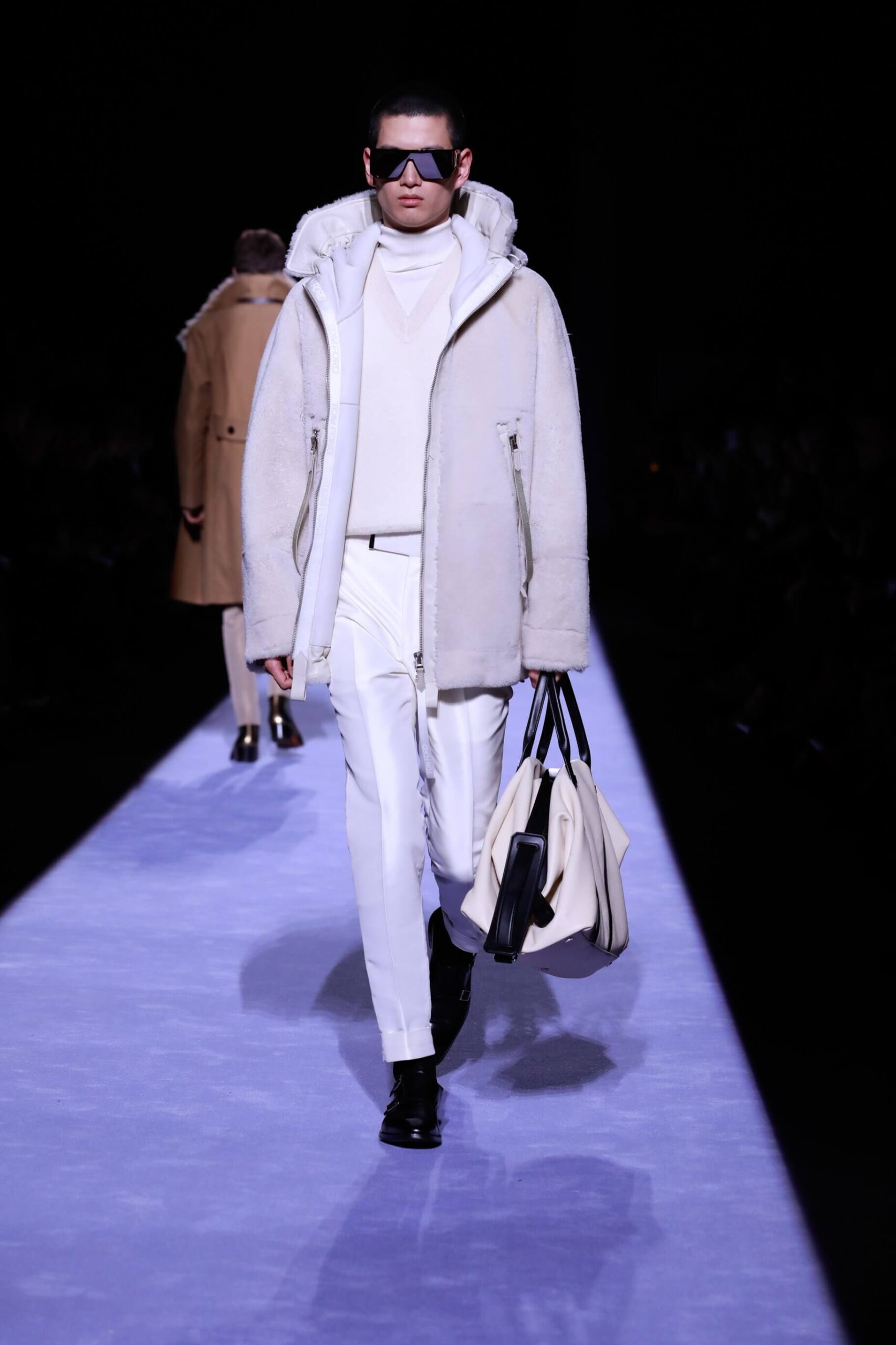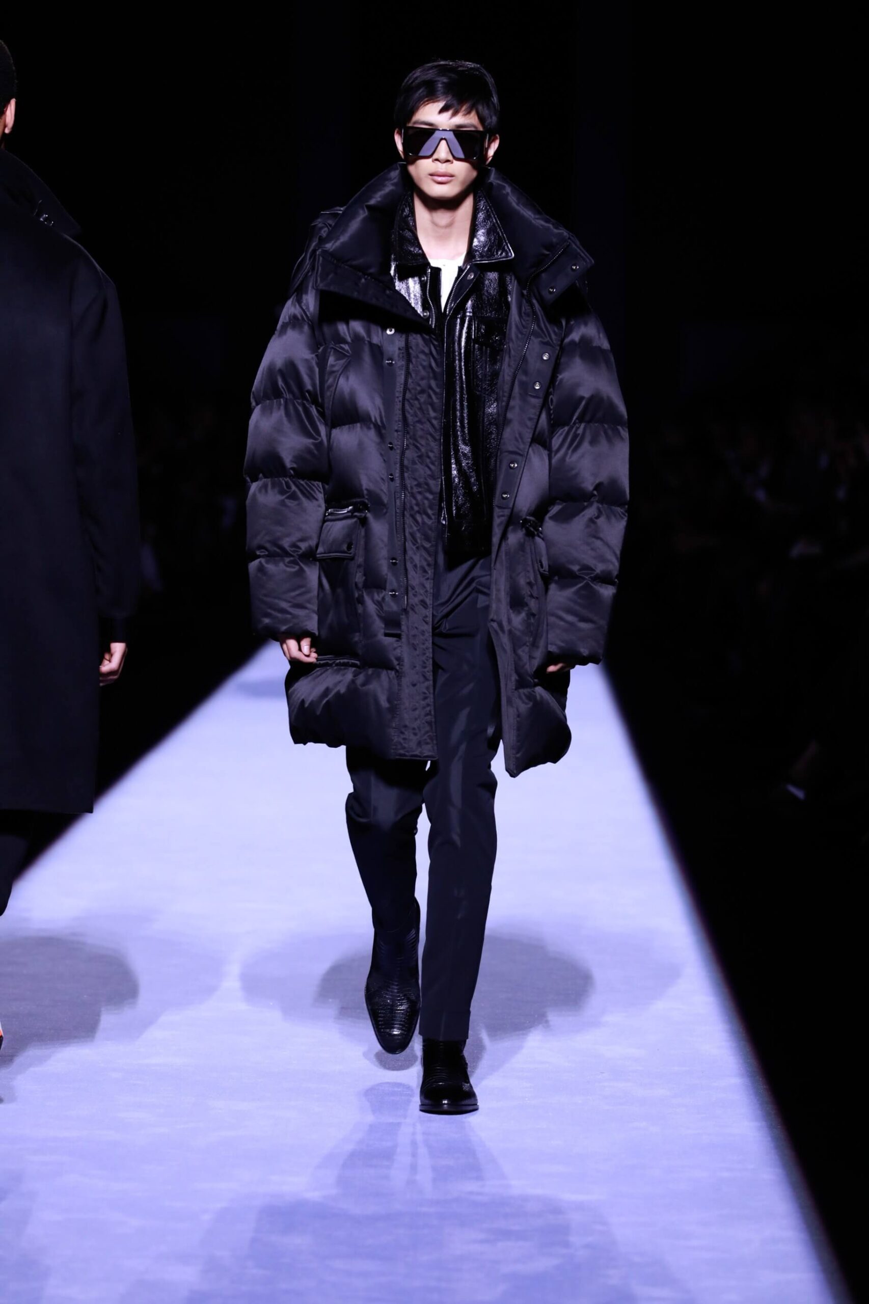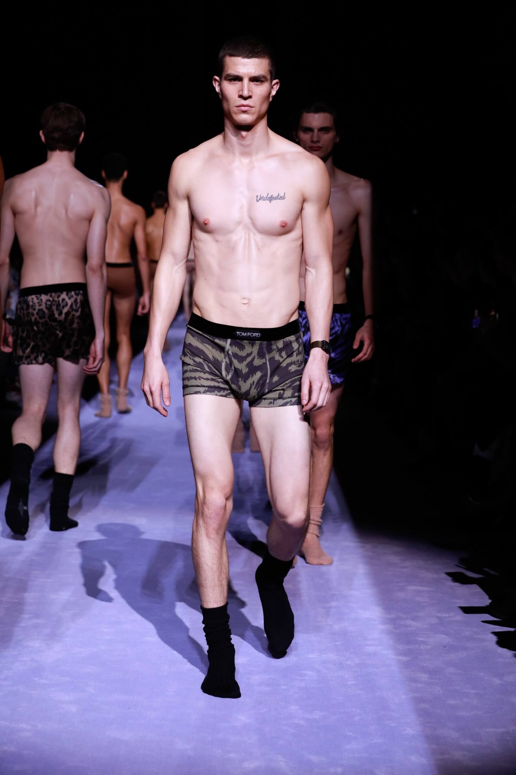 There was lots of python print, because Mr. Ford is oh so sly. And we must also talk about the puffer jackets. You see it’s officially the year of the puffer, cubic space, calling it now. Big coats, fitted suit jackets. The uniform. It was all very noble, even when they were in their underwear. And dayum they looked good. Chiseled to perfection (we’re talking about the underwear, obvs). Tom Ford branded on the waistband briefs is simply the way to go. Matched with rumpled socks. He woke up like this. And then Mr. Ford came down the runway to Lana Del Rey’s Young and Beautiful. Because we will still love the Tom Ford man even when (unlikely as it is) he’s no longer young and beautiful. As long as he’s wearing a whole lot of this. It was simply, fastidiously Tom Ford. Crisp. Now for the womenswear later this week.