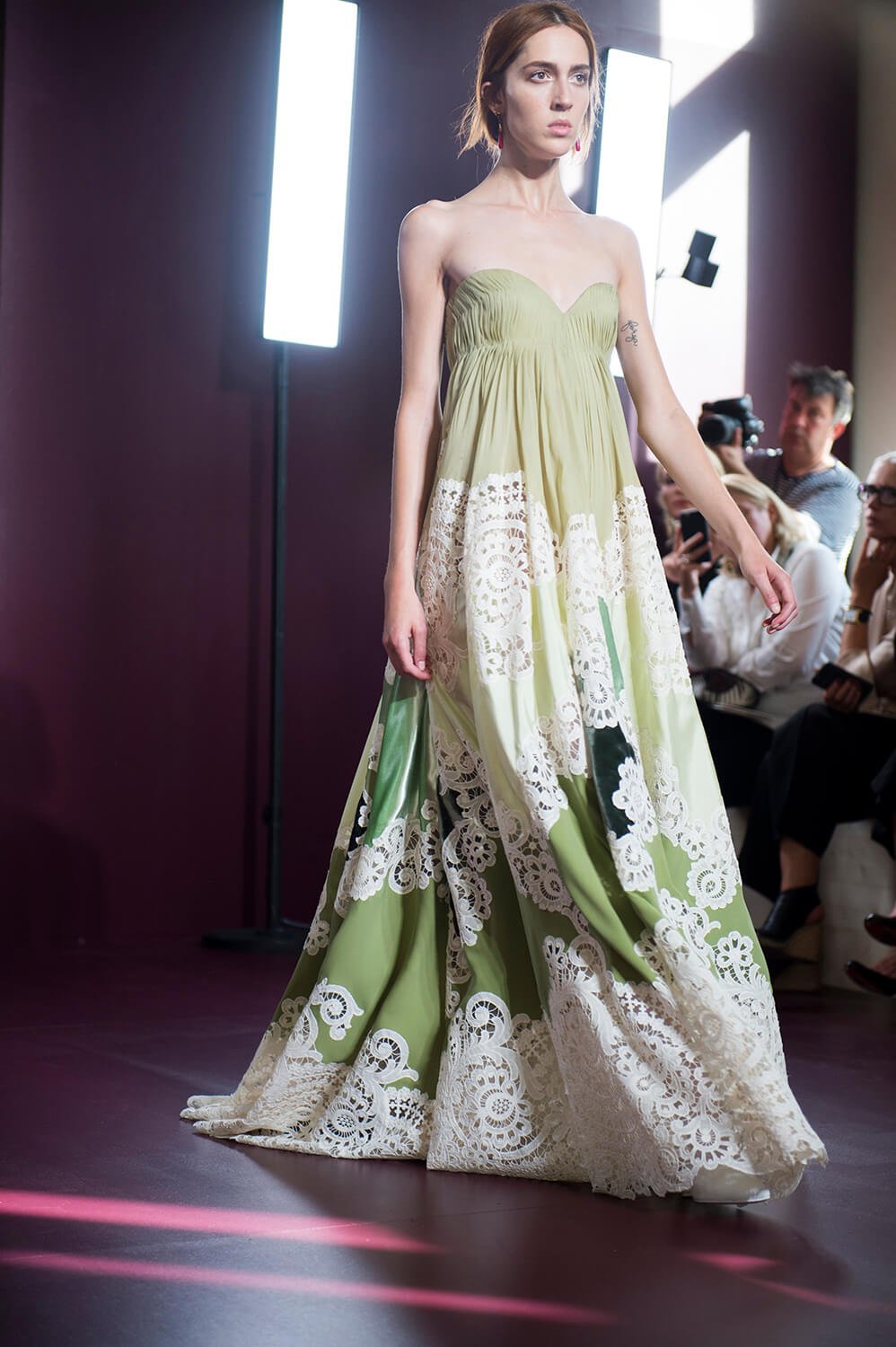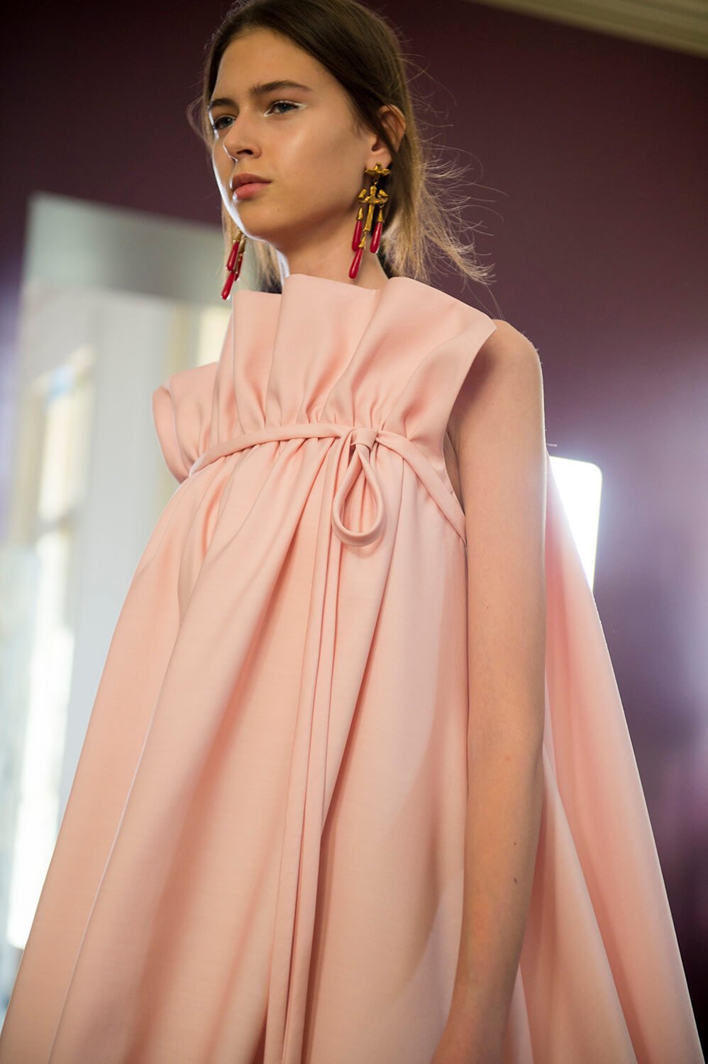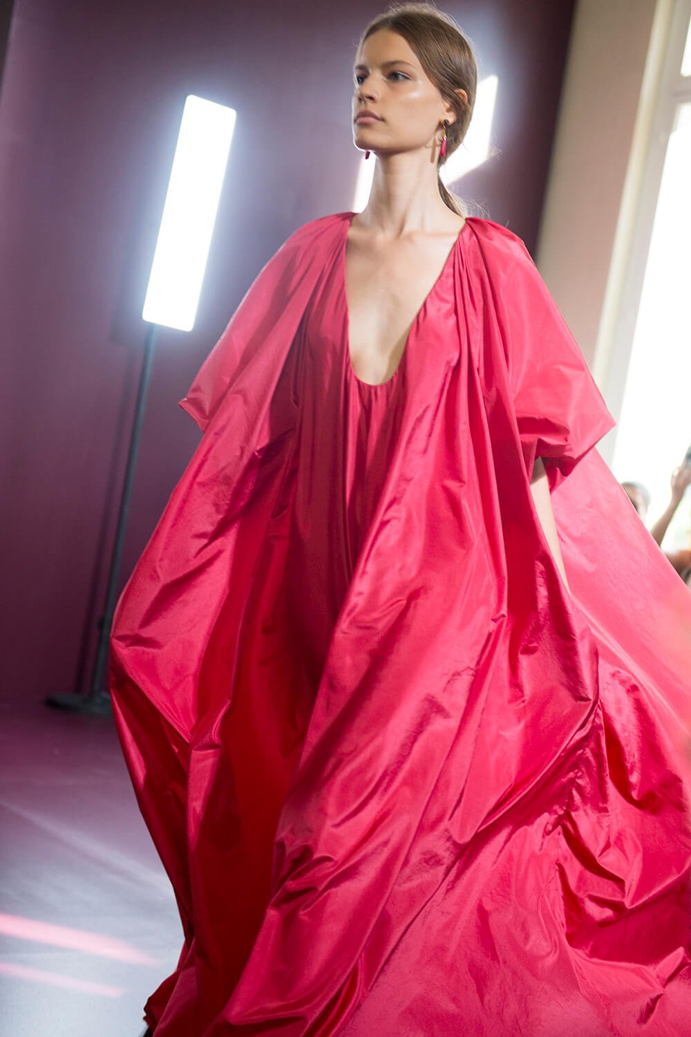 Those animals, according to the release, stood for the seven vices, or sins – but, as Piccioli said, this was about those animals representing something opposite, something curative. Instead of sloth, it was resurrection – instead of greed, the capacity to see through deception. It speaks of a designer who works through his own emotion – an emotion that seeps into his clothes – closing with a parade of spectacular gowns that fell away into ruffles or billowed out behind the model’s and at the sleeves. Those final dresses prompted well deserved applause – more so when Pierpaolo took to the runway for a bow. He’s a designer on a high.