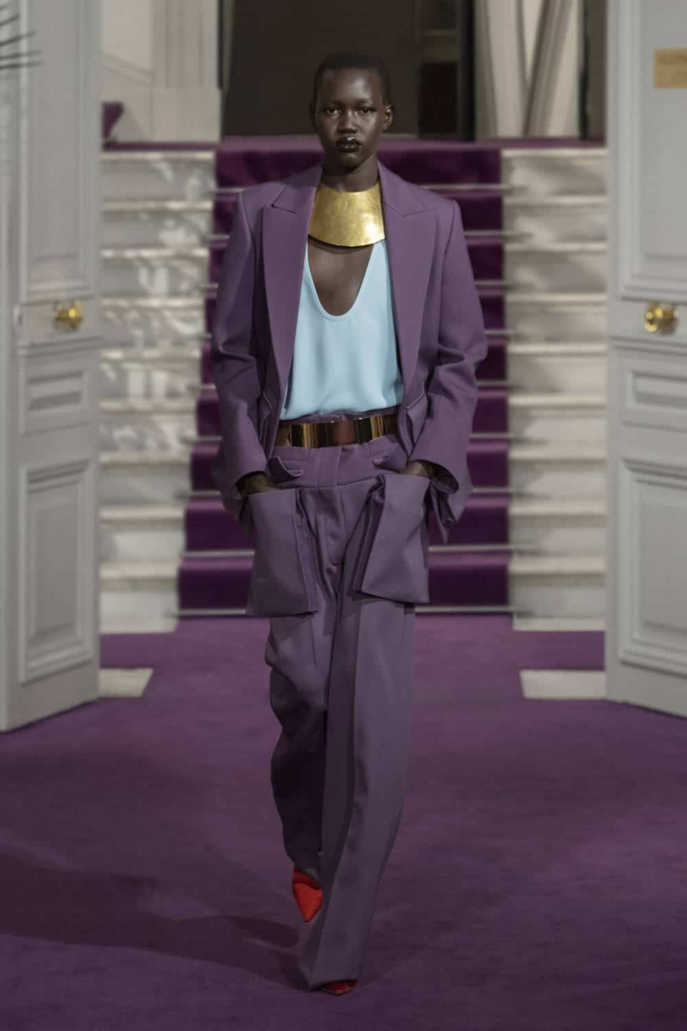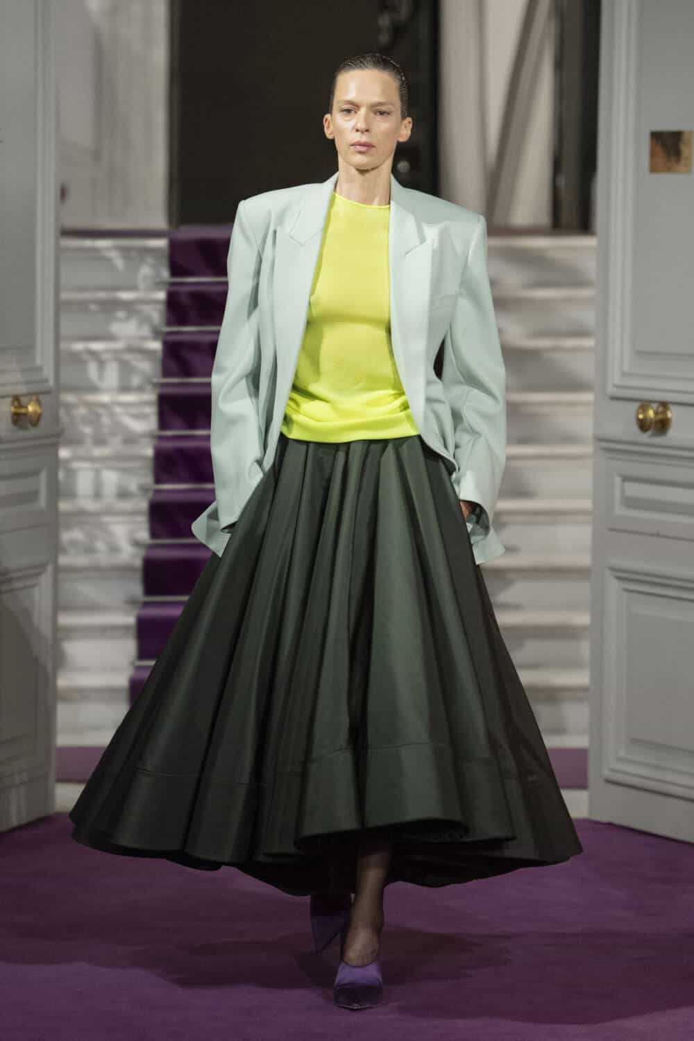The maison’s trusted couture clients will undoubtedly be drawn to the collection’s boxy parkas and swing skirt combinations, alongside the high-waisted trousers, relaxed suit jackets and vests with scooped necklines. Where Piccioli thrives is his ability to collide understated elegance with serious show-stopping power. Think floor-sweeping capes made from a bed of silk roses, and opulent skirts and coats that, at a glance, looked tinsel-like yet were actually crafted from strands of metal. It made for a dazzling highlight amongst this season’s couture shows.