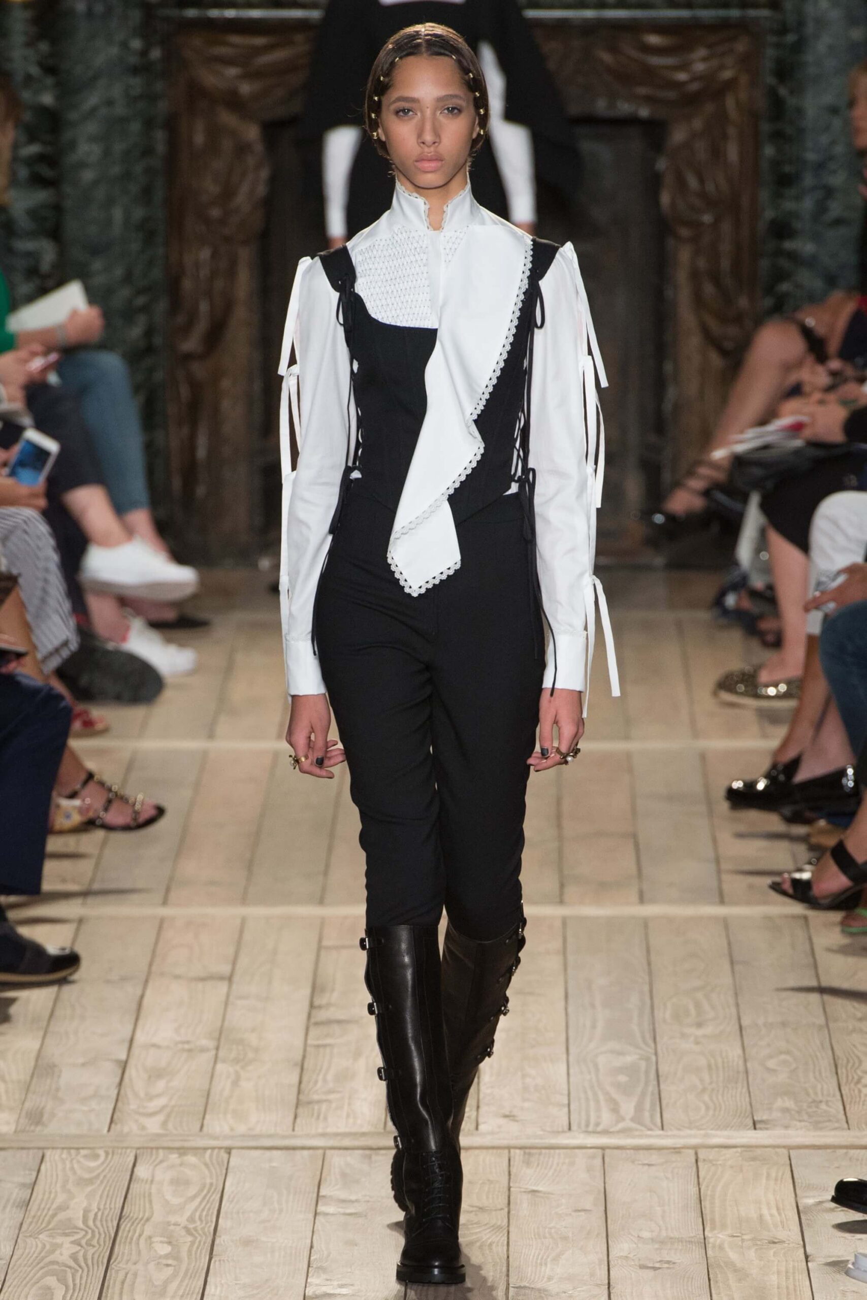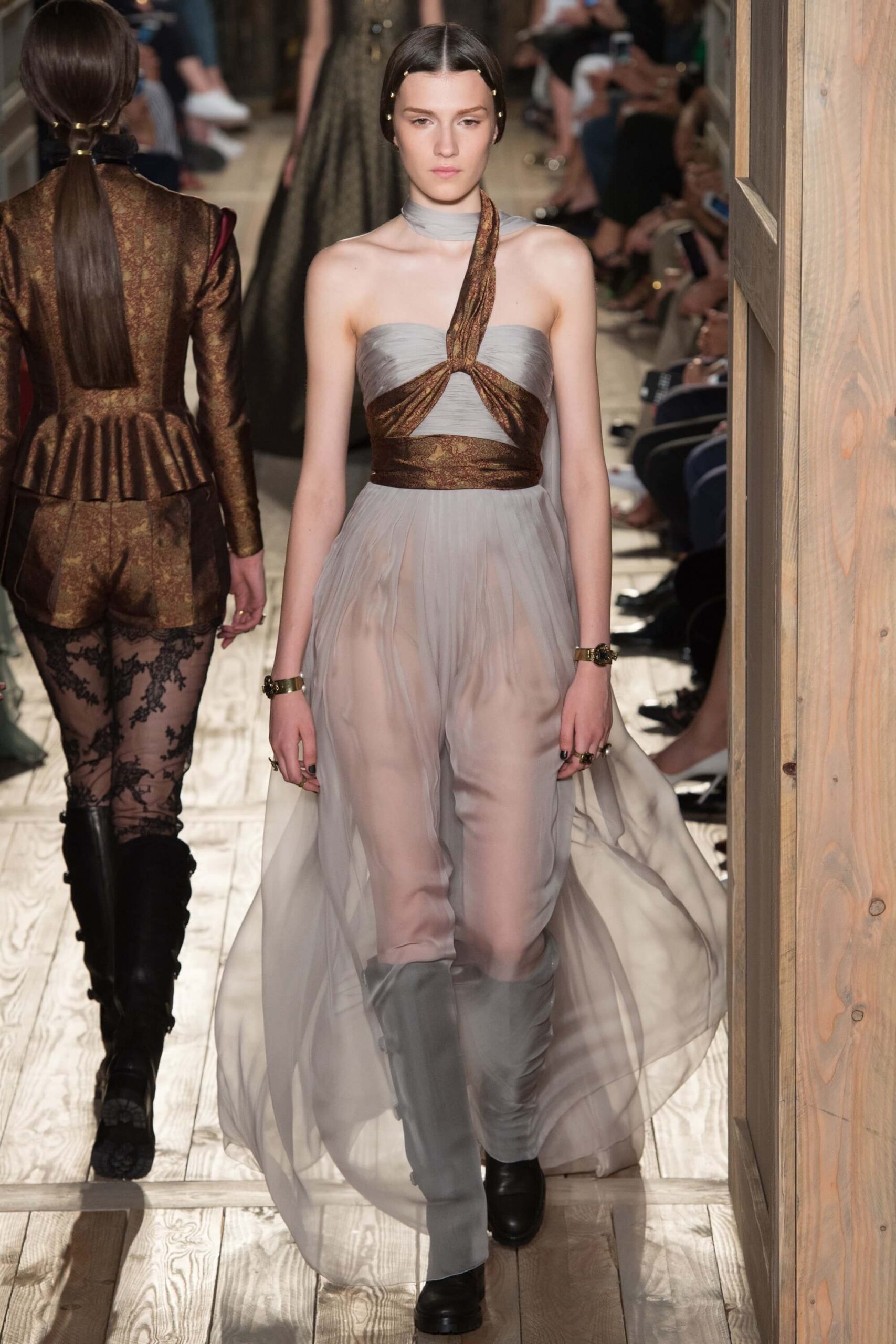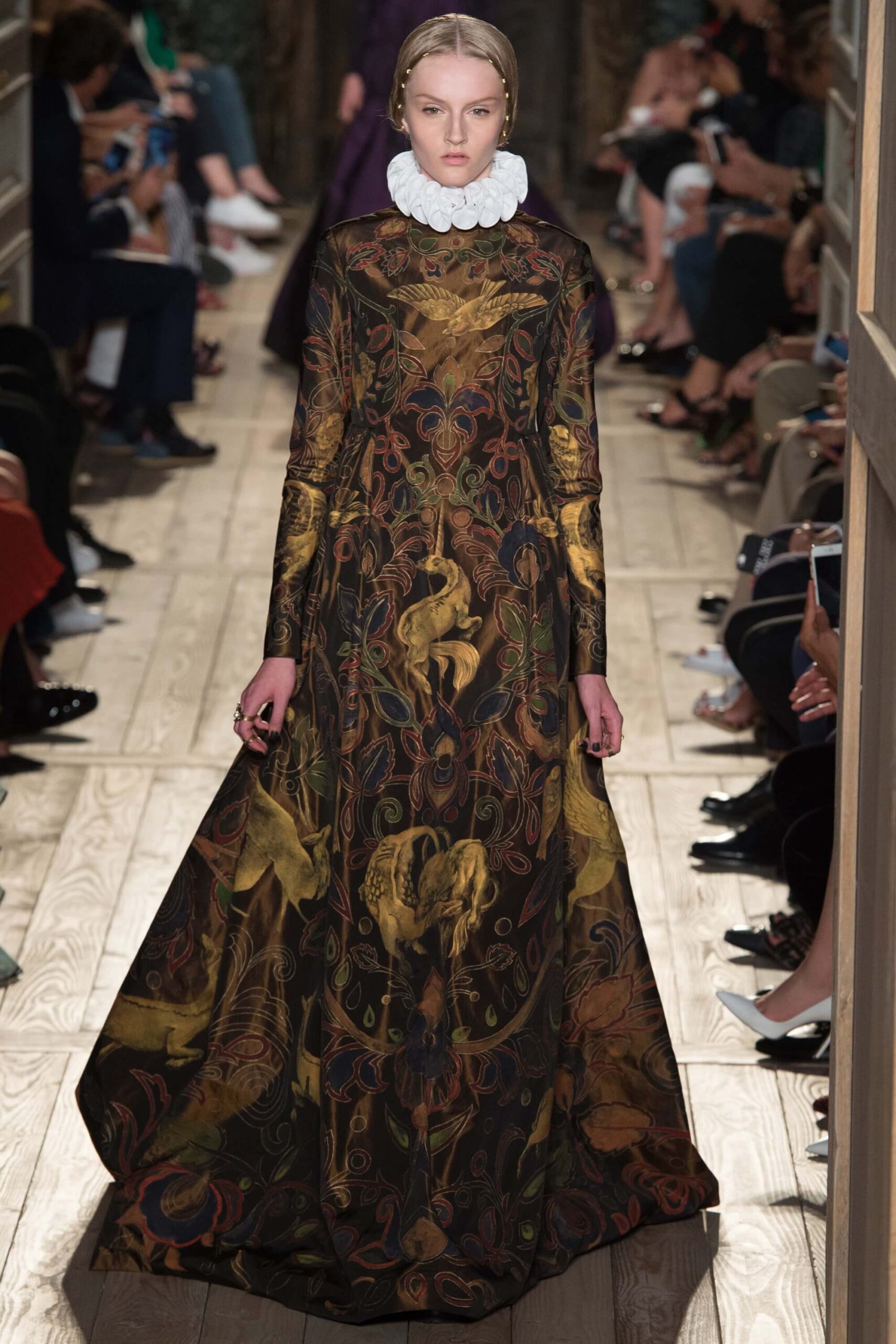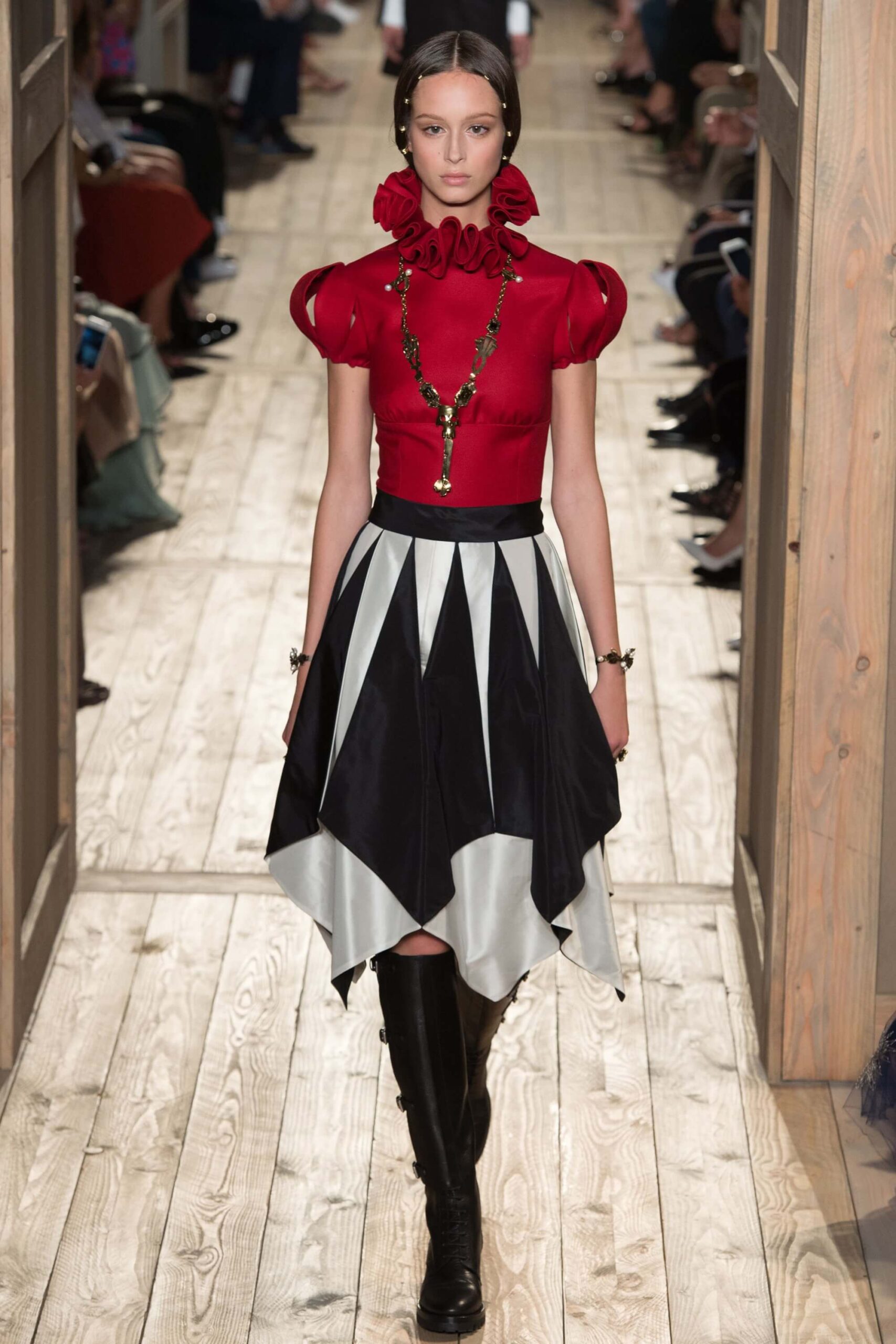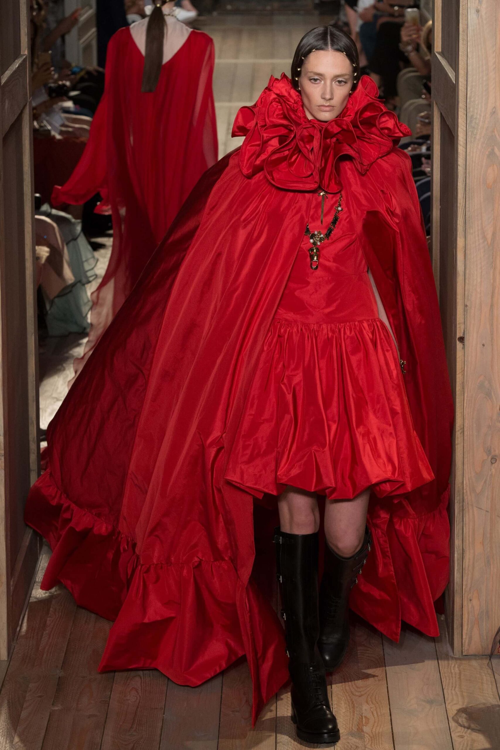 Lady in red. That’s how we’d describe Valentino’s latest couture offering. Well, not just red, but put it this way – red was the take home. I mean, we’re personally struggling to see past the little red riding hood cloak and ruffle look. Suitable attire for a swift swish off on the Eurostar tomorrow? Anyway, red is dramatic. Red says grandeur. And, their latest couture offering was just those two things – a romantic flight through the world of Shakespeare (his capacity to “penetrate the human spirit,” apparently), transformed by the Pierpaolo Piccioli and Maria Grazia Chiuri into a modern day opus of luxury and craftsmanship. But as well as the Shakespeare stuff, there was a touch of English-ness that weaved it’s way through the whole thing – grandiose Elizabethan ruffles that sat on the neck, a touch of the Union Jack stitched into a jacket, black punk-ish boots. Safe to say we left satisfied. With that, we’re at the end of Haute Couture week. And, if that strong sniff of rumour is to be believed, it will also be Maria’s final couture collective at Valentino, before becoming Creative Director of Dior. Adieu Paris. Couture week is done. Curtain down.