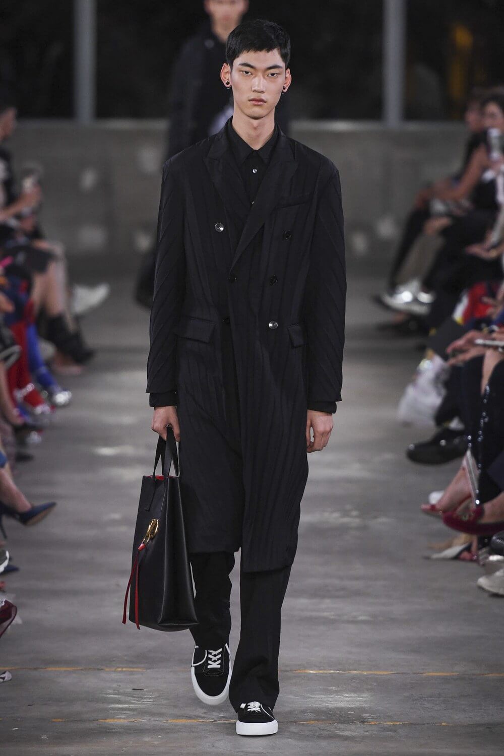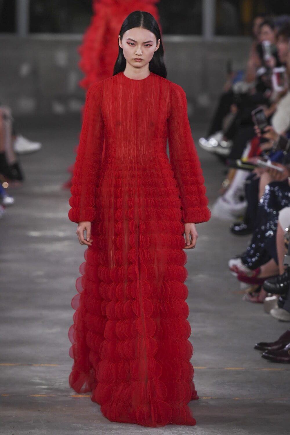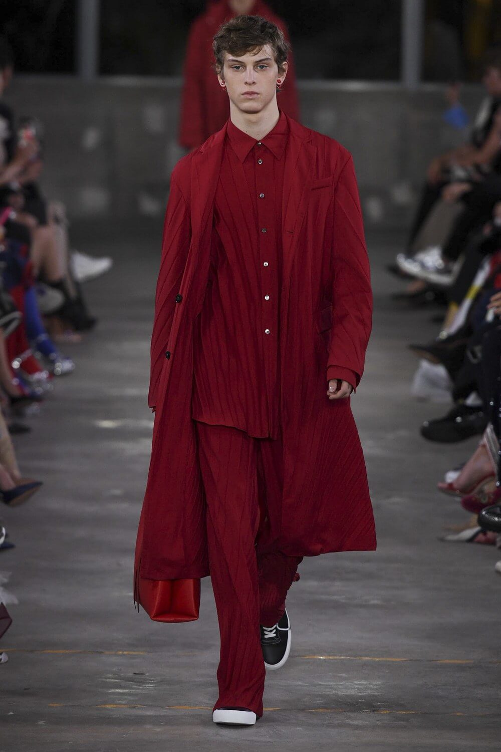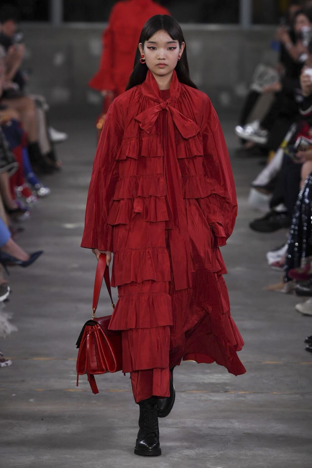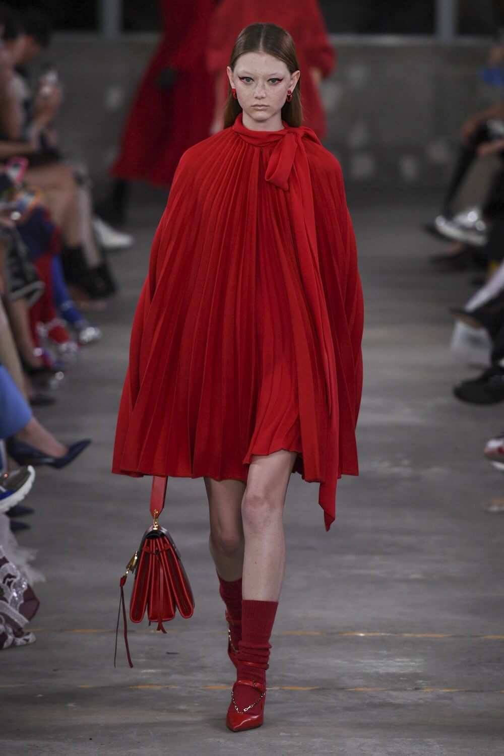 Today, it was Pierpaolo Piccioli’s turn as he opened the season of Pre-Fall 2019 destination shows with Maison Valentino in one of Tokyo’s many concrete constructions. Perfectly measured in his exuberance, Piccioli took inspiration from the mindset of wabi-sabi in an acceptance of imperfection and creating a form of ever-evolving beauty. Between recreating classic shapes of Maison Valentino in both men’s and womenswear departments in a fresh way, the looks delicately paid homage to Japan’s fashion heritage. The show opened with a set of exits in the perfect shade of carmine red, which later escalated into black, white and then back into a richer, spicier hue of red – without losing the sight of Maison Valentino, this collection looked perfectly in tune with its setting. As Kaia Gerber closed the show in a ruffled gown of crimson organza, the tone for Pre-Fall 2019 was set – a subdued sensibility of luxury is the way to go.