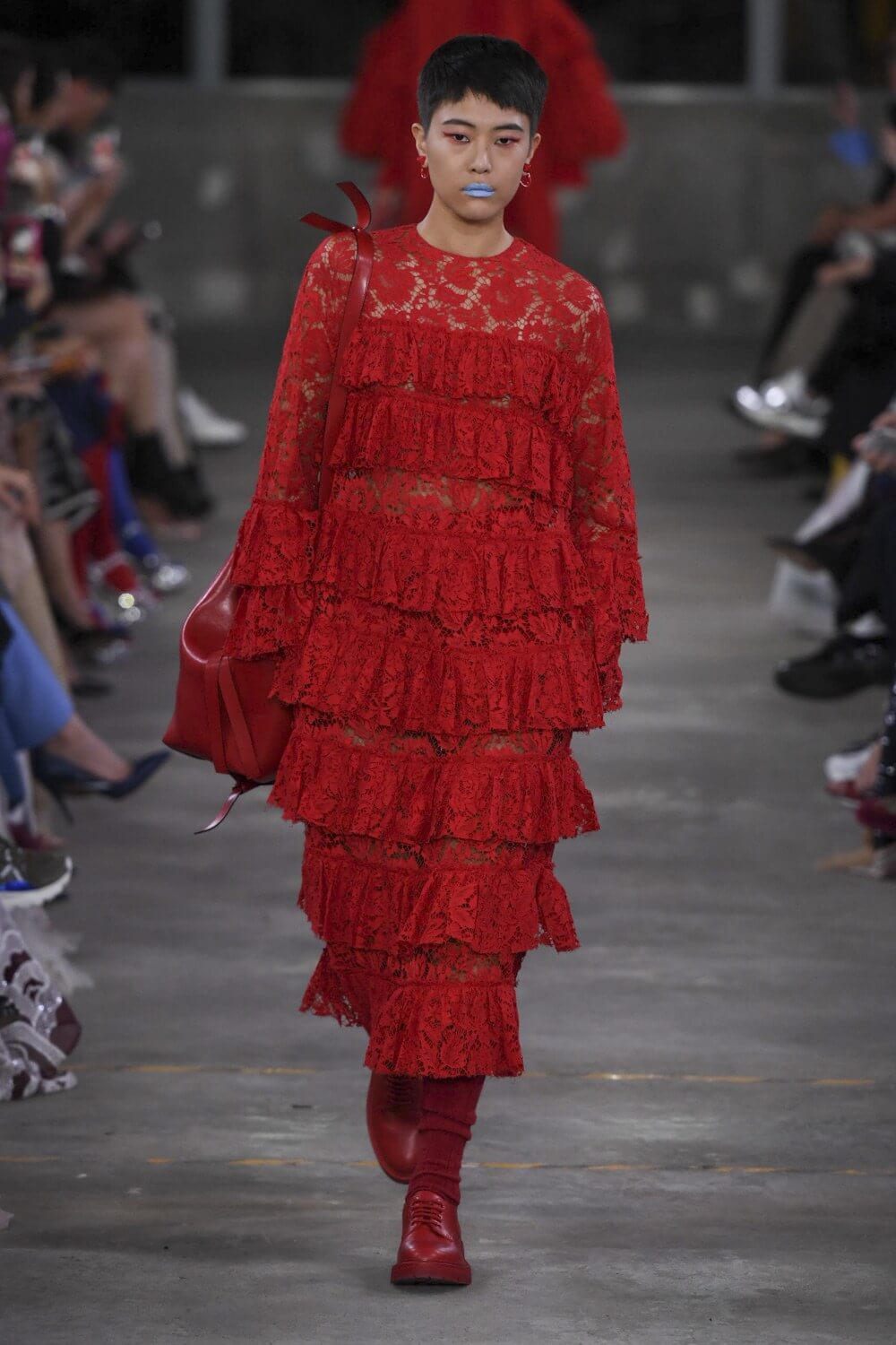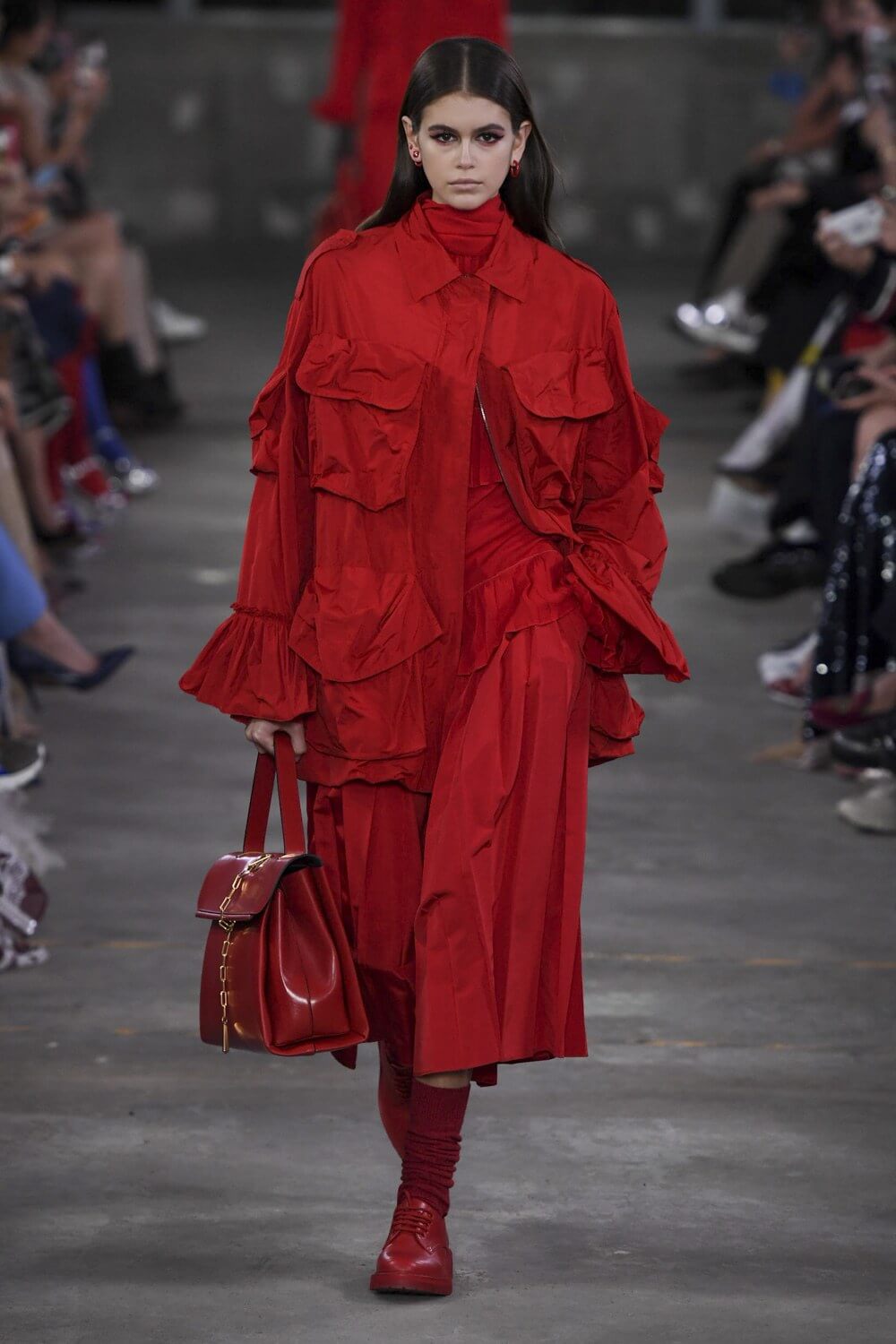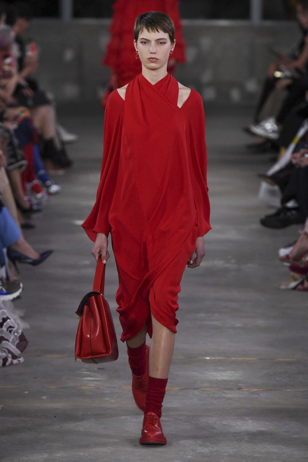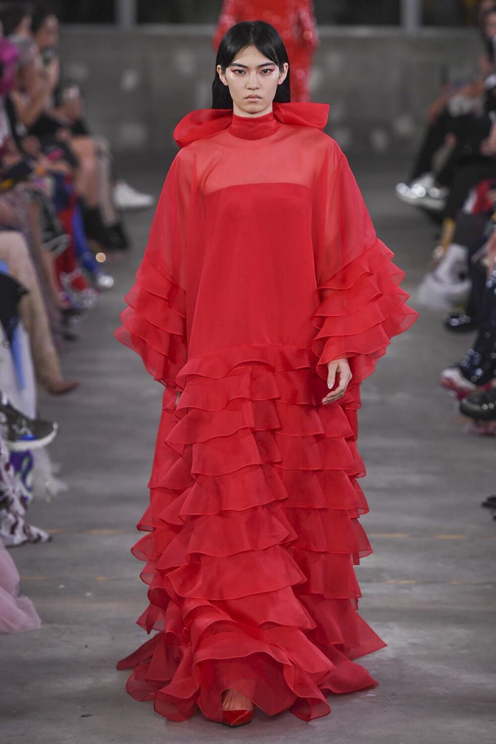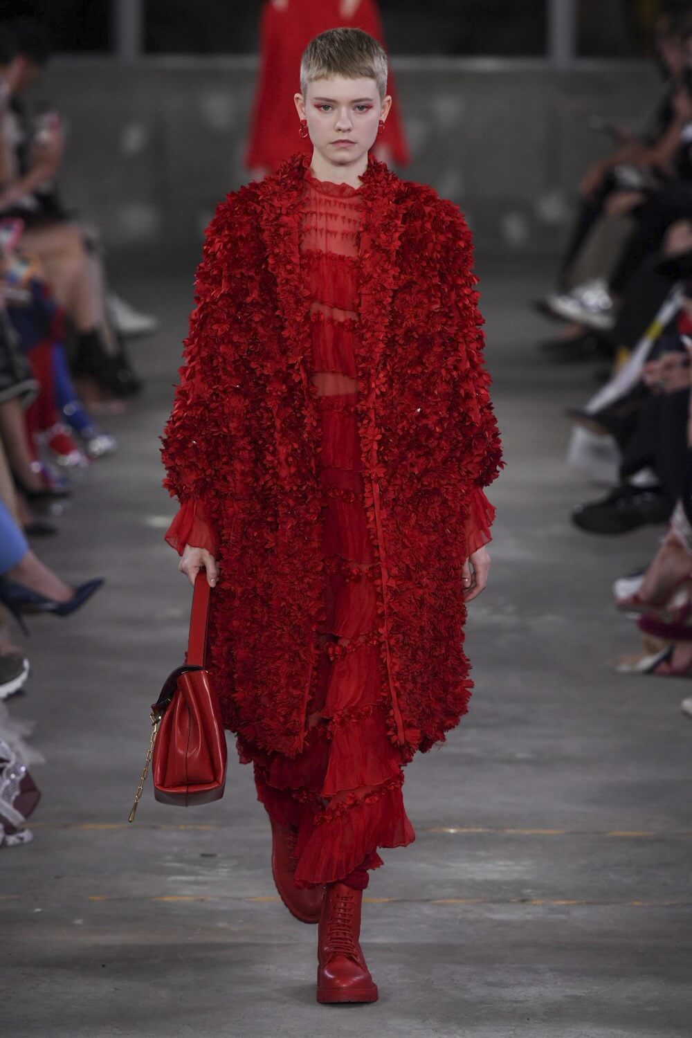 Today, it was Pierpaolo Piccioli’s turn as he opened the season of Pre-Fall 2019 destination shows with Maison Valentino in one of Tokyo’s many concrete constructions. Perfectly measured in his exuberance, Piccioli took inspiration from the mindset of wabi-sabi in an acceptance of imperfection and creating a form of ever-evolving beauty. Between recreating classic shapes of Maison Valentino in both men’s and womenswear departments in a fresh way, the looks delicately paid homage to Japan’s fashion heritage. The show opened with a set of exits in the perfect shade of carmine red, which later escalated into black, white and then back into a richer, spicier hue of red – without losing the sight of Maison Valentino, this collection looked perfectly in tune with its setting. As Kaia Gerber closed the show in a ruffled gown of crimson organza, the tone for Pre-Fall 2019 was set – a subdued sensibility of luxury is the way to go.