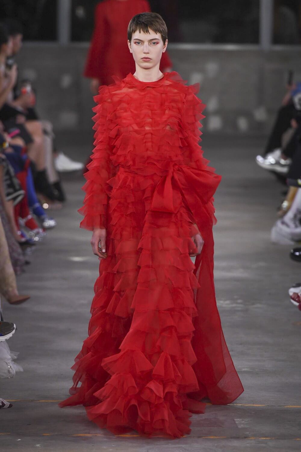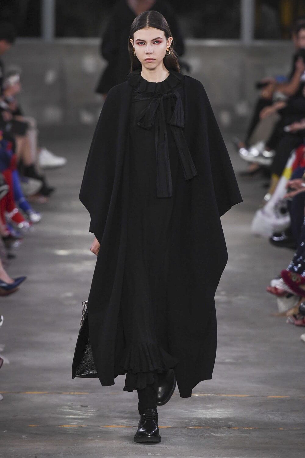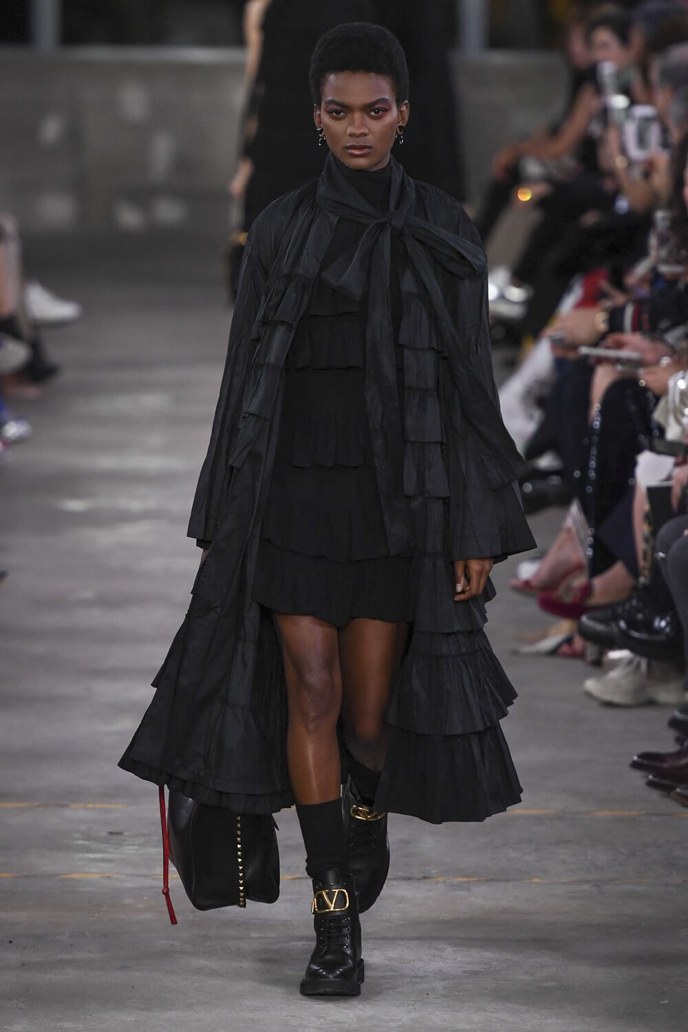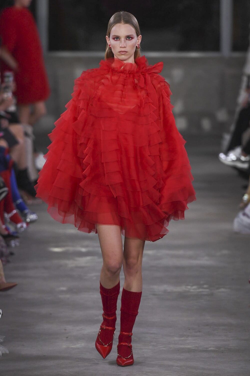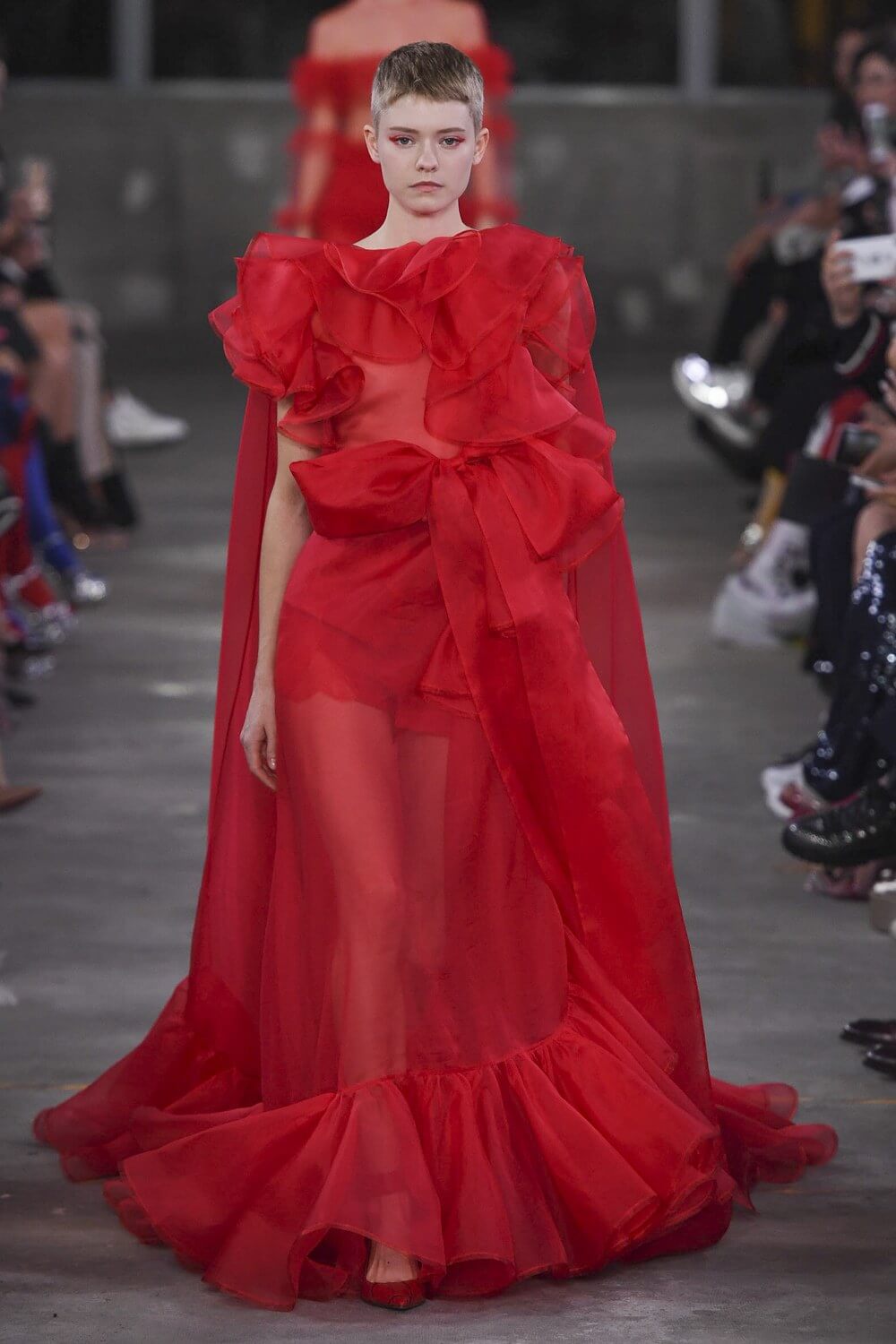 Today, it was Pierpaolo Piccioli’s turn as he opened the season of Pre-Fall 2019 destination shows with Maison Valentino in one of Tokyo’s many concrete constructions. Perfectly measured in his exuberance, Piccioli took inspiration from the mindset of wabi-sabi in an acceptance of imperfection and creating a form of ever-evolving beauty. Between recreating classic shapes of Maison Valentino in both men’s and womenswear departments in a fresh way, the looks delicately paid homage to Japan’s fashion heritage. The show opened with a set of exits in the perfect shade of carmine red, which later escalated into black, white and then back into a richer, spicier hue of red – without losing the sight of Maison Valentino, this collection looked perfectly in tune with its setting. As Kaia Gerber closed the show in a ruffled gown of crimson organza, the tone for Pre-Fall 2019 was set – a subdued sensibility of luxury is the way to go.