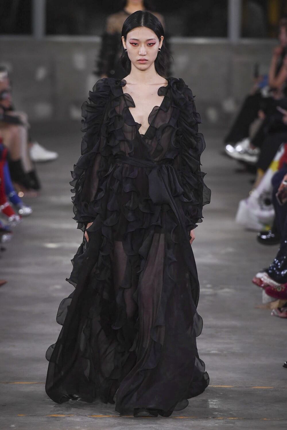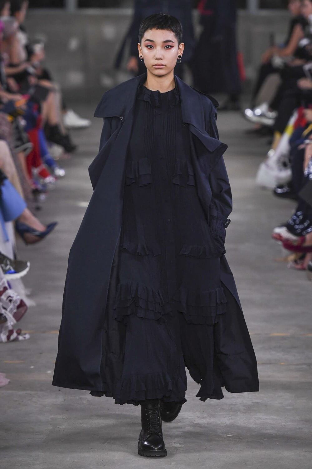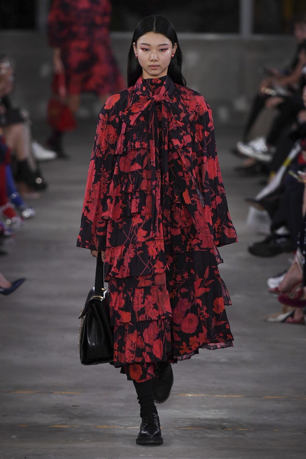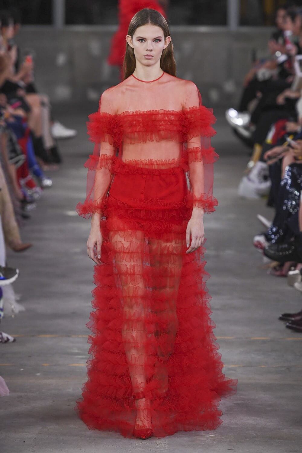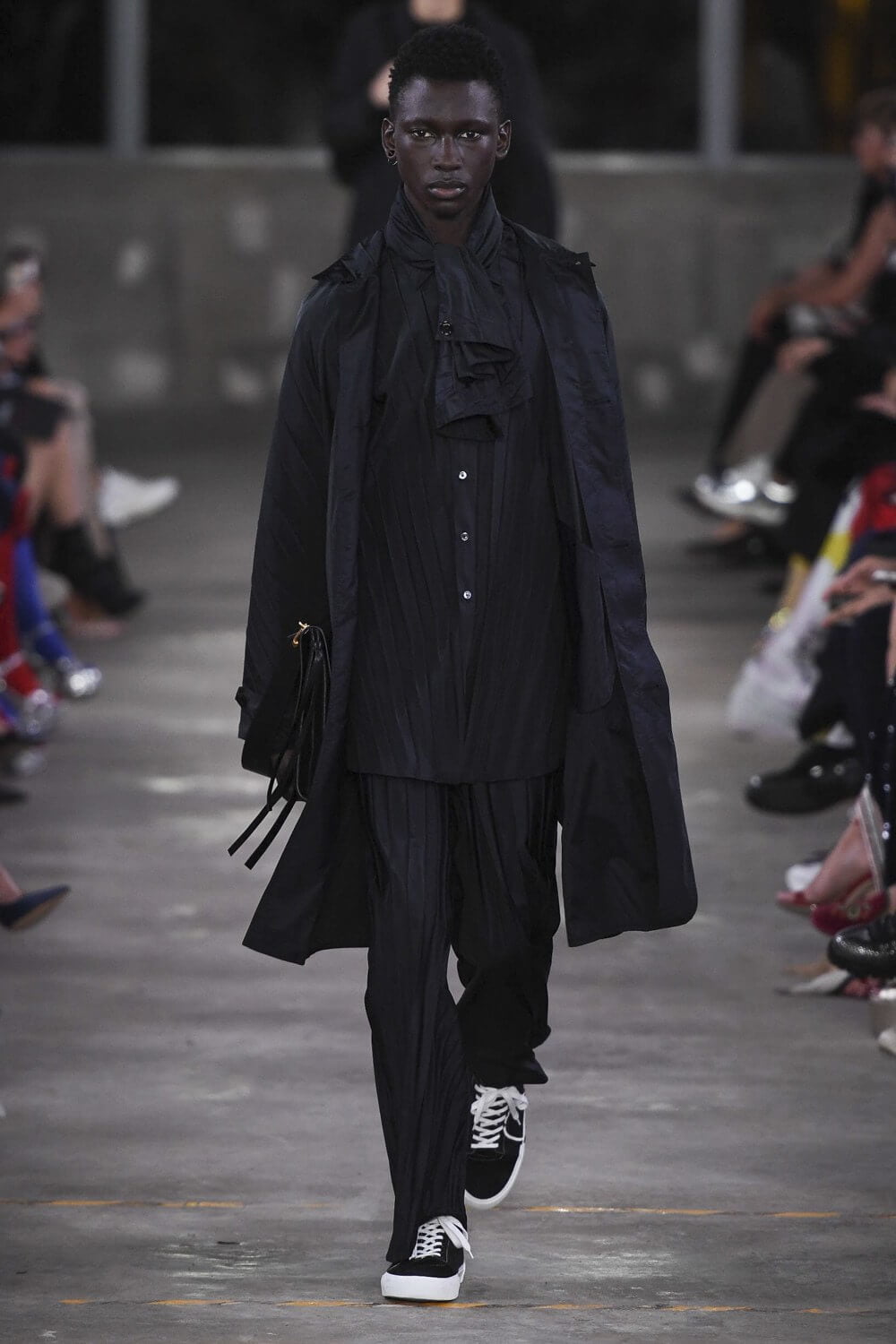 Today, it was Pierpaolo Piccioli’s turn as he opened the season of Pre-Fall 2019 destination shows with Maison Valentino in one of Tokyo’s many concrete constructions. Perfectly measured in his exuberance, Piccioli took inspiration from the mindset of wabi-sabi in an acceptance of imperfection and creating a form of ever-evolving beauty. Between recreating classic shapes of Maison Valentino in both men’s and womenswear departments in a fresh way, the looks delicately paid homage to Japan’s fashion heritage. The show opened with a set of exits in the perfect shade of carmine red, which later escalated into black, white and then back into a richer, spicier hue of red – without losing the sight of Maison Valentino, this collection looked perfectly in tune with its setting. As Kaia Gerber closed the show in a ruffled gown of crimson organza, the tone for Pre-Fall 2019 was set – a subdued sensibility of luxury is the way to go.