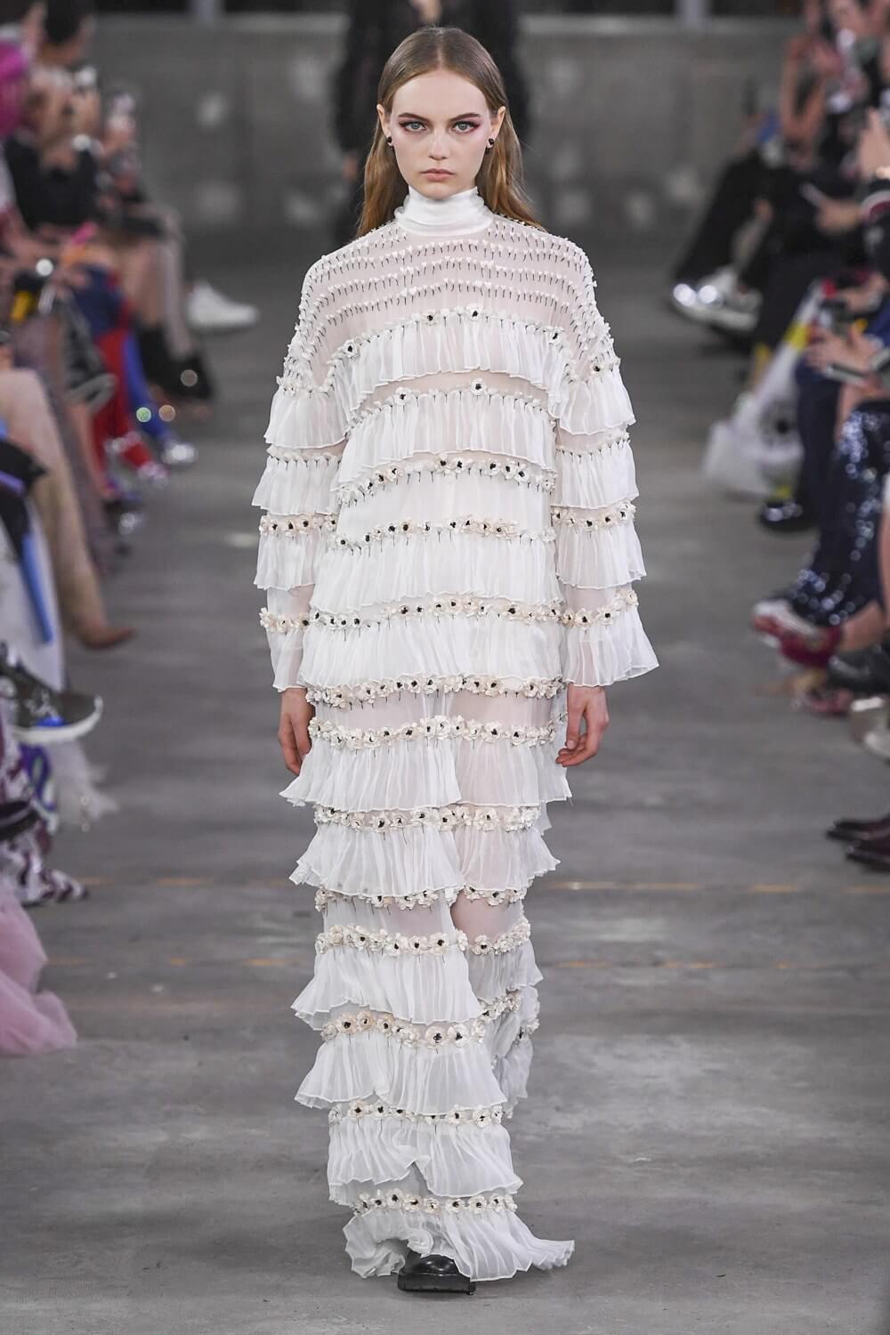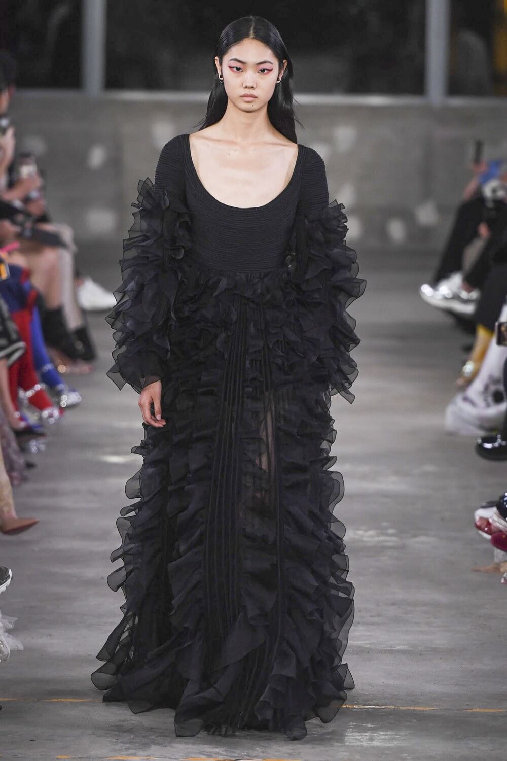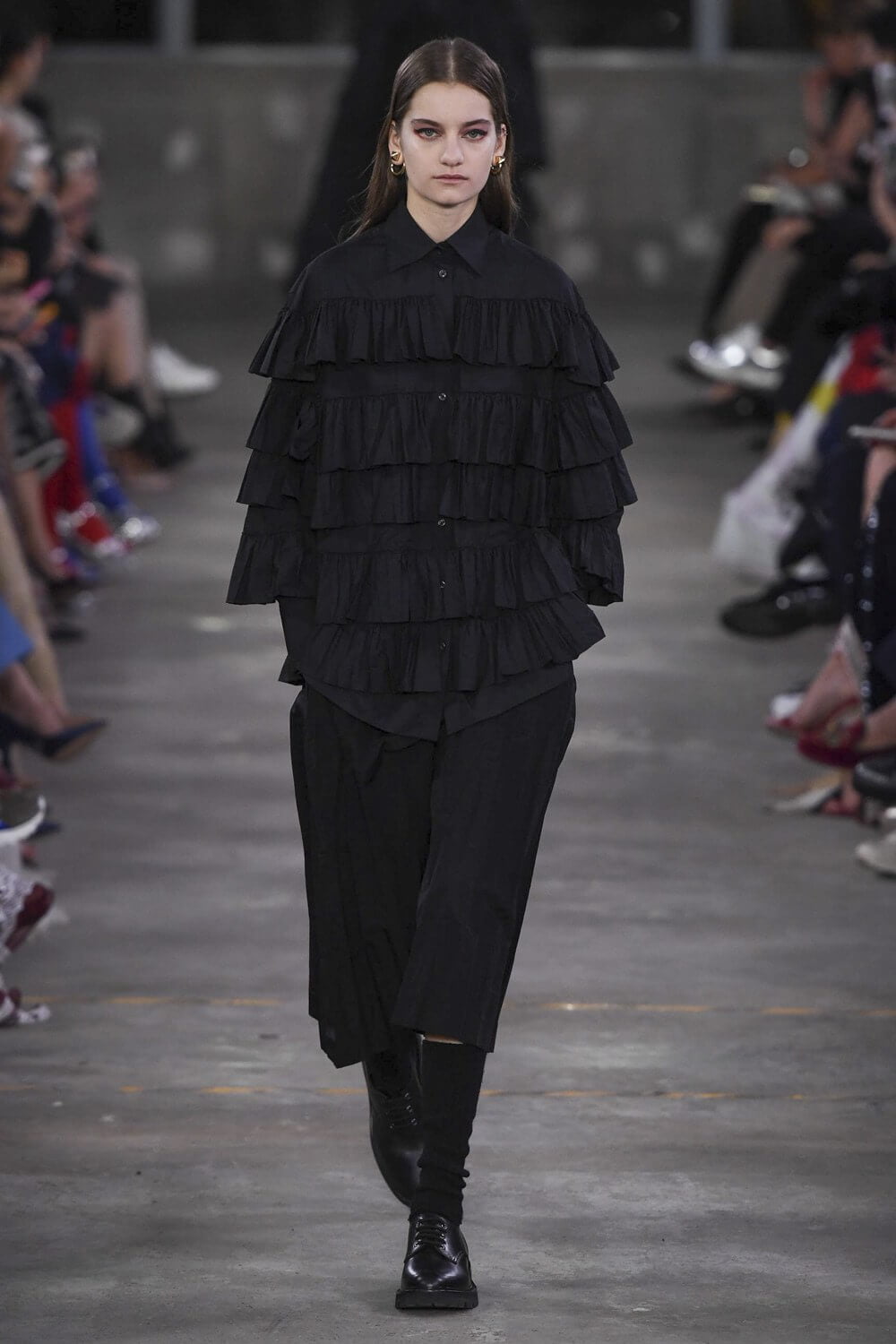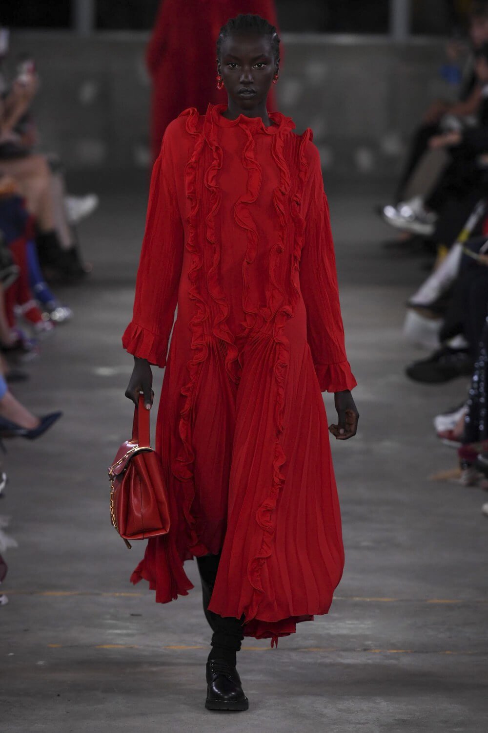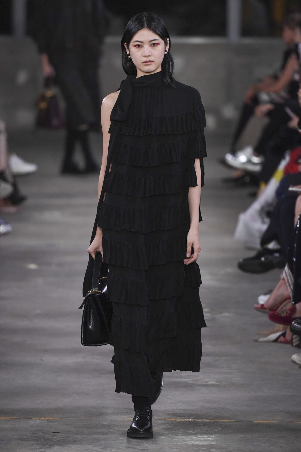 Today, it was Pierpaolo Piccioli’s turn as he opened the season of Pre-Fall 2019 destination shows with Maison Valentino in one of Tokyo’s many concrete constructions. Perfectly measured in his exuberance, Piccioli took inspiration from the mindset of wabi-sabi in an acceptance of imperfection and creating a form of ever-evolving beauty. Between recreating classic shapes of Maison Valentino in both men’s and womenswear departments in a fresh way, the looks delicately paid homage to Japan’s fashion heritage. The show opened with a set of exits in the perfect shade of carmine red, which later escalated into black, white and then back into a richer, spicier hue of red – without losing the sight of Maison Valentino, this collection looked perfectly in tune with its setting. As Kaia Gerber closed the show in a ruffled gown of crimson organza, the tone for Pre-Fall 2019 was set – a subdued sensibility of luxury is the way to go.