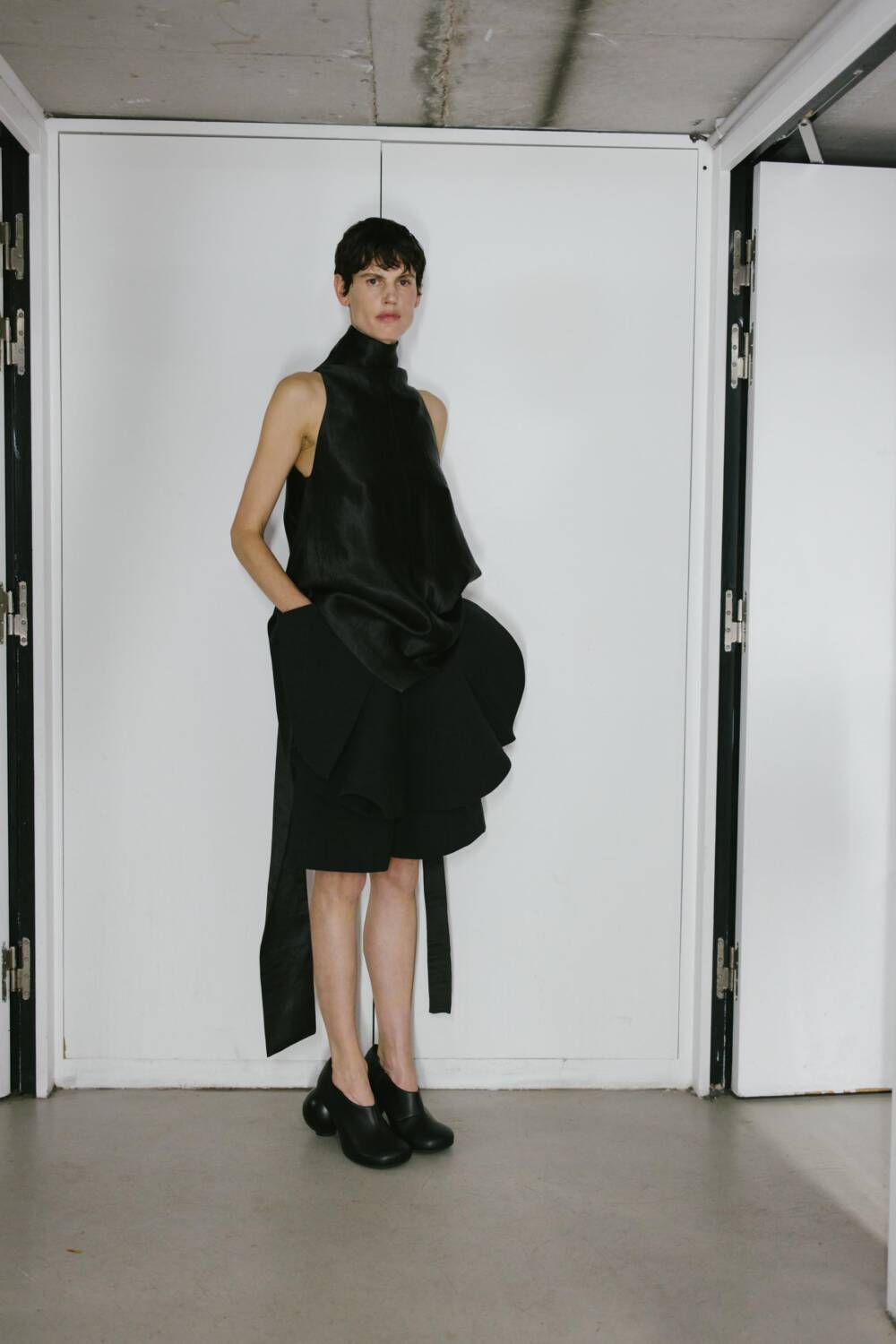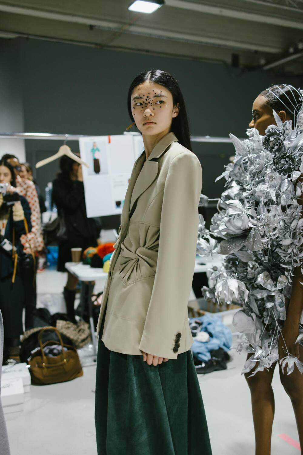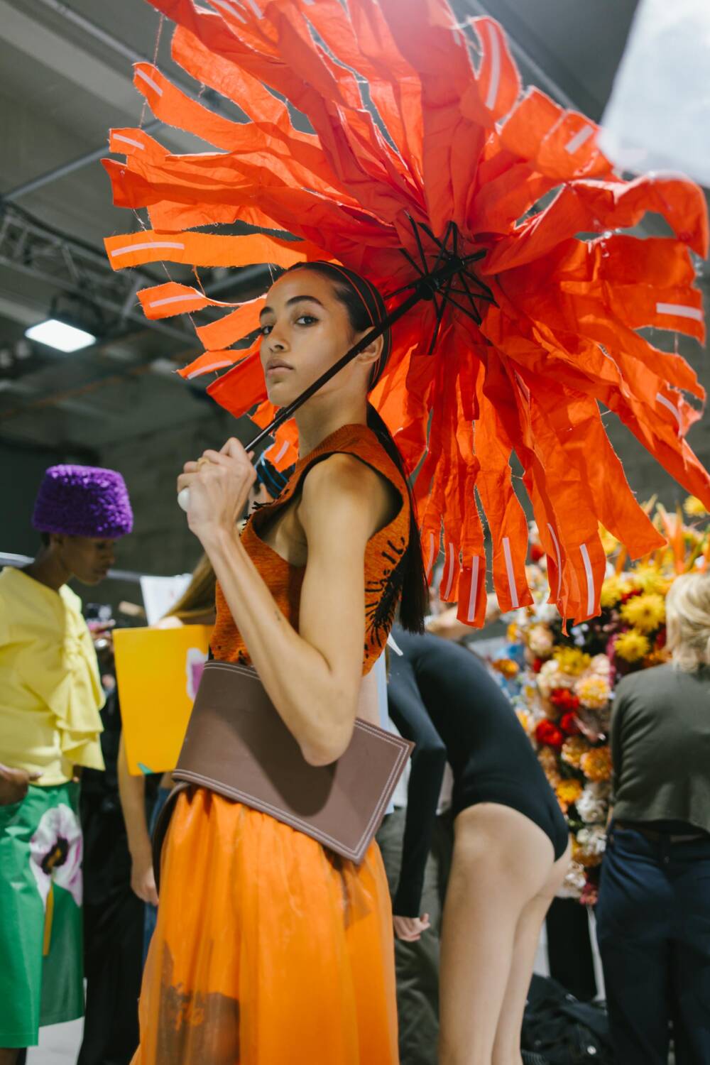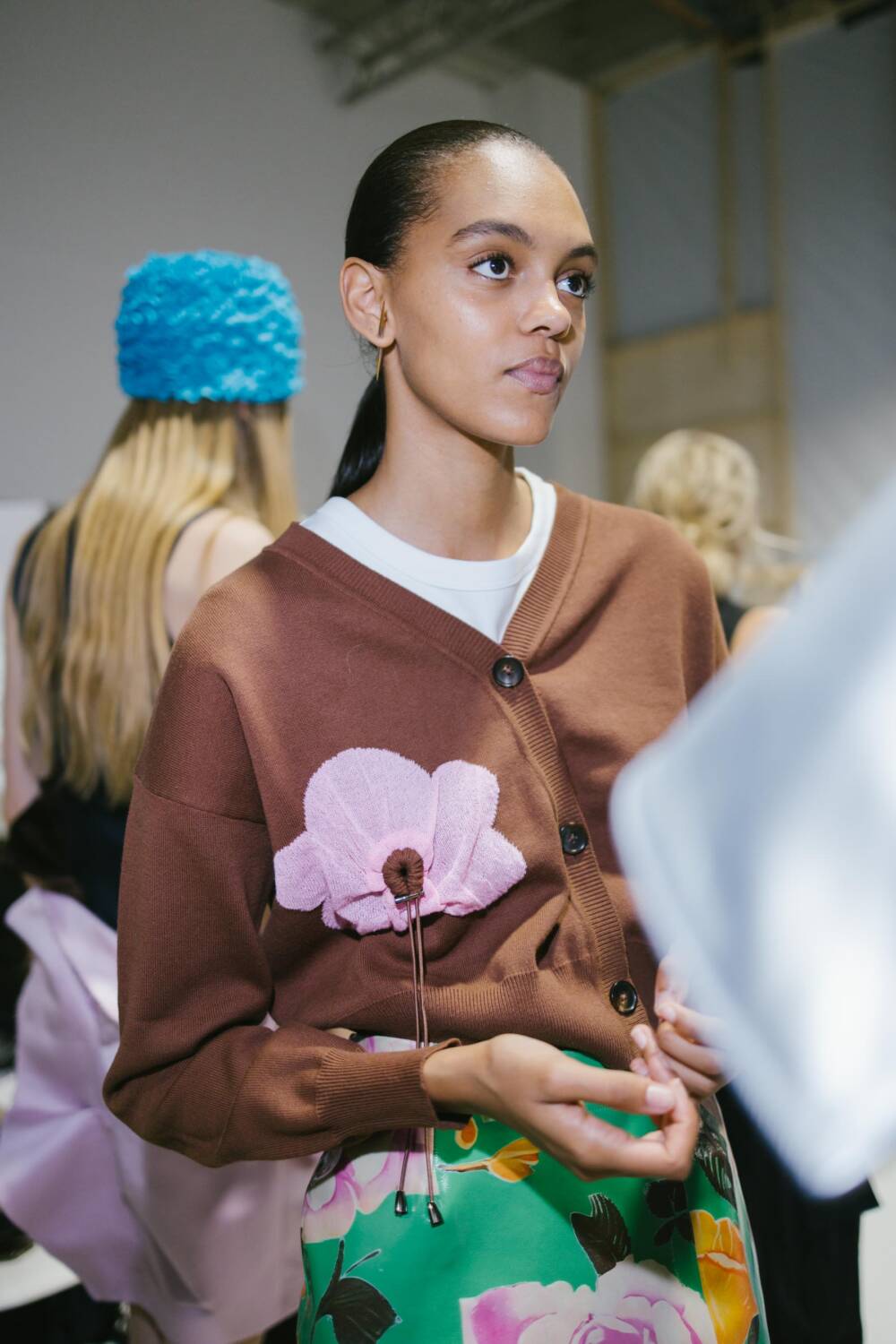 As models traversed the runway, dressed in lovely clothes with ruched textures, gliding across the ash grey floors, a wide array of elegant and expressive pieces emerged. The creative director pair decked out pieces with panoplies of ruffles, resulting in a number of skirts that materialised with voluminous layers. Bold and contrasting colours it up the catwalk. Think forest green puff-sleeve blouses and brown balloon trousers, embellished with an oversized satin flower brooch, and exciting ruffled bucket hats in vivid hot pinks and azure blue. Contemporary clothes and experimental silhouettes merged with an avant-garde sense of sophistication. Each look that flaunted the runway was decadent, with Danial and Imruh’s proving themselves to be visionaries.
